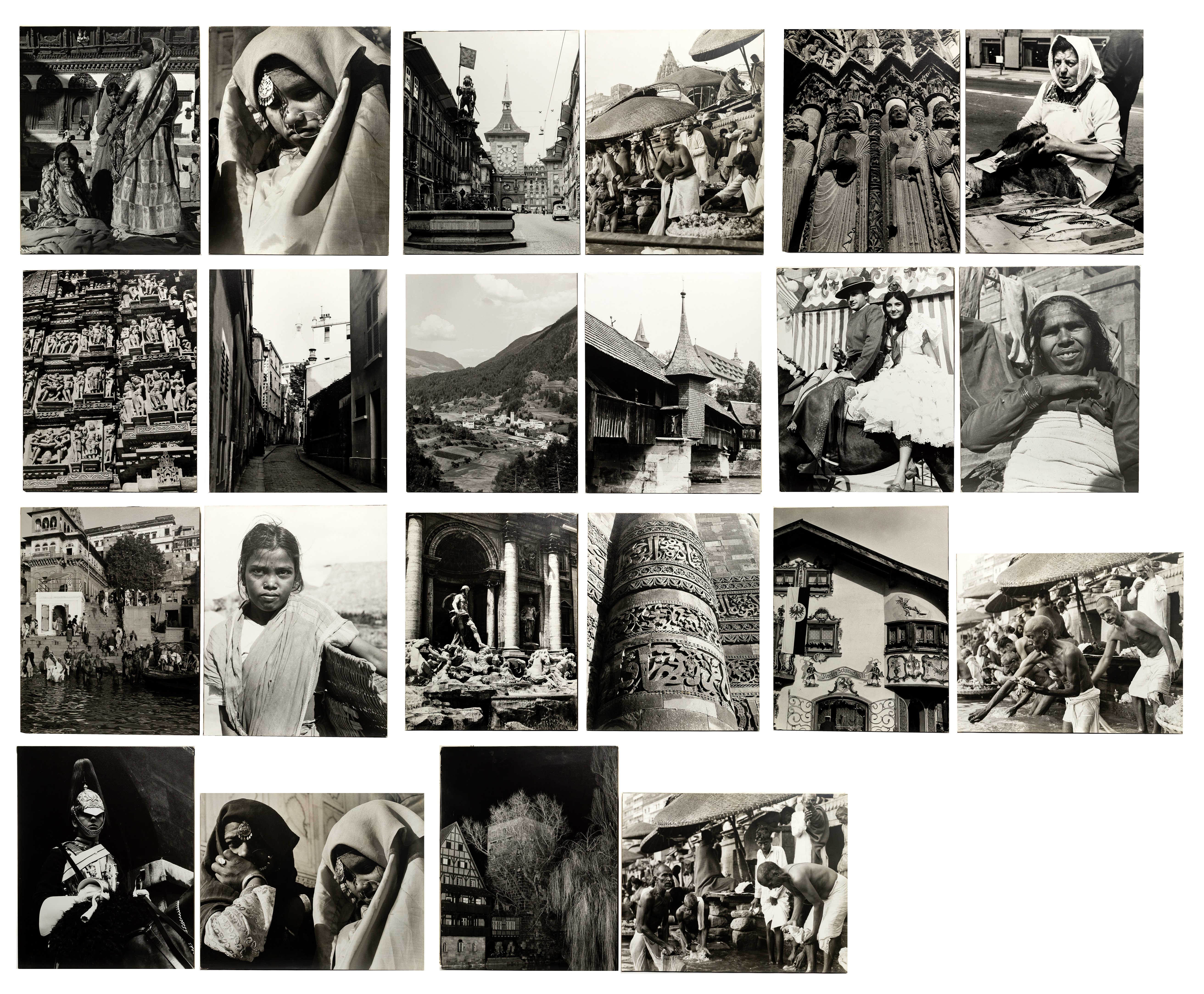 (22) 20th century items, some signed and titled to the reverse, including a series of black and white silver gelatin prints of various scenes and people from around the world, mounted on wood frames