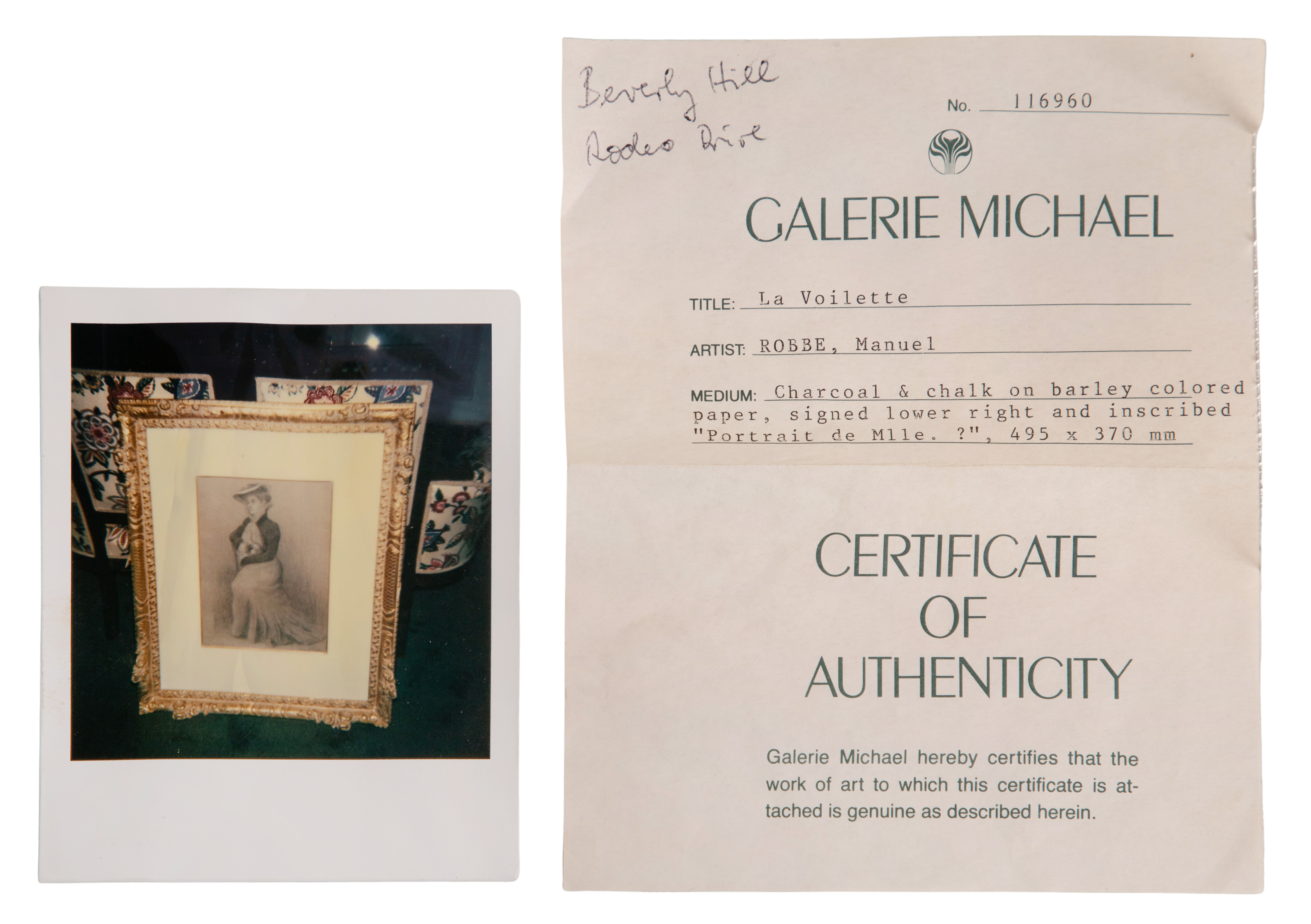 Undated, pencil signed lower right, title lower left partly obscured by linen mat, behind acrylic in a gold-tone gesso on carved wood frame having a Gallerie Michael, Beverly Hills, California COA and polaroid photograph