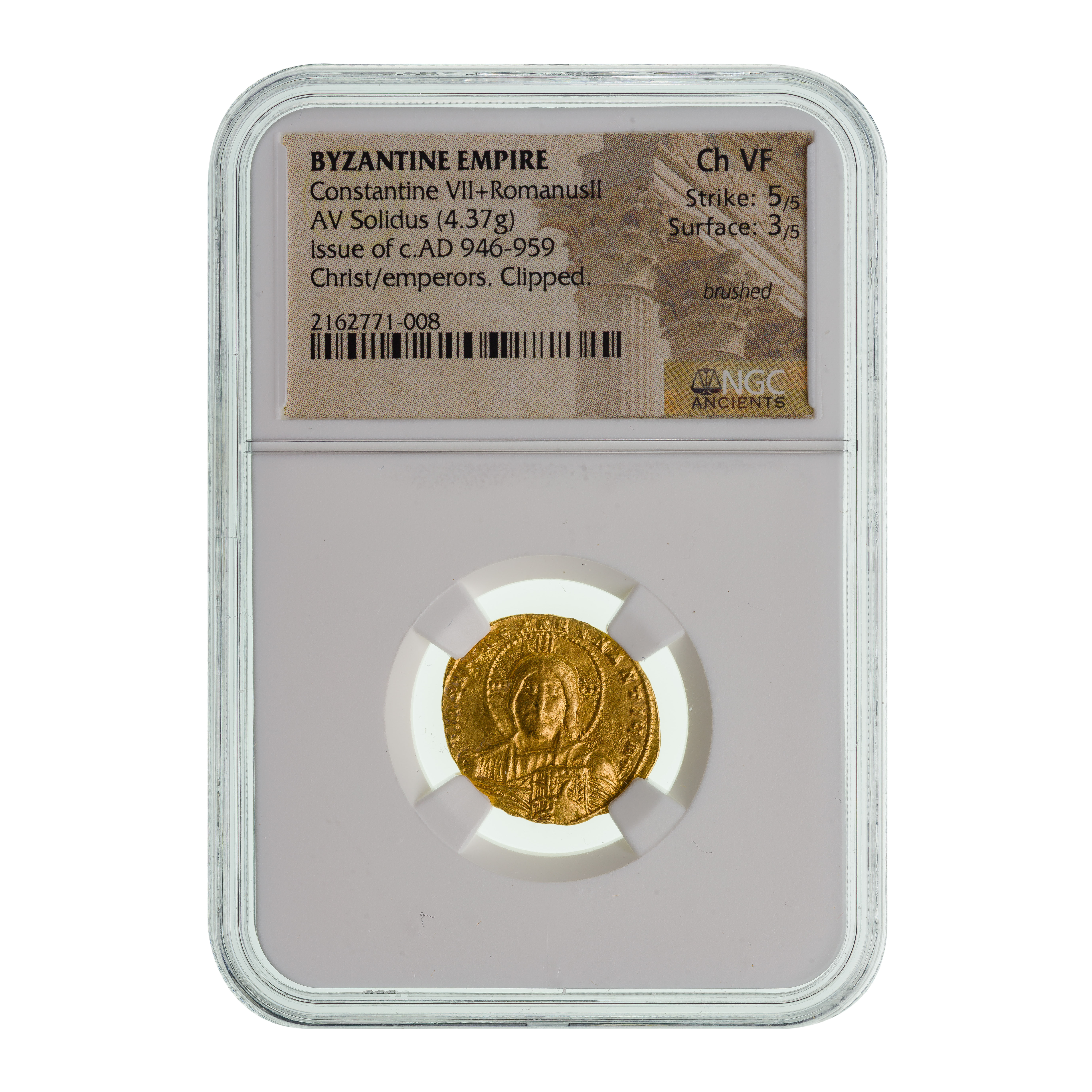 BYZANTINE EMPIRE, Constantine VII+RomanusII, AV Solidus Ch VF NGC