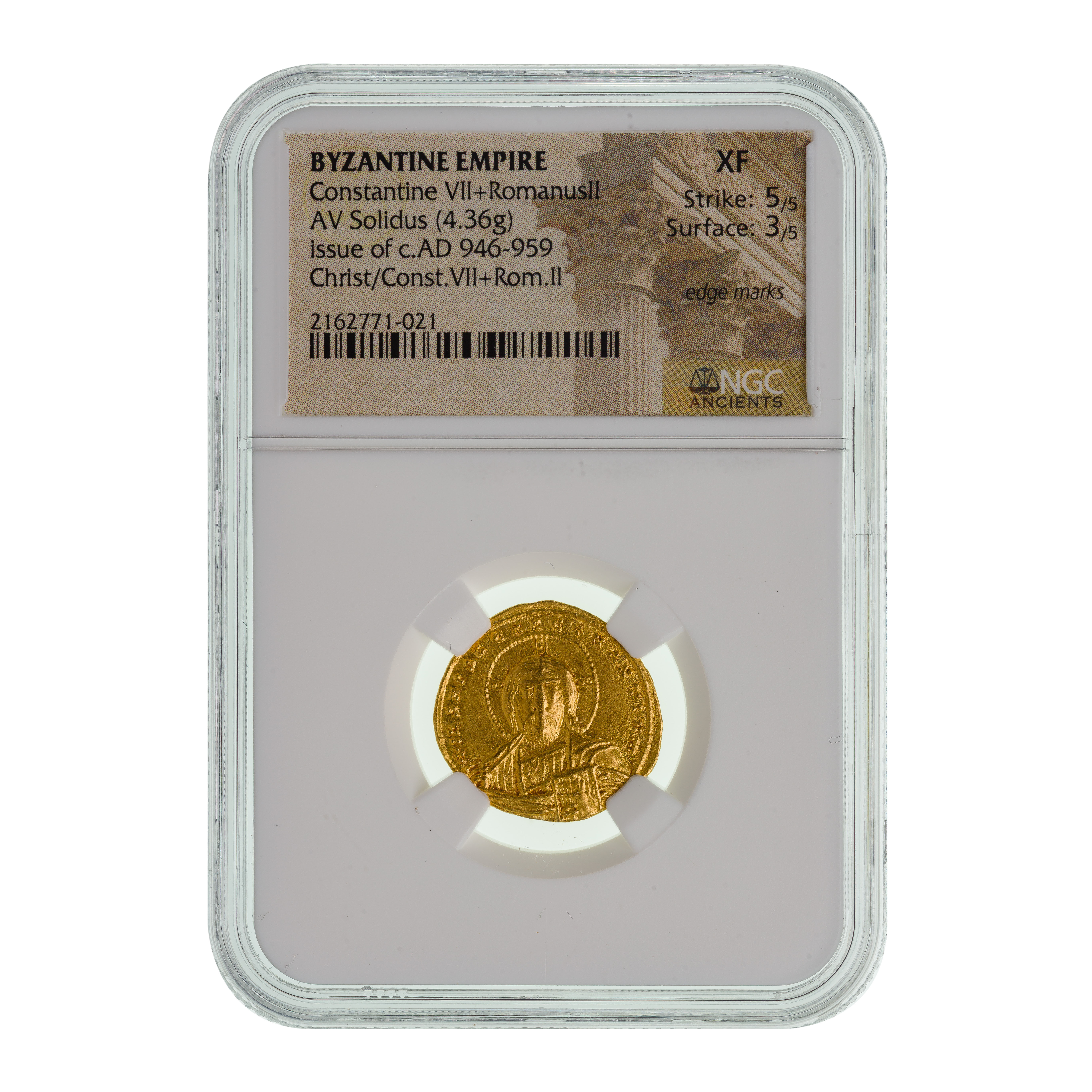 BYZANTINE EMPIRE, Constantine VII+RomanusII, AV Solidus XF NGC