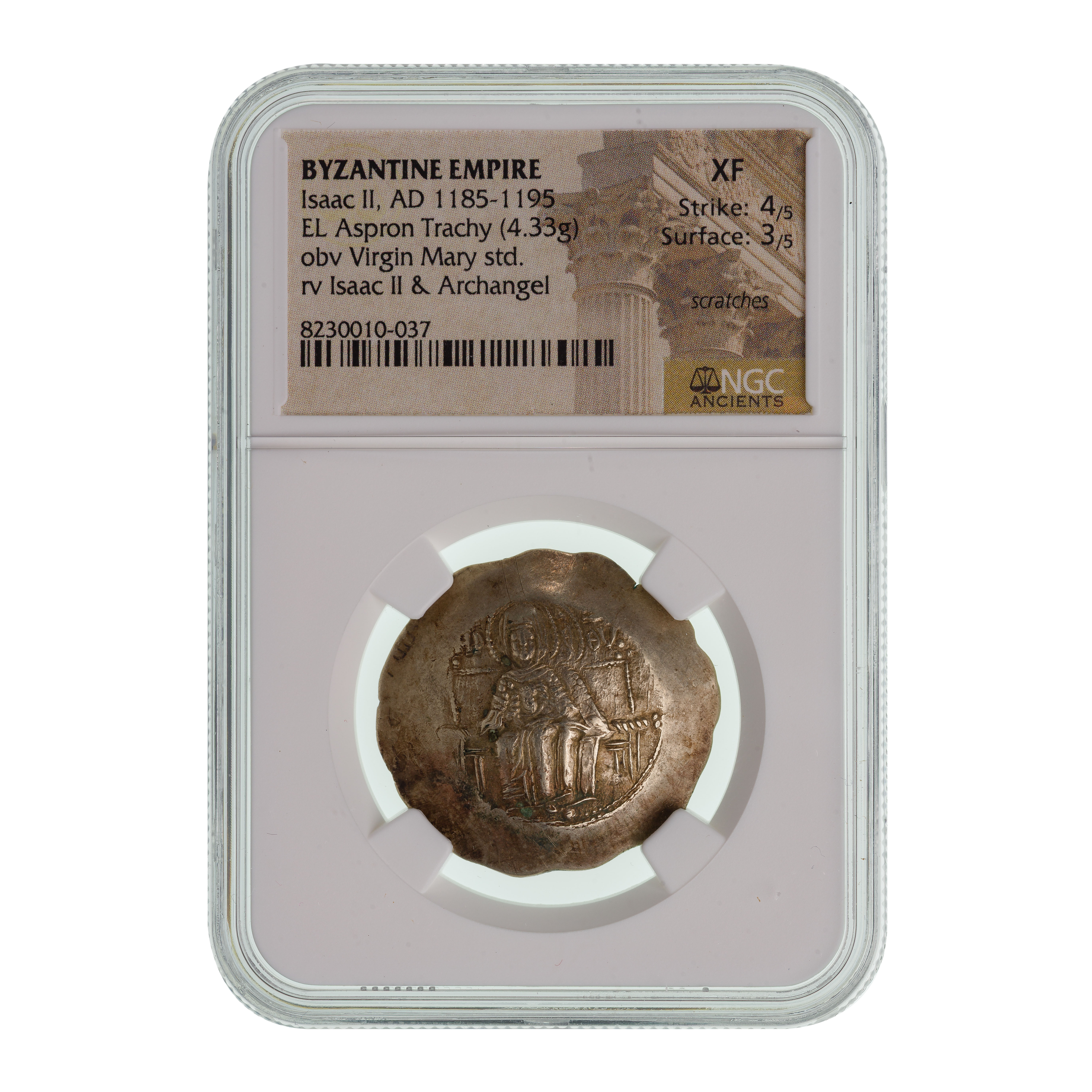 BYZANTINE EMPIRE, Isaac II, AD 1185-1195, EL Aspron Trachy XF NGC