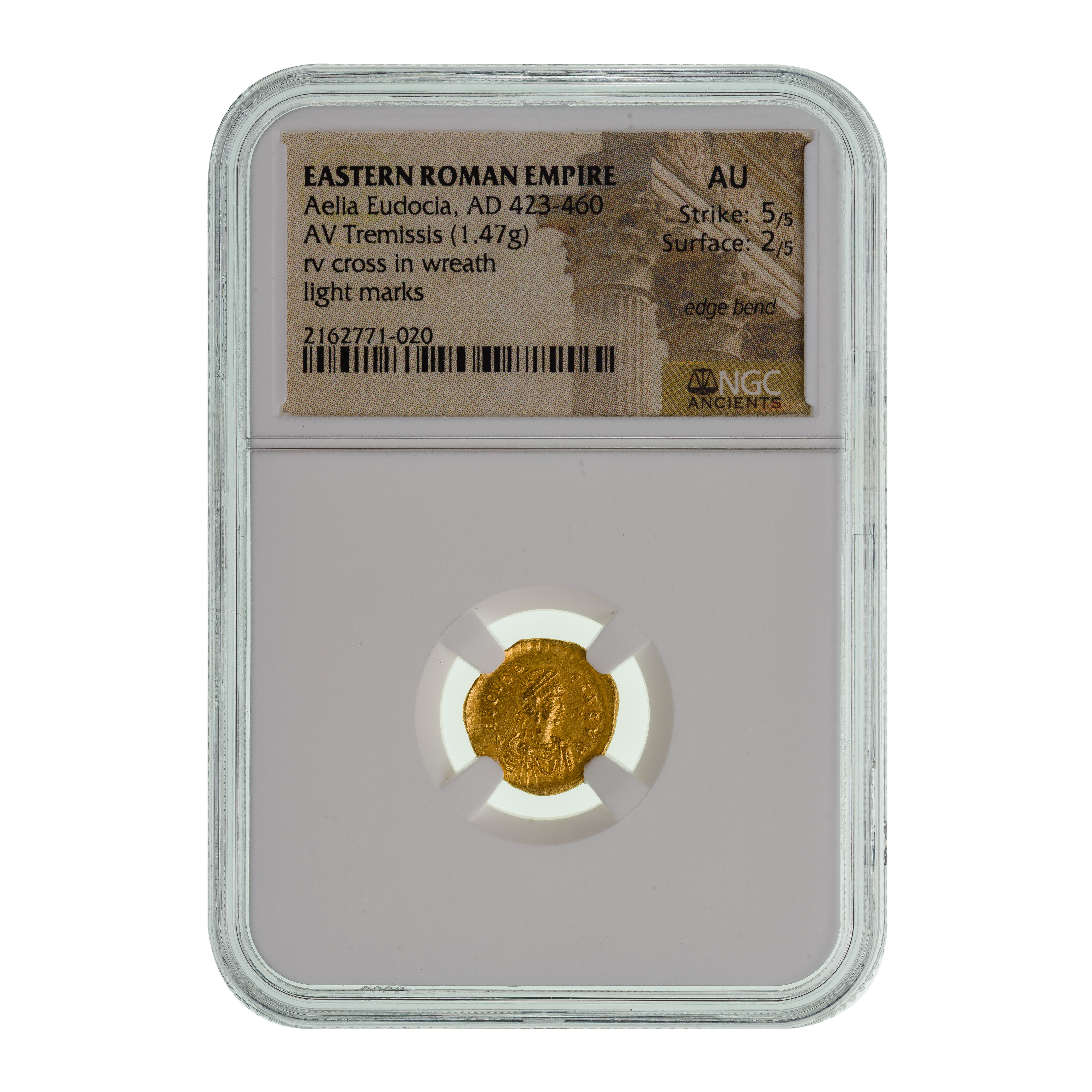 EASTERN ROMAN EMPIRE, Aelia Eudocia, AD 423-460, AV Tremissis AU NGC