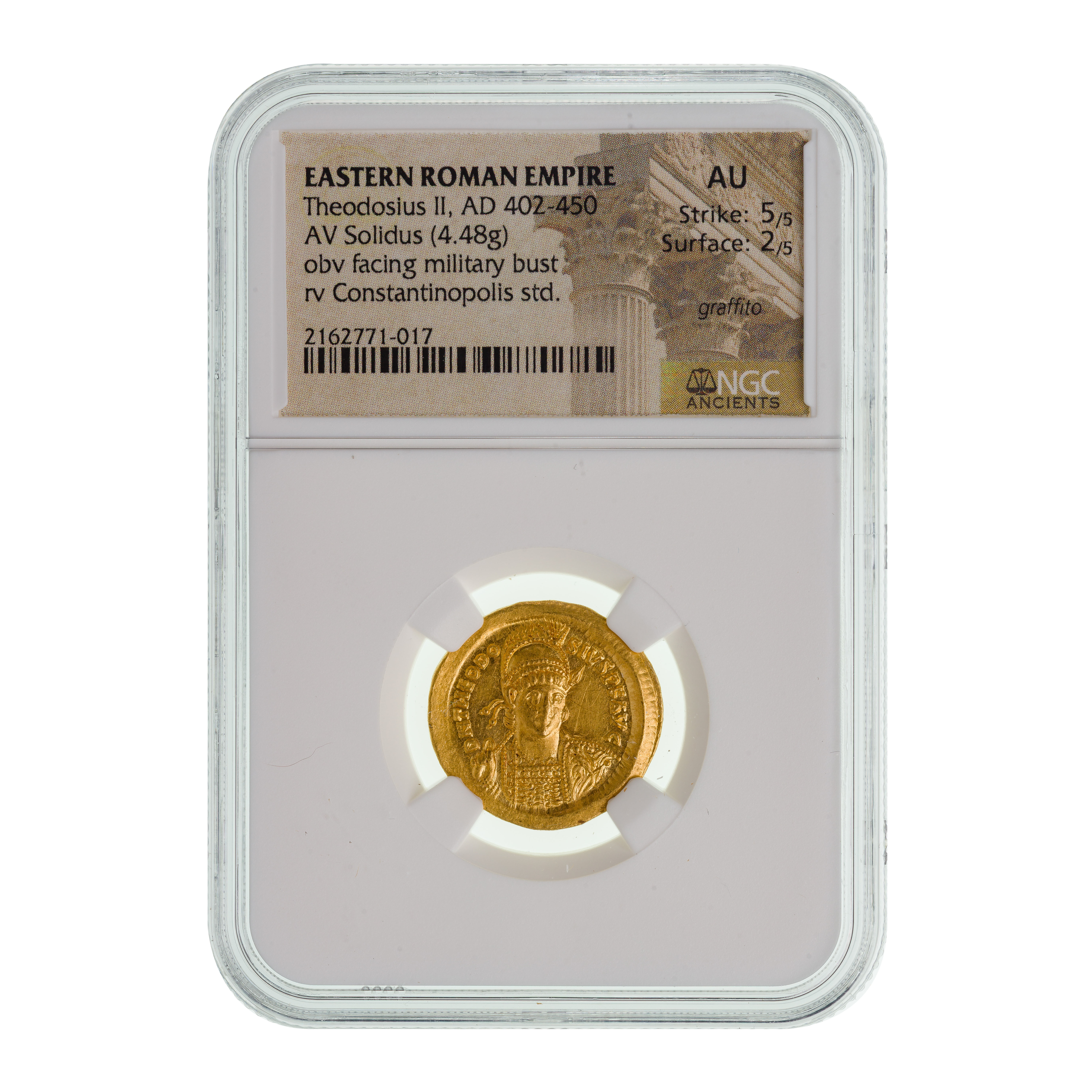 EASTERN ROMAN EMPIRE, Theodosius II, AD 402-450, AV Solidus AU NGC