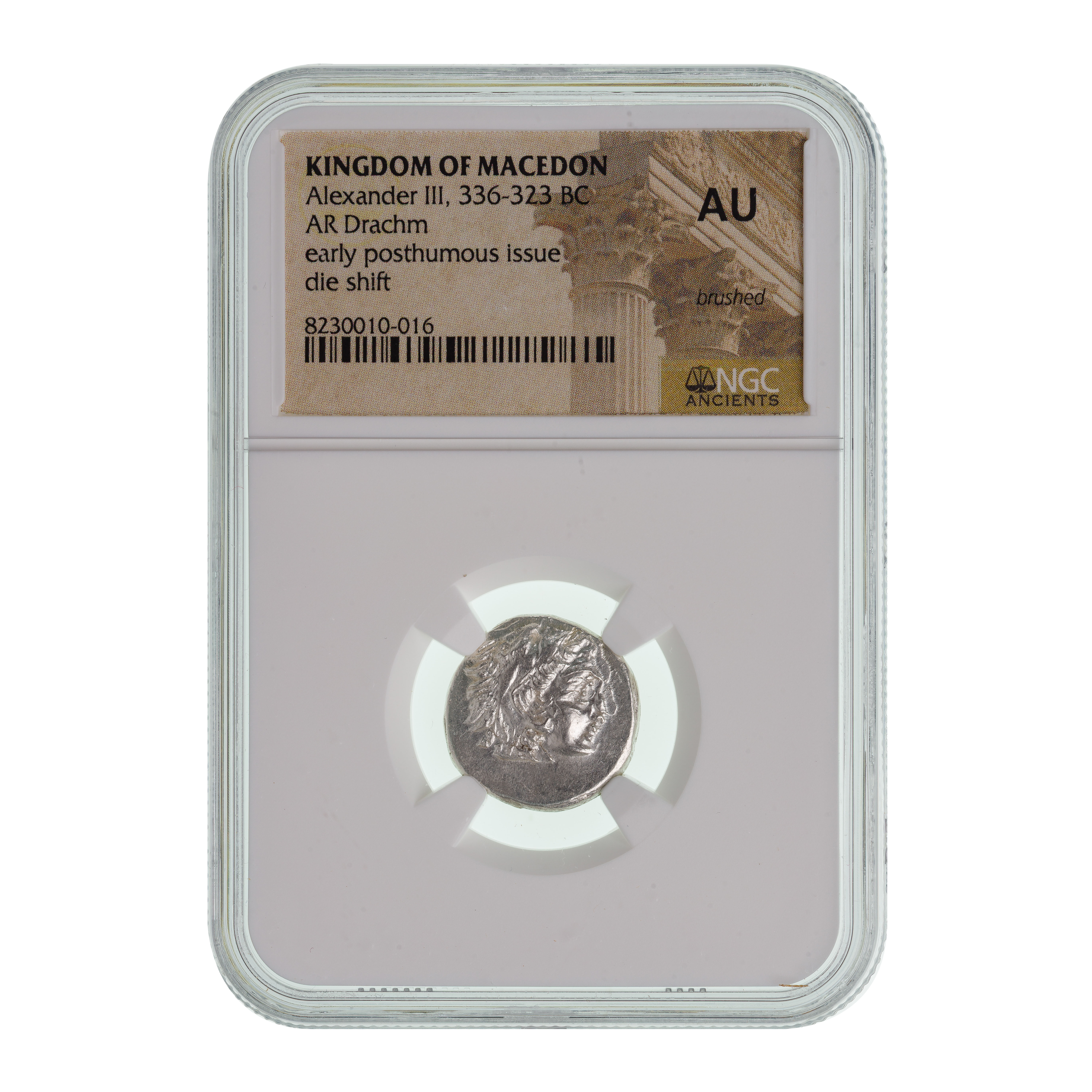 KINGDOM OF MACEDON, Alexander III, 336-323 BC, AR Drachm AU NGC