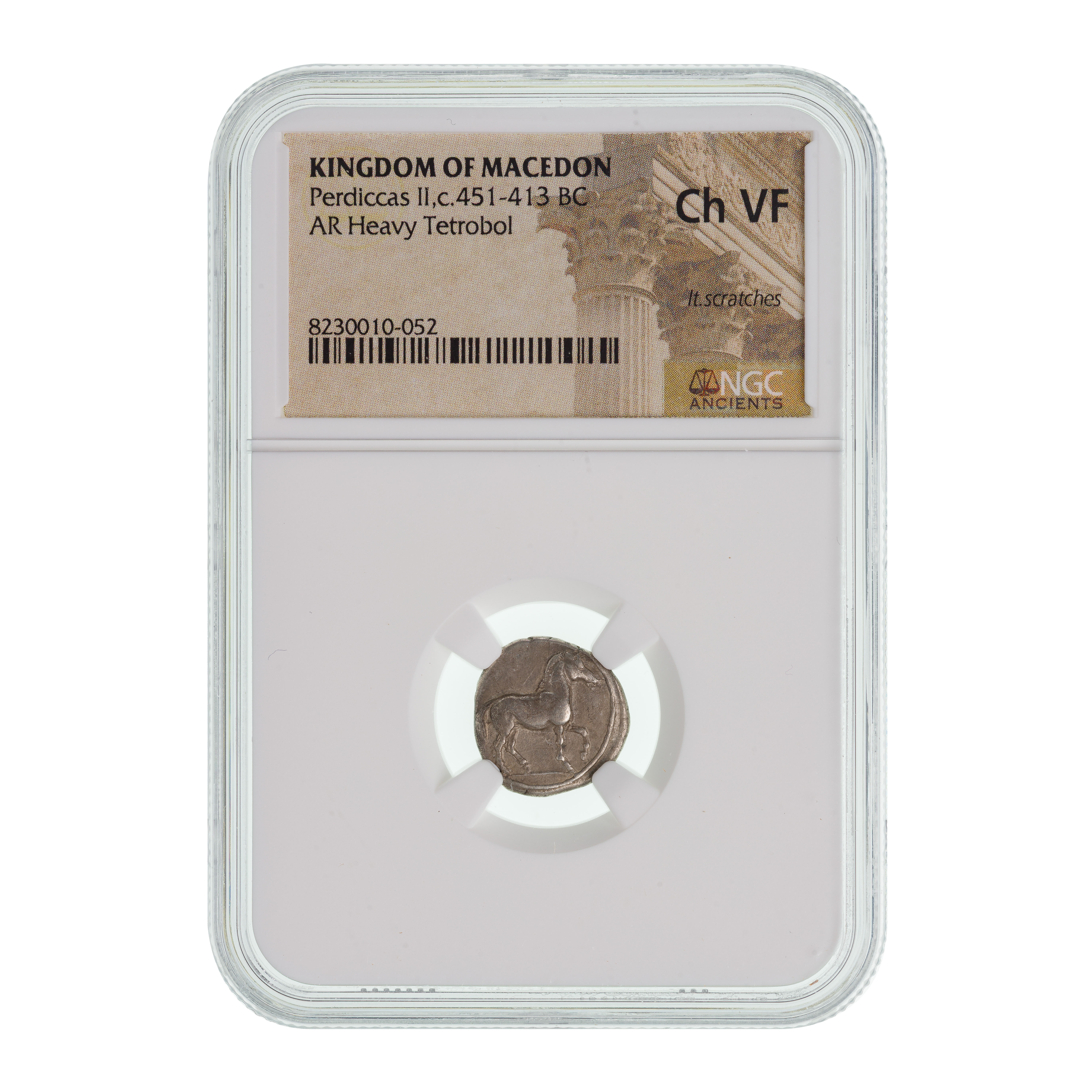KINGDOM OF MACEDON, Perdiccas II, c.451-413 BC, AR Heavy Tetrobol CH VF NGC