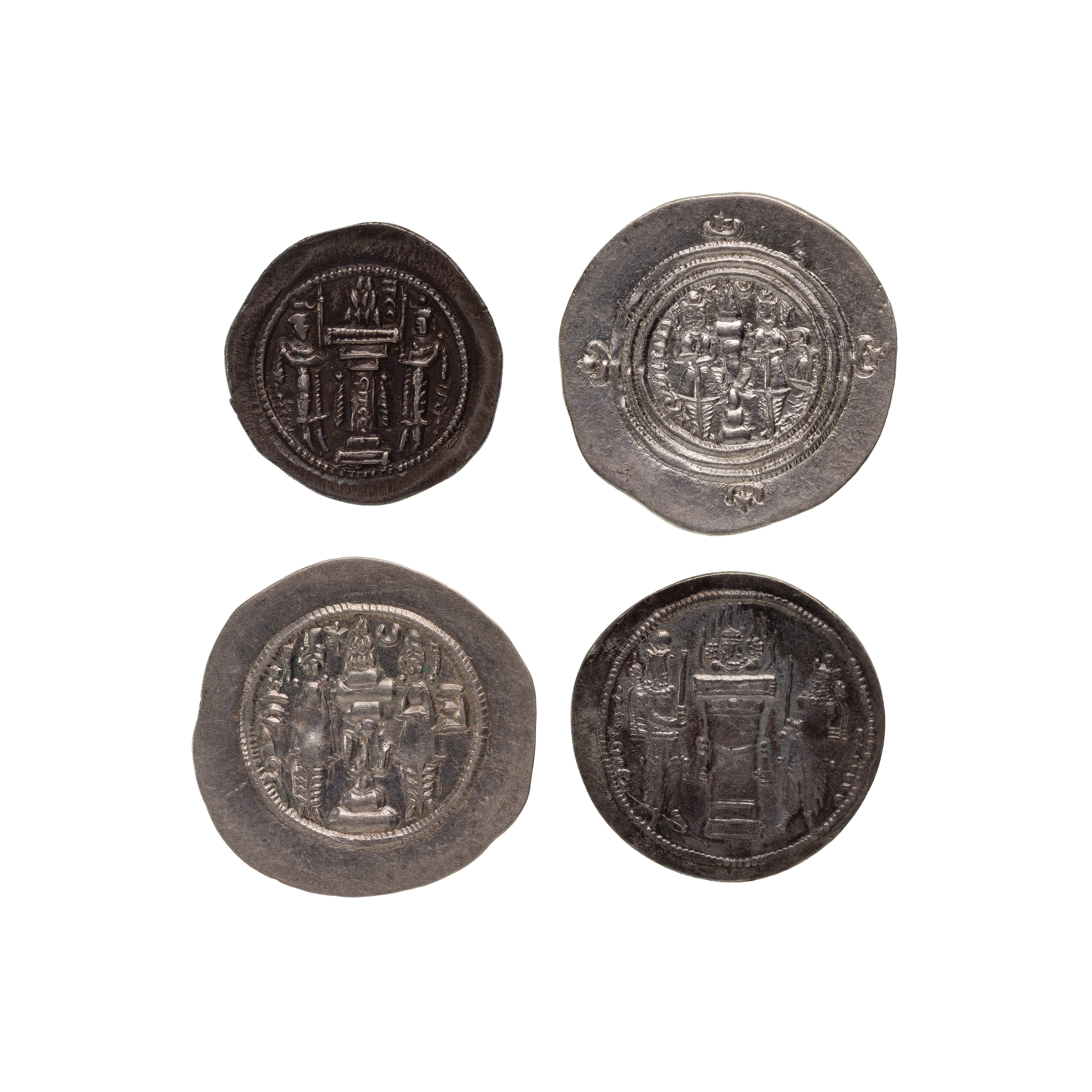 (4) coins including Hormizd II, 355-281 BC, Khusro II, Hormazd IV, and Yazdgard I