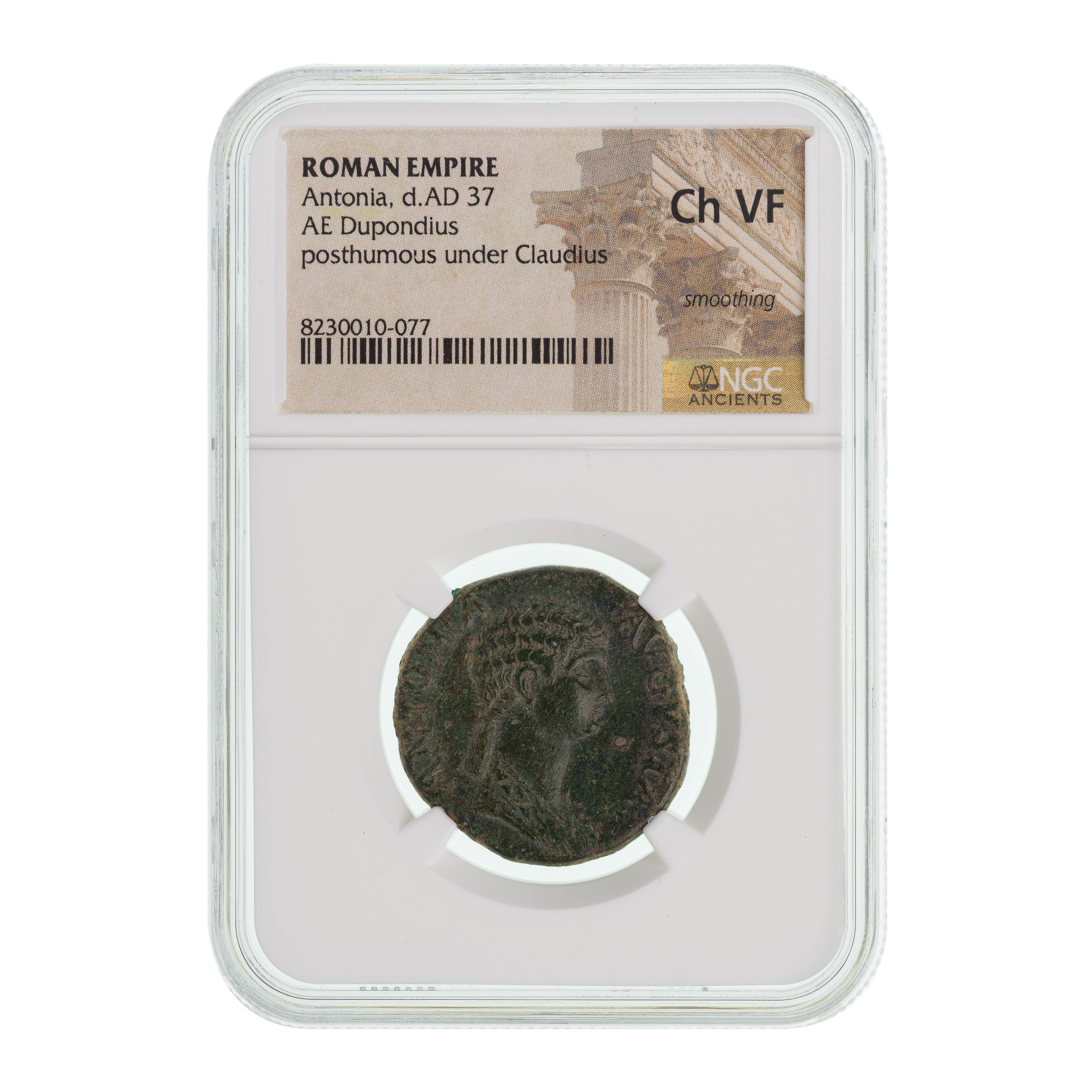 ROMAN EMPIRE, Antonia, d.AD 37, AE Dupondius CH VF NGC