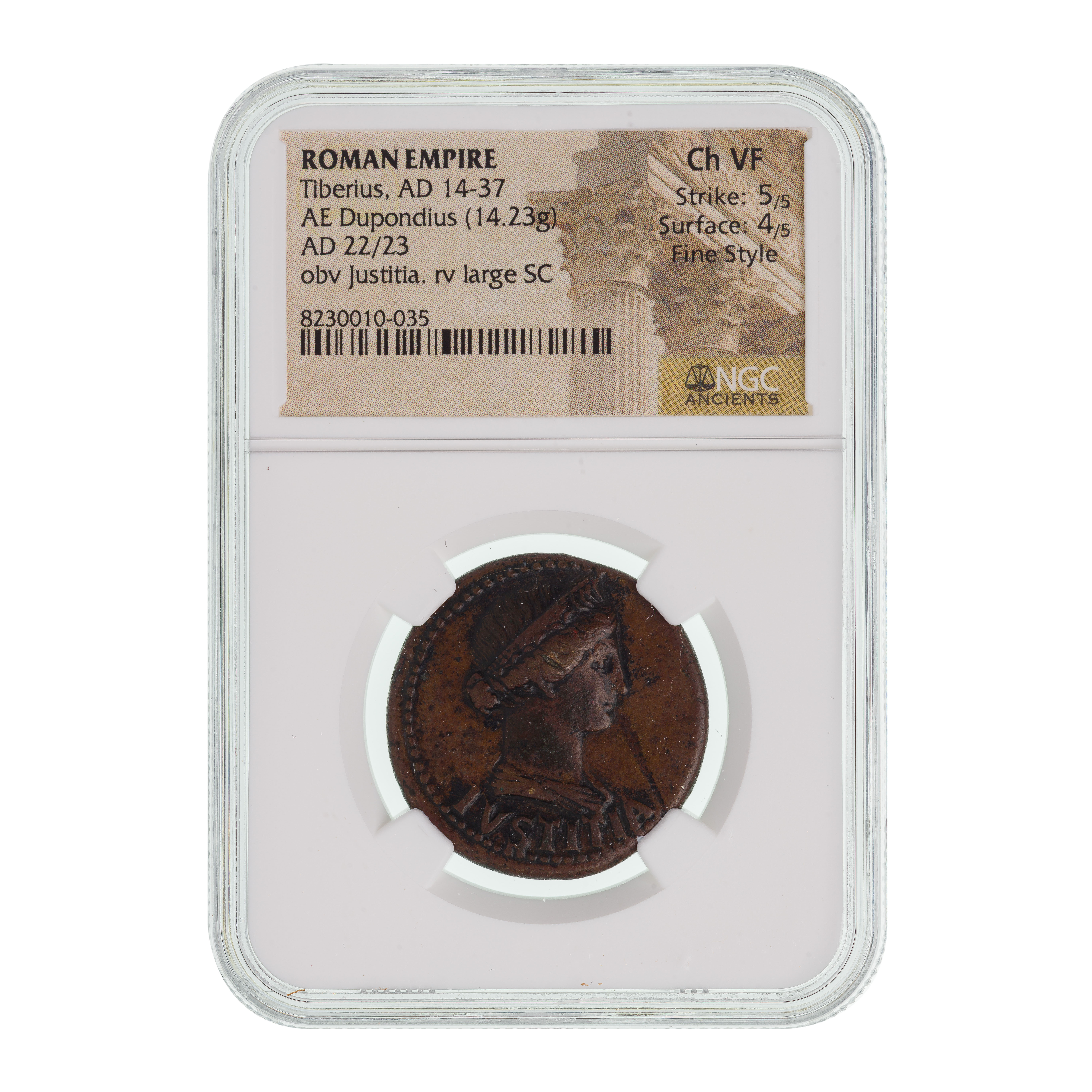 ROMAN EMPIRE, Tiberius, AD 14-37, AE Dupondius CH VF NGC