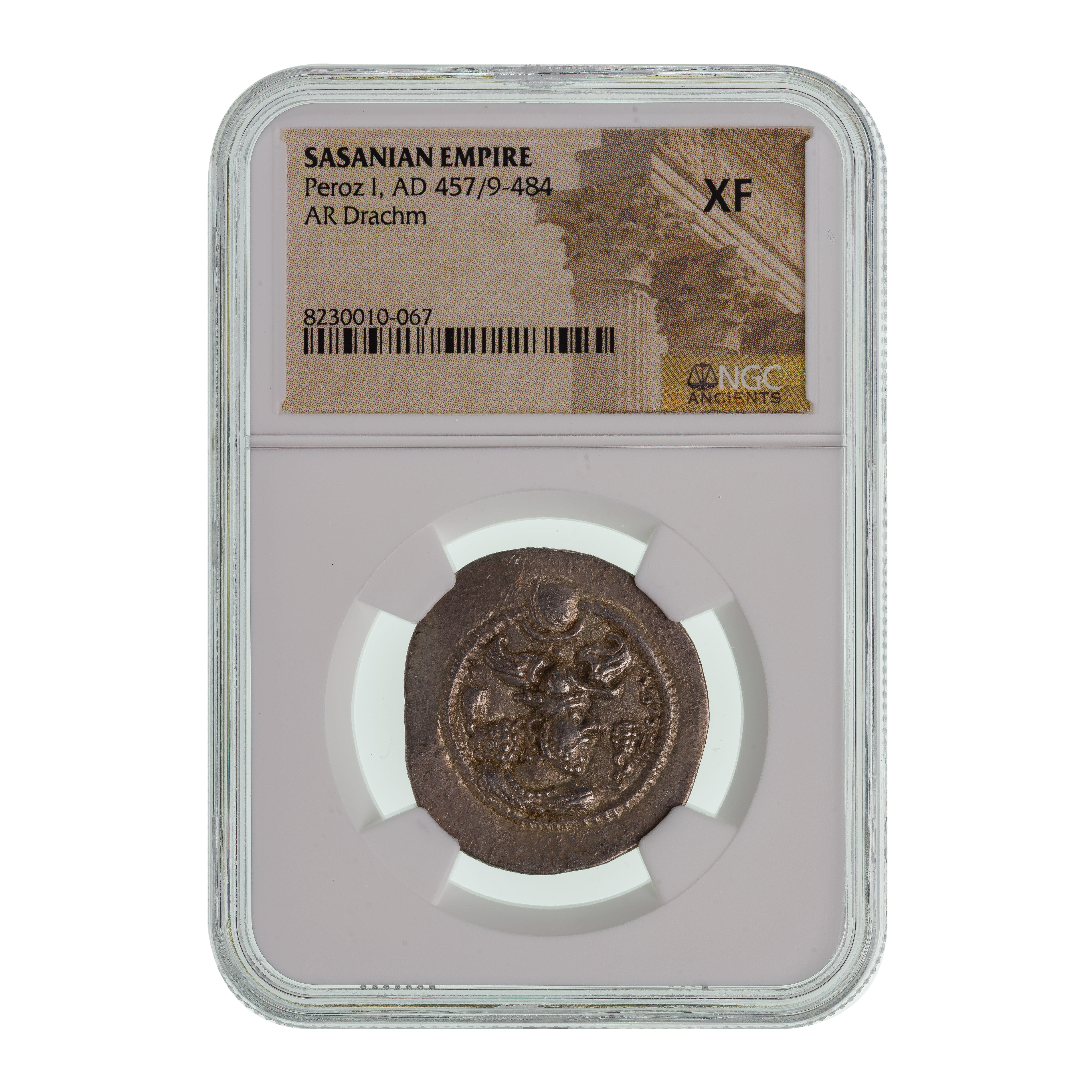SASANIAN EMPIRE, Peroz I, AD 457/9-484, AR Drachm XF NGC
