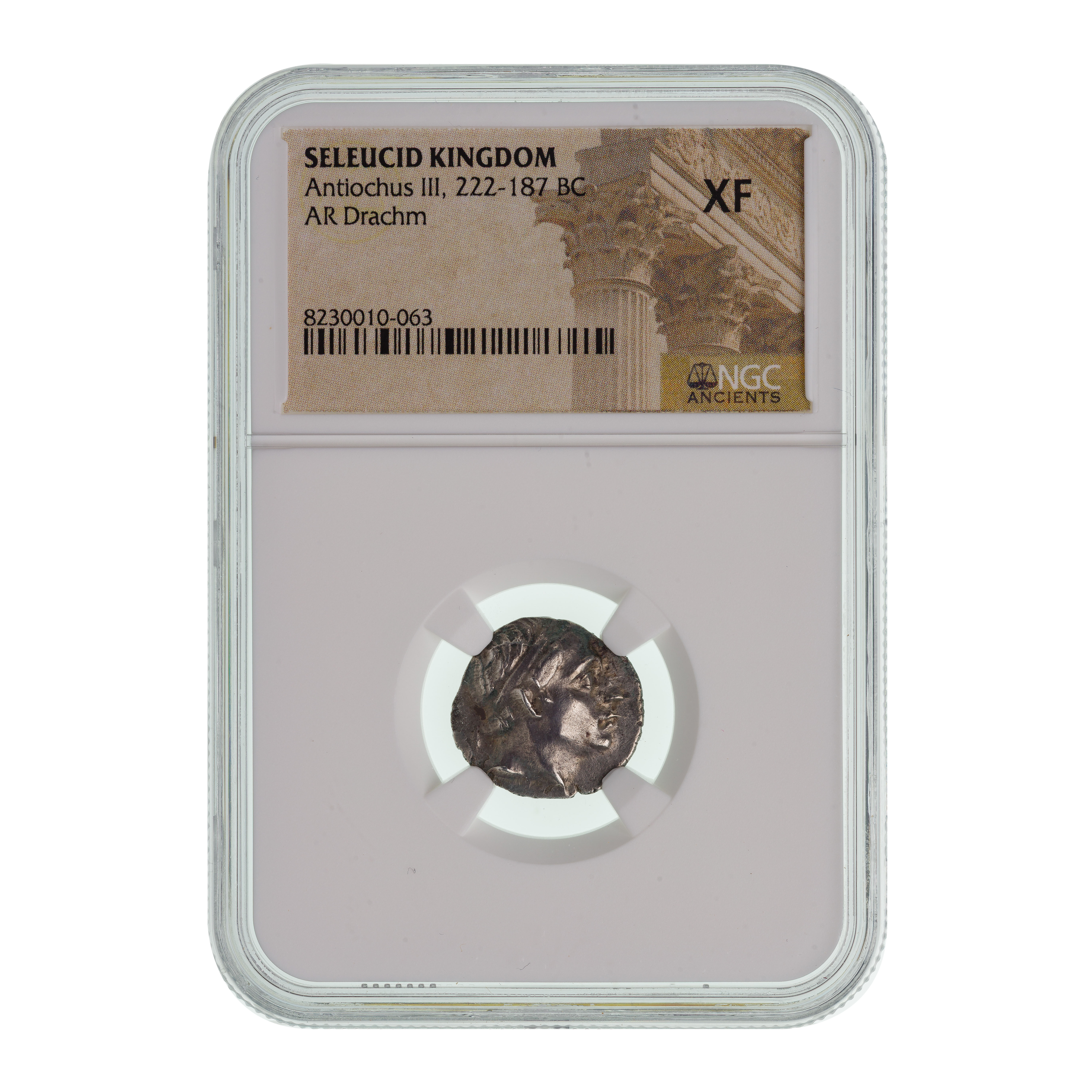 SELEUCID KINGDOM, Antiochus III, 222-187 BC, AR Drachm XF NGC