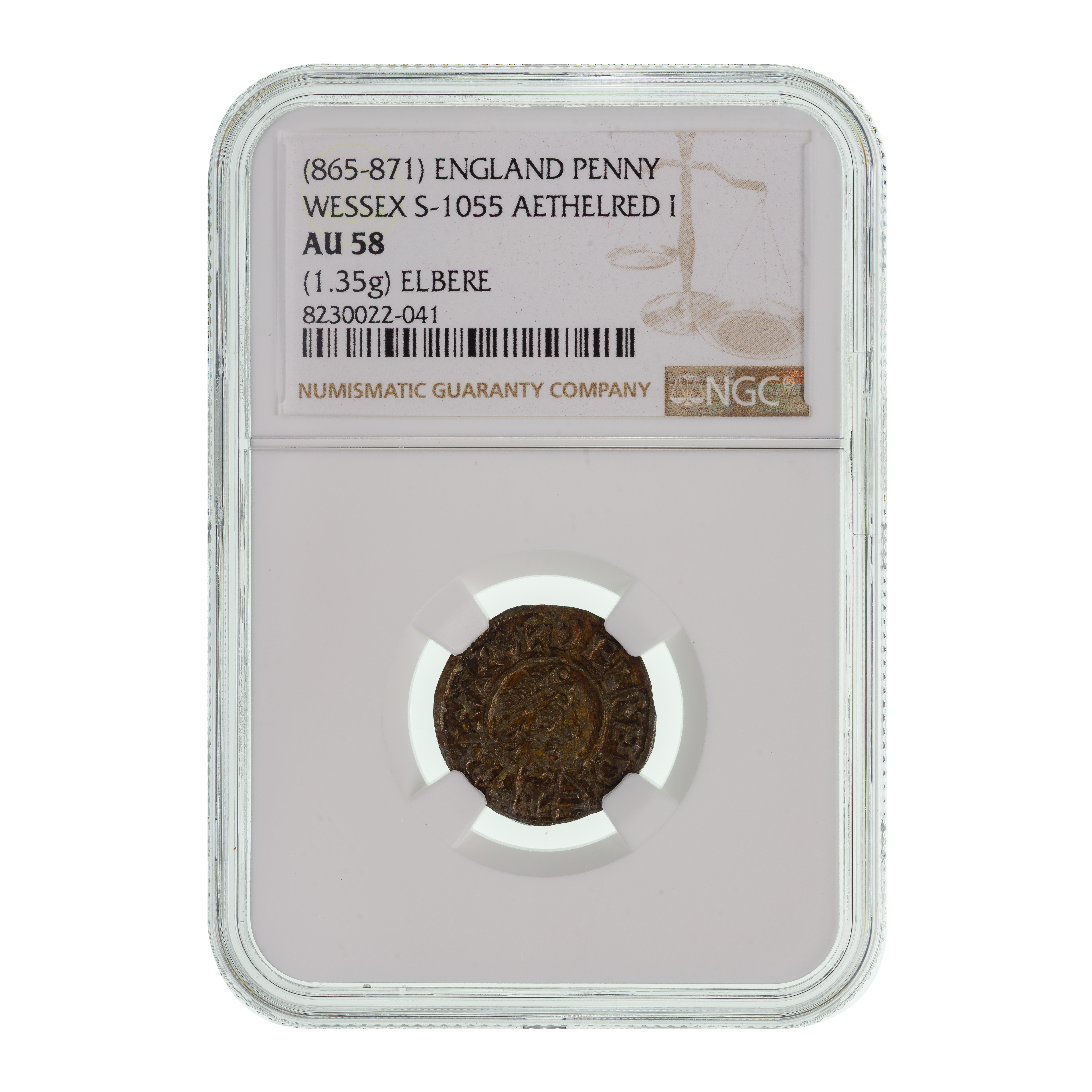 ENGLAND (865-871) Penny Wessex, S-1055, Aethelred I AU-58 NGC