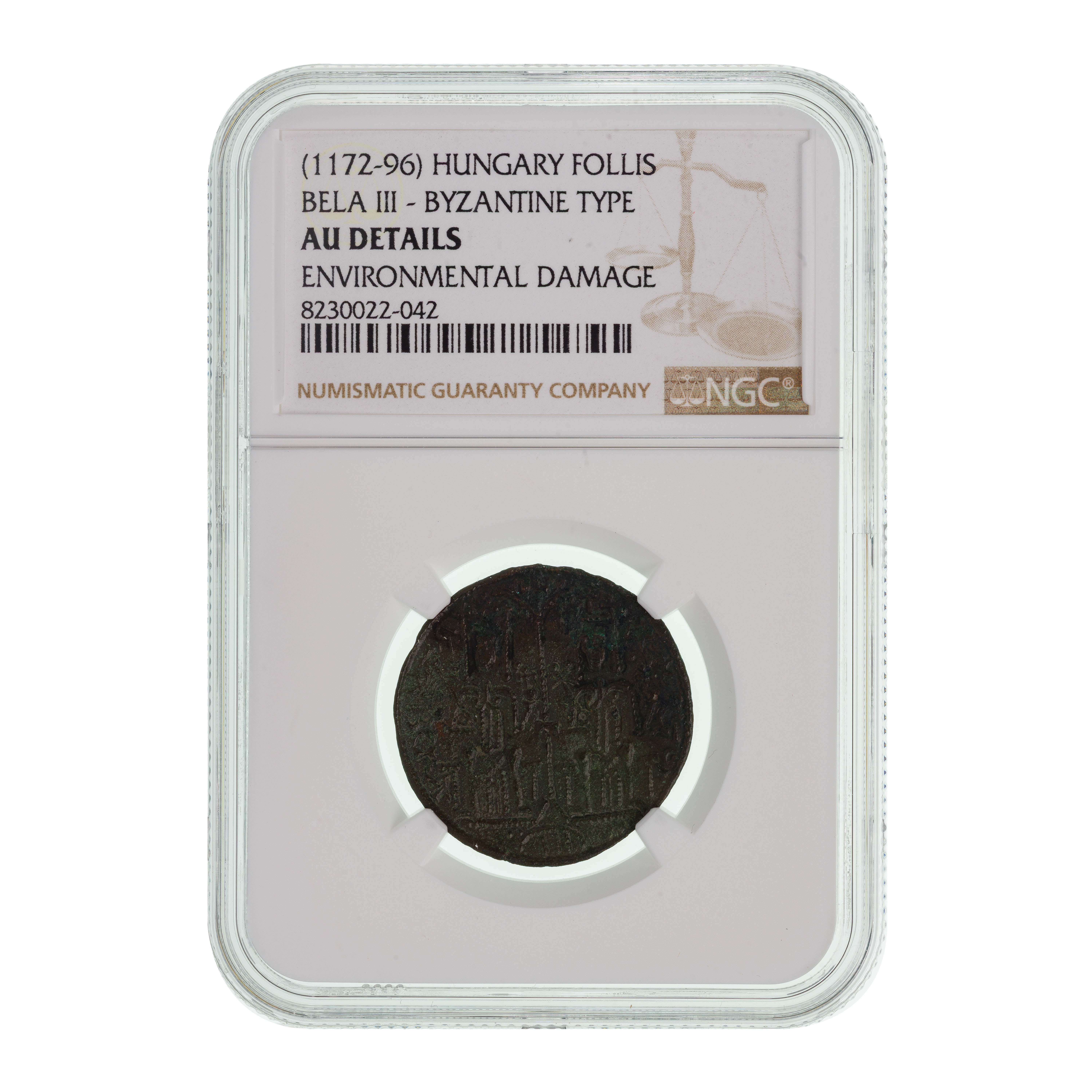 HUNGARY (1172-96) Follis Bela III – Byzantine Type AU DETAILS NGC