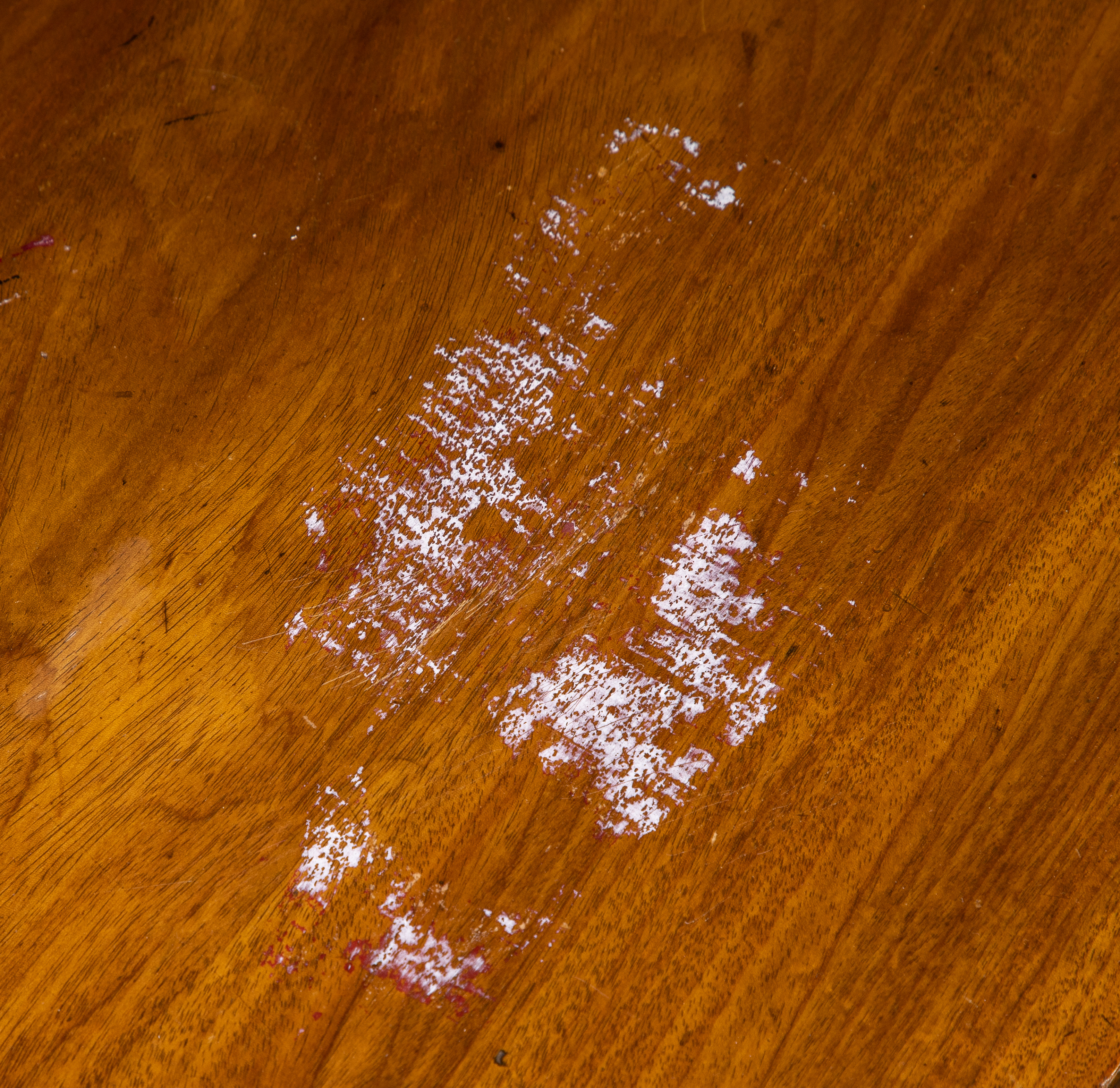 overall light to moderate wear consistent with normal use, nicks, chips, top having staining, scratches and overall finish wear