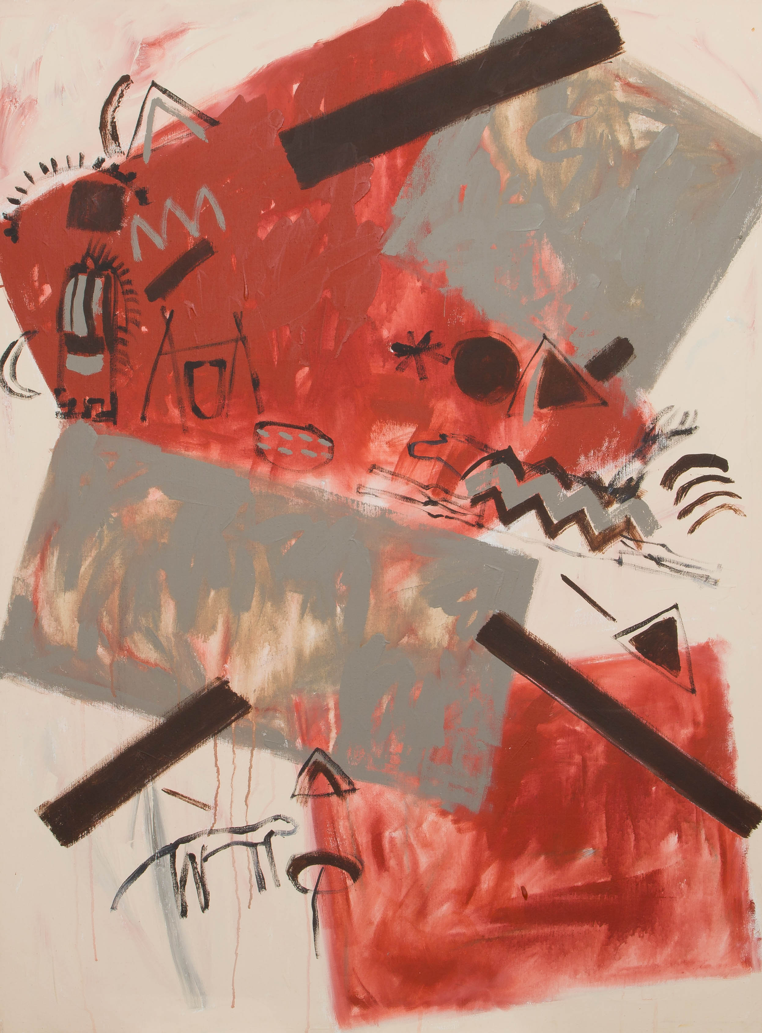 Jaune Quick-To-See Smith (American / Salish and Kootenai, 1940-2025) ‘Canvas #15-A’ Oil on Canvas