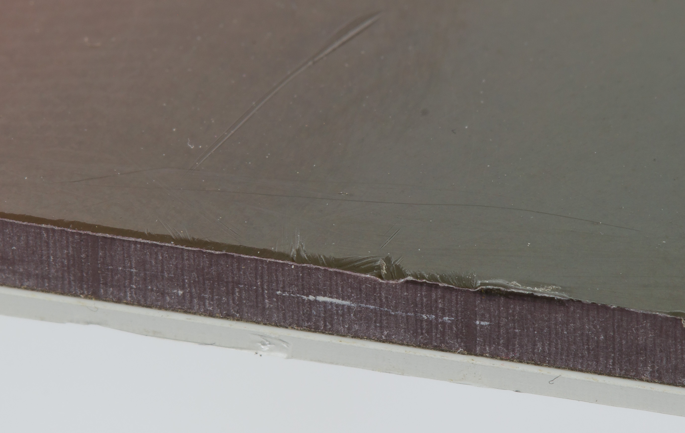 scratches overall, minor damage to orange flower lower edge