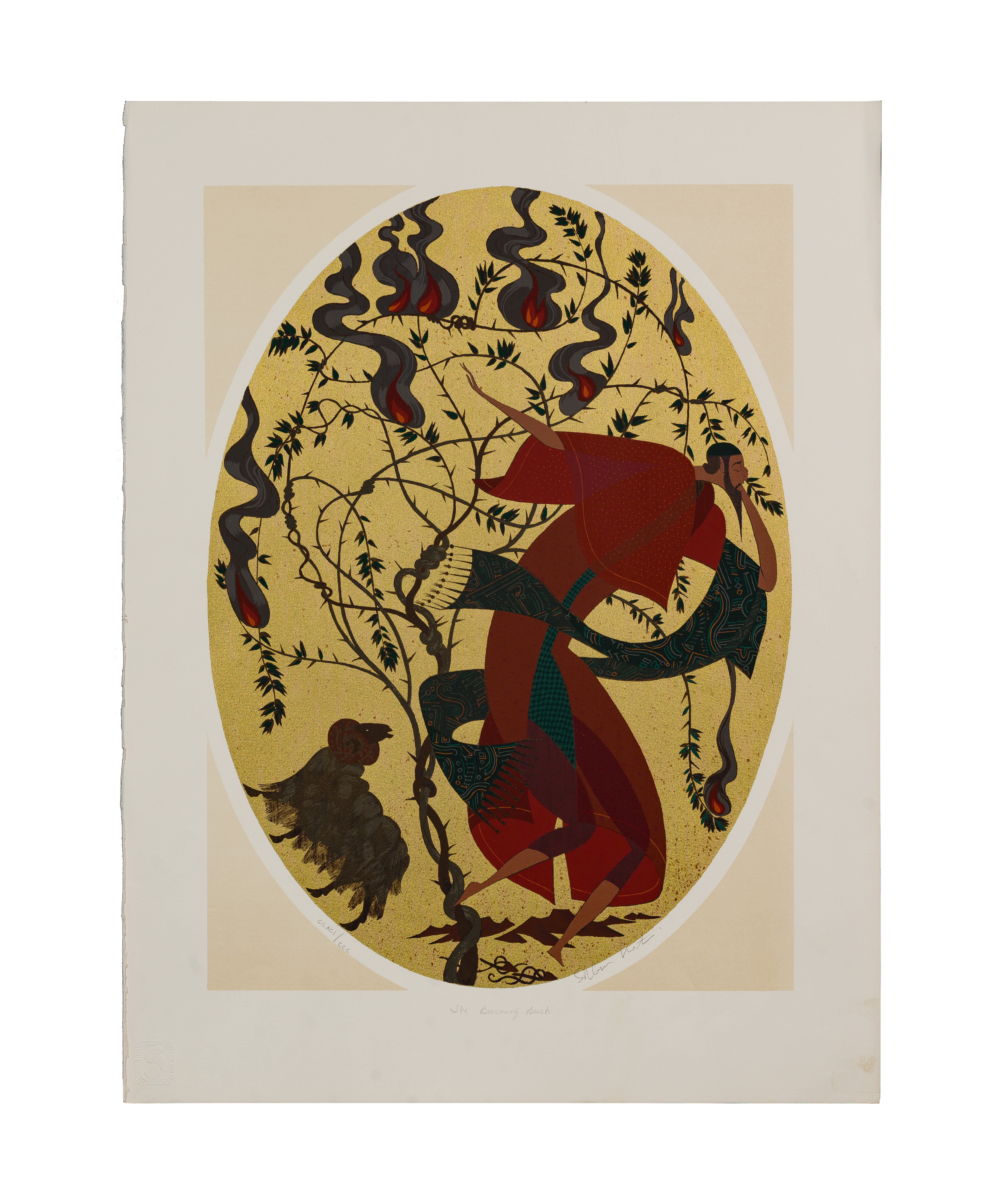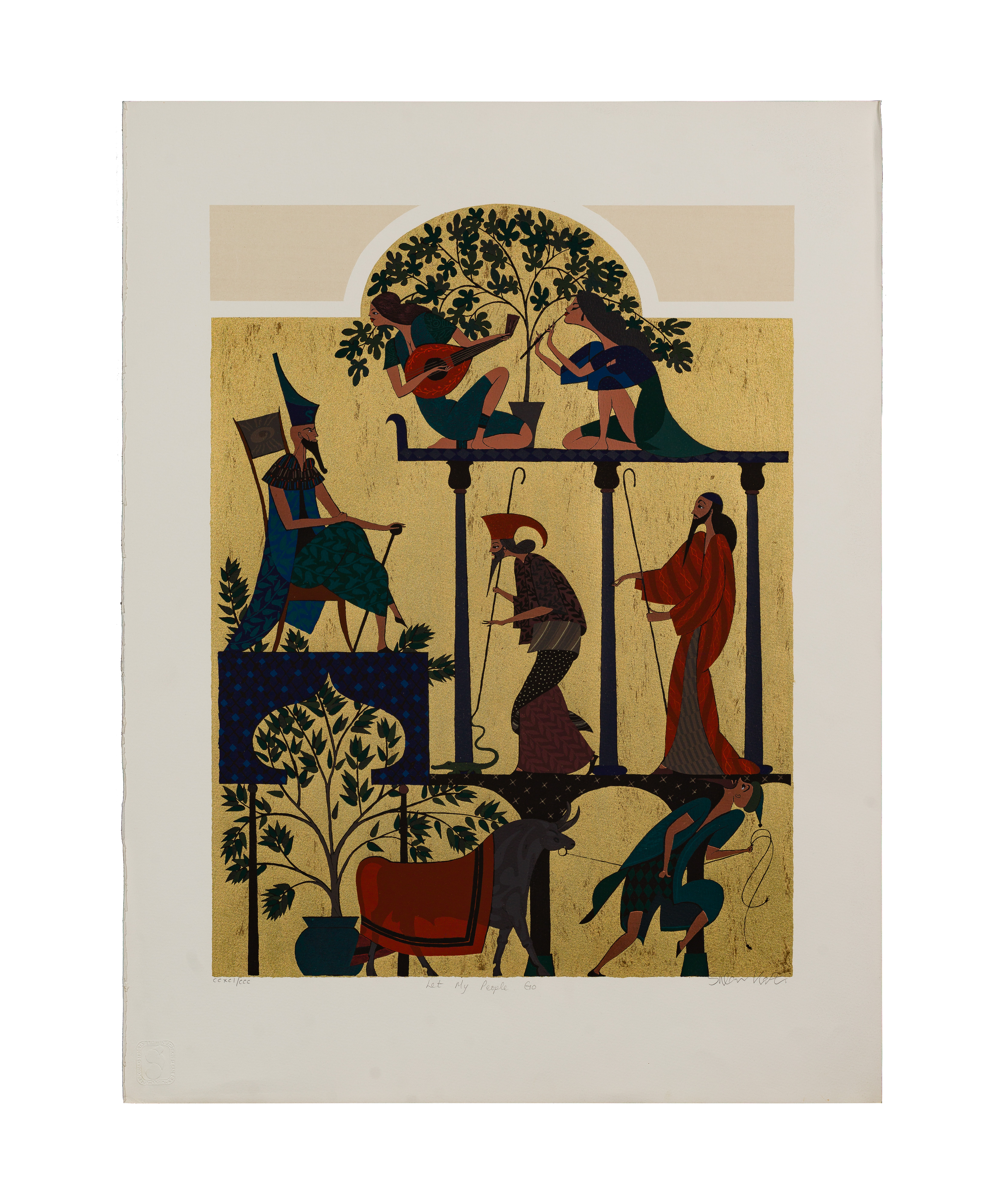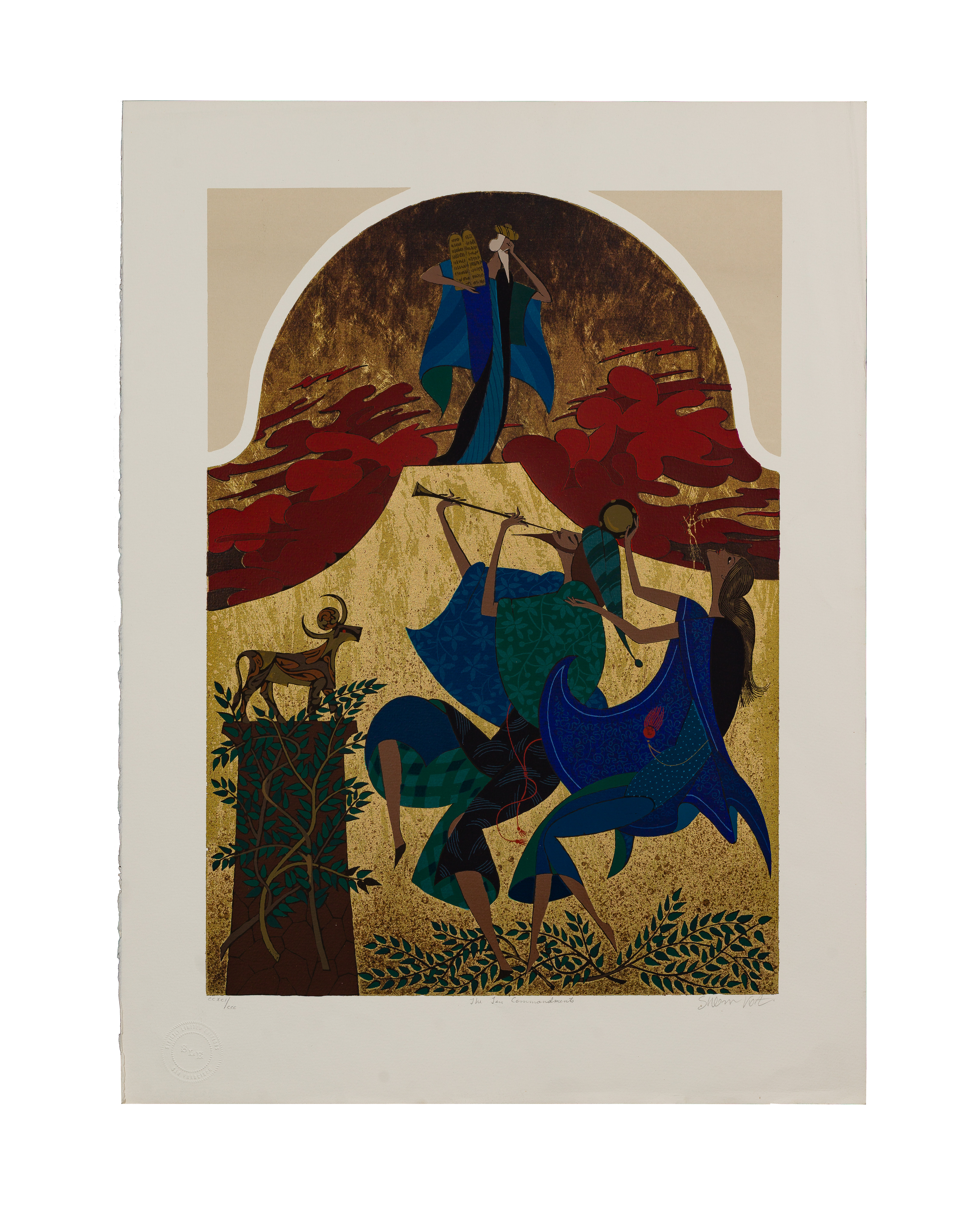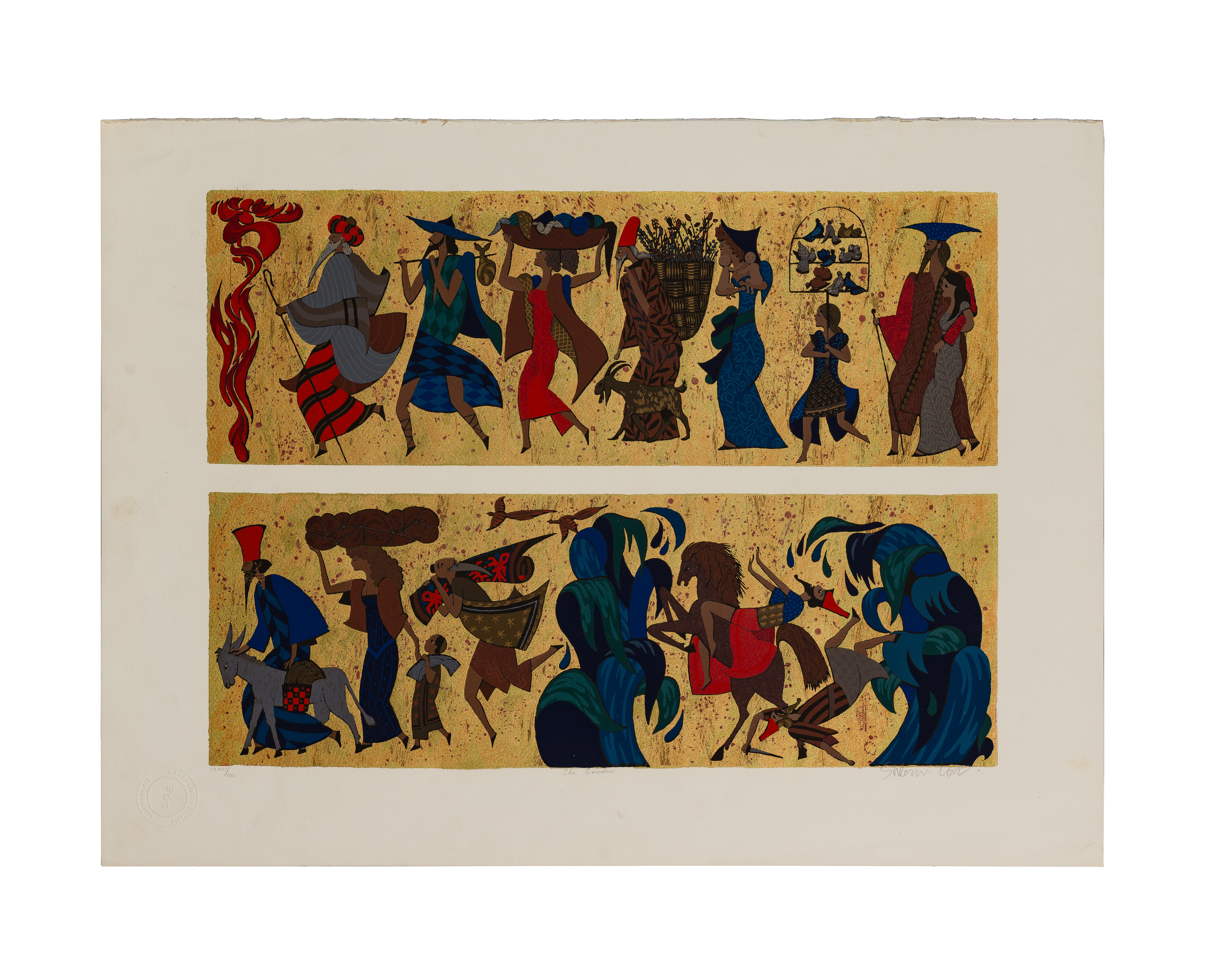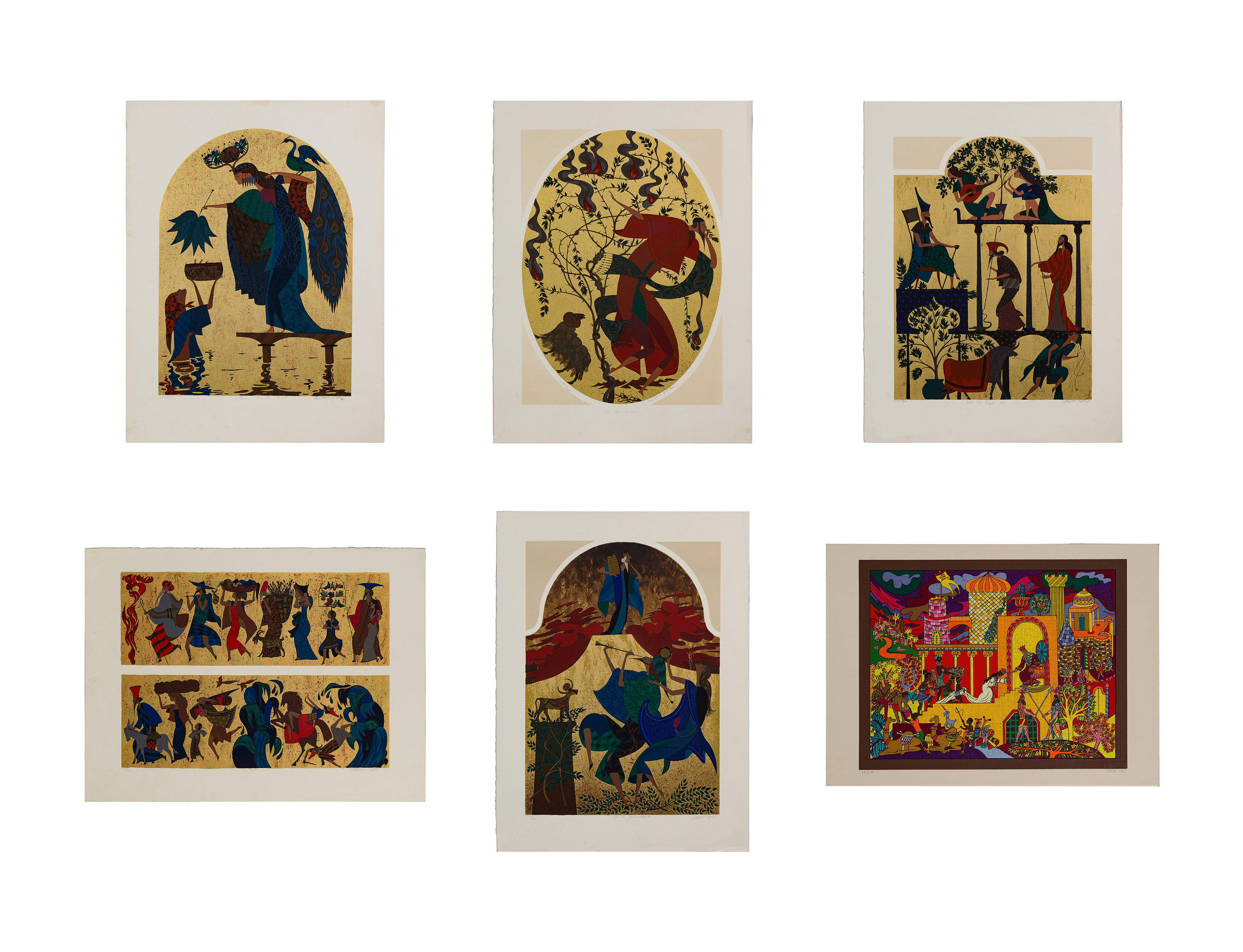 (2) total items including an undated, signed lower right, #CCXCI/CCC, incomplete portfolio including only ‘Moses in the Basket’, ‘The Burning Bush’, ‘Let My People Go’, ‘The Exodus’ and ‘The Ten Commandments’; together with an untitled Haggadah of Passover series serigraph