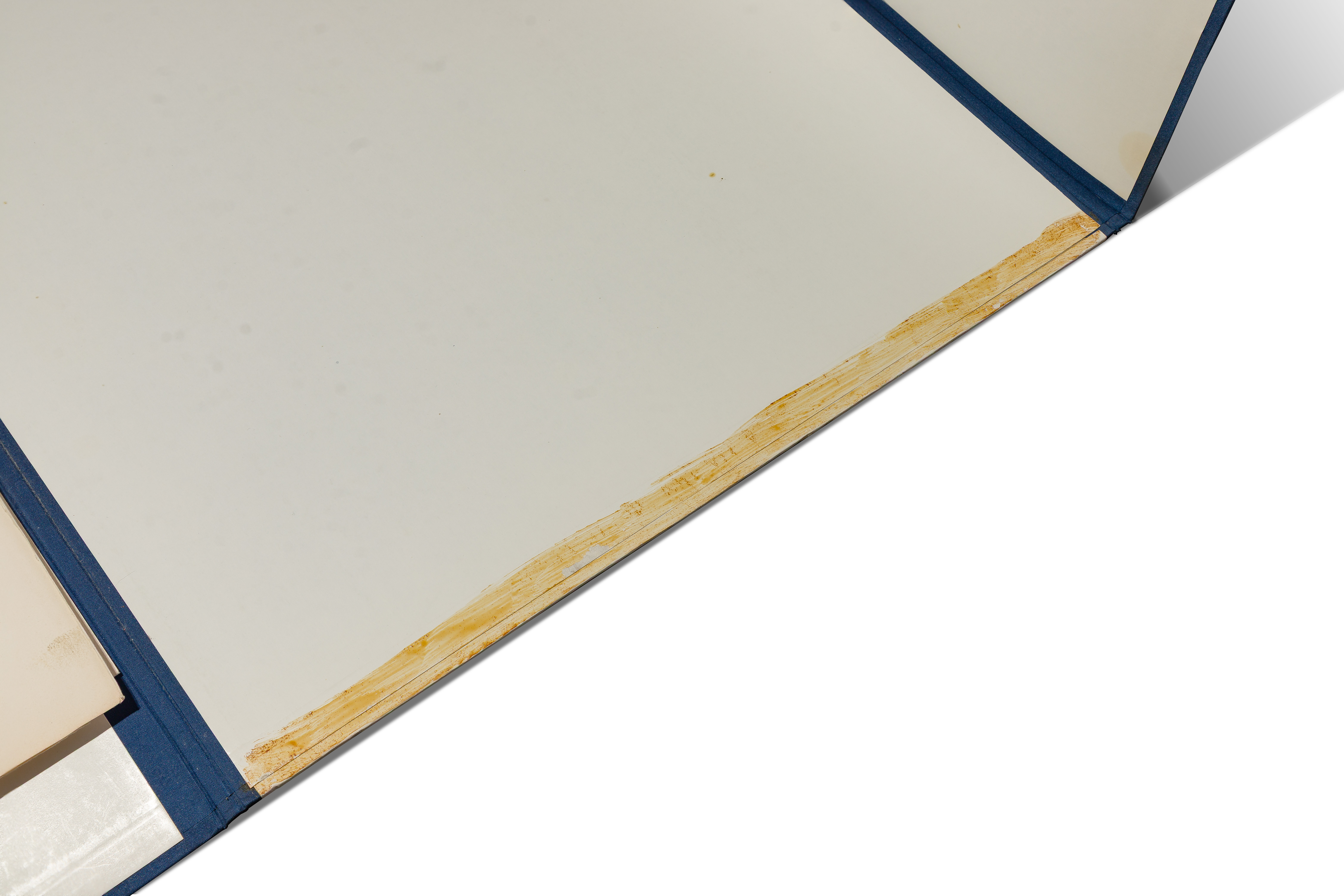 light to moderate wear overall, scuffs, scratches, staining, margin creases, color loss /creases on Ten Commandments, folder having staining / soiling throughout