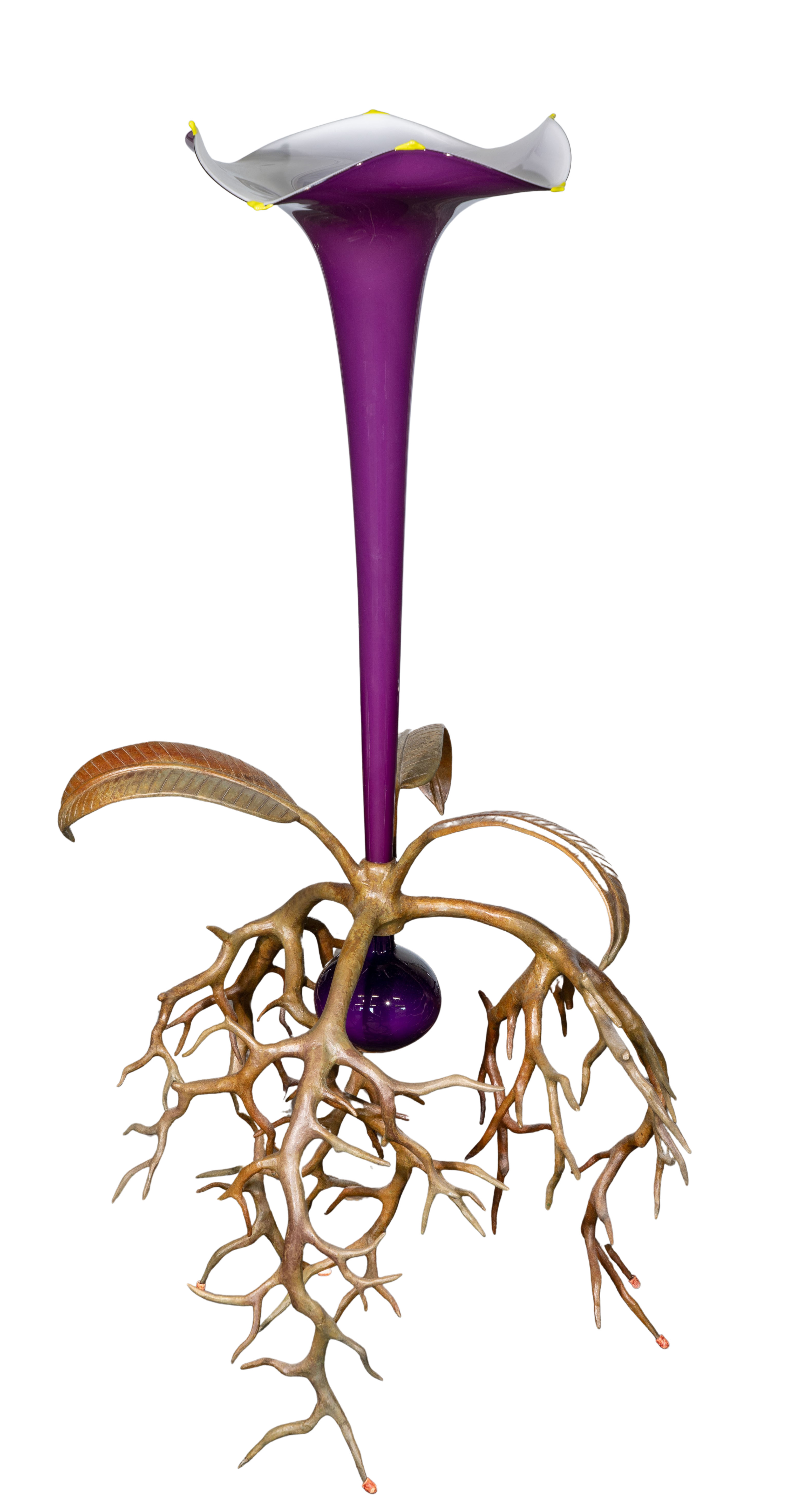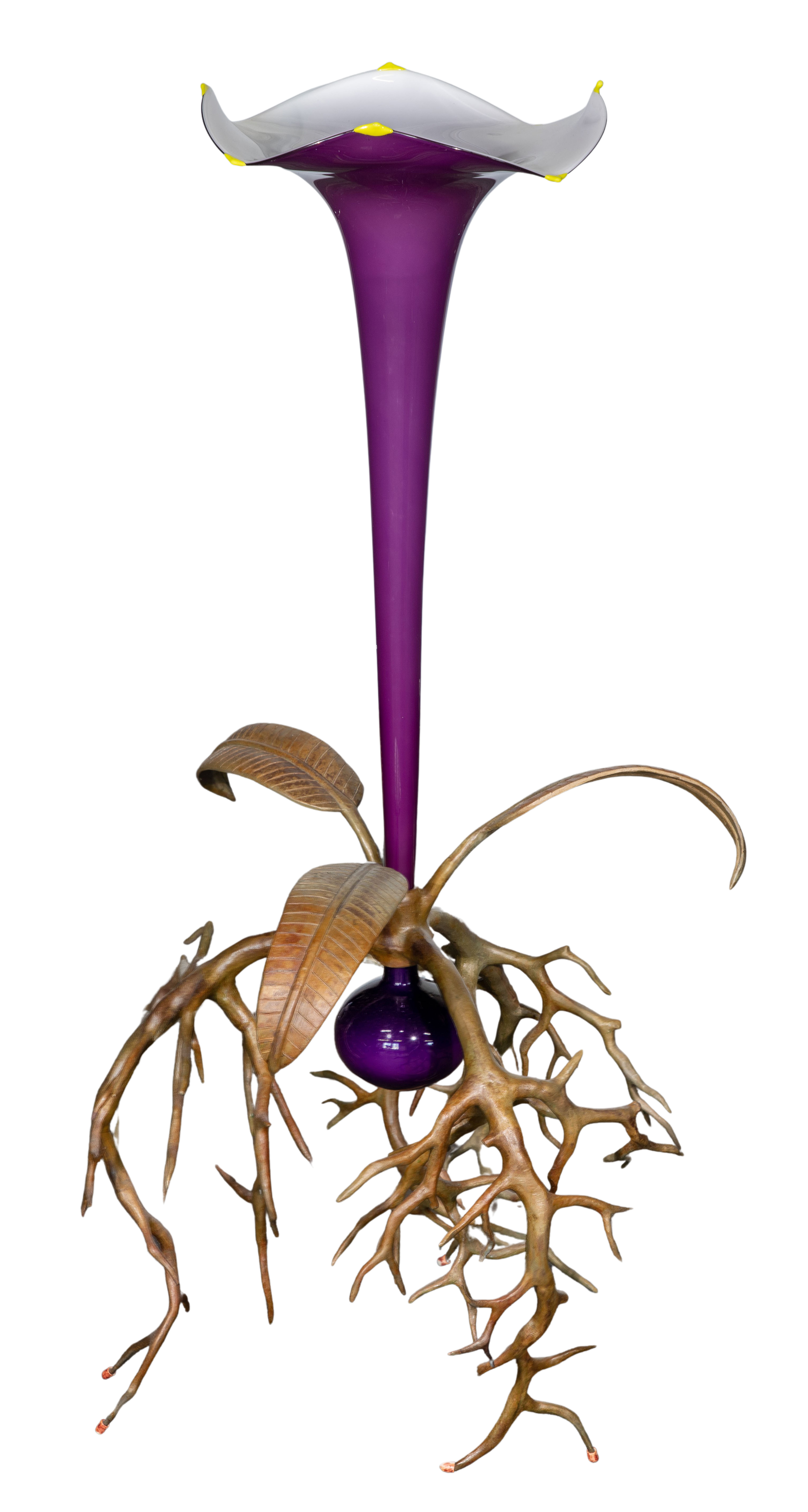 Charles Savoie (American, b.1959) Art Glass and Bronze Sculptural Floor Vase