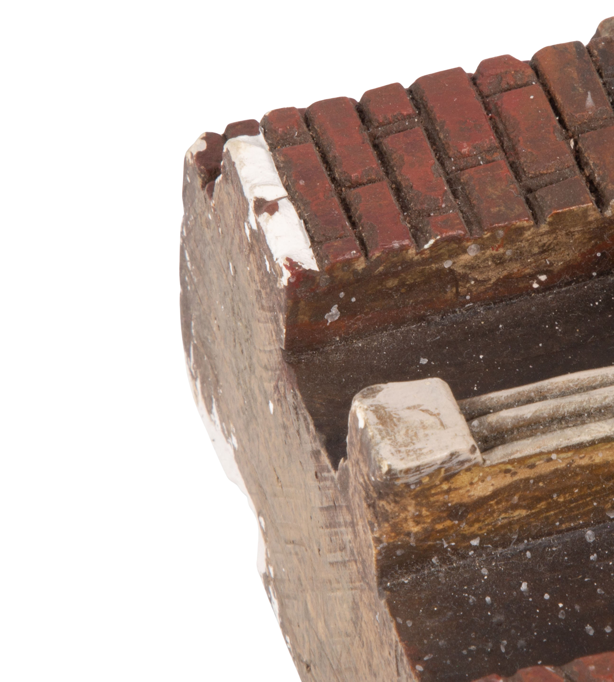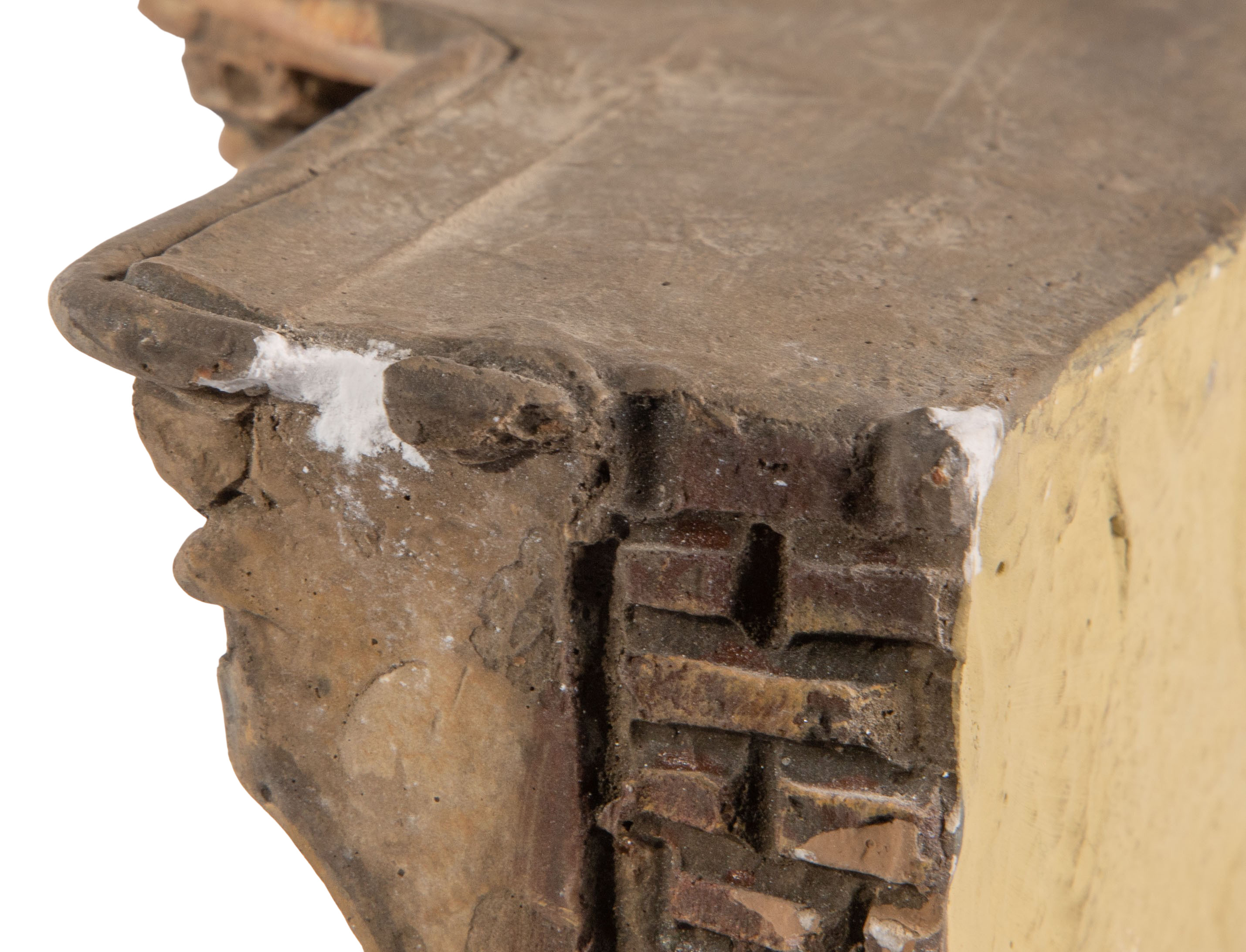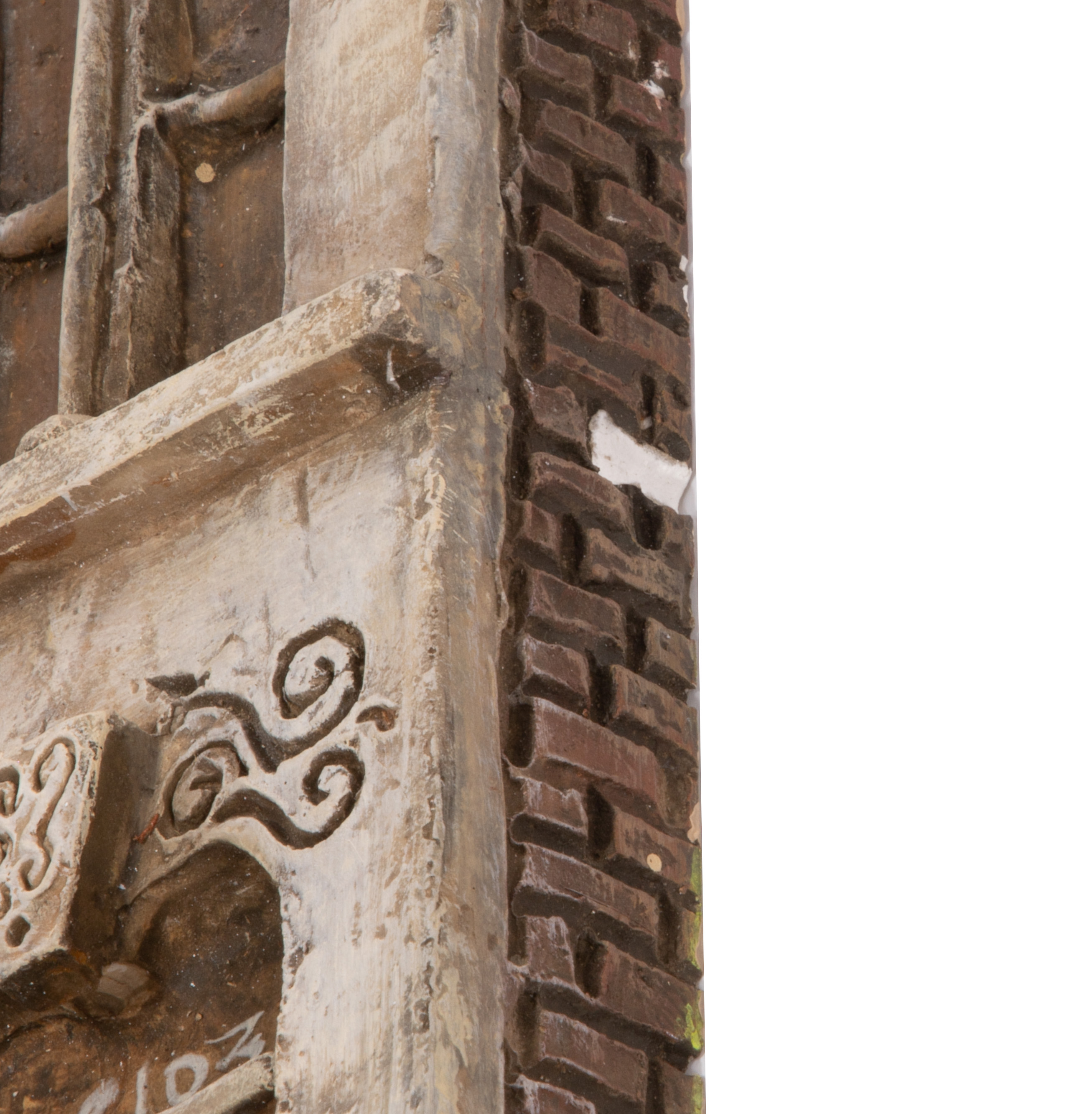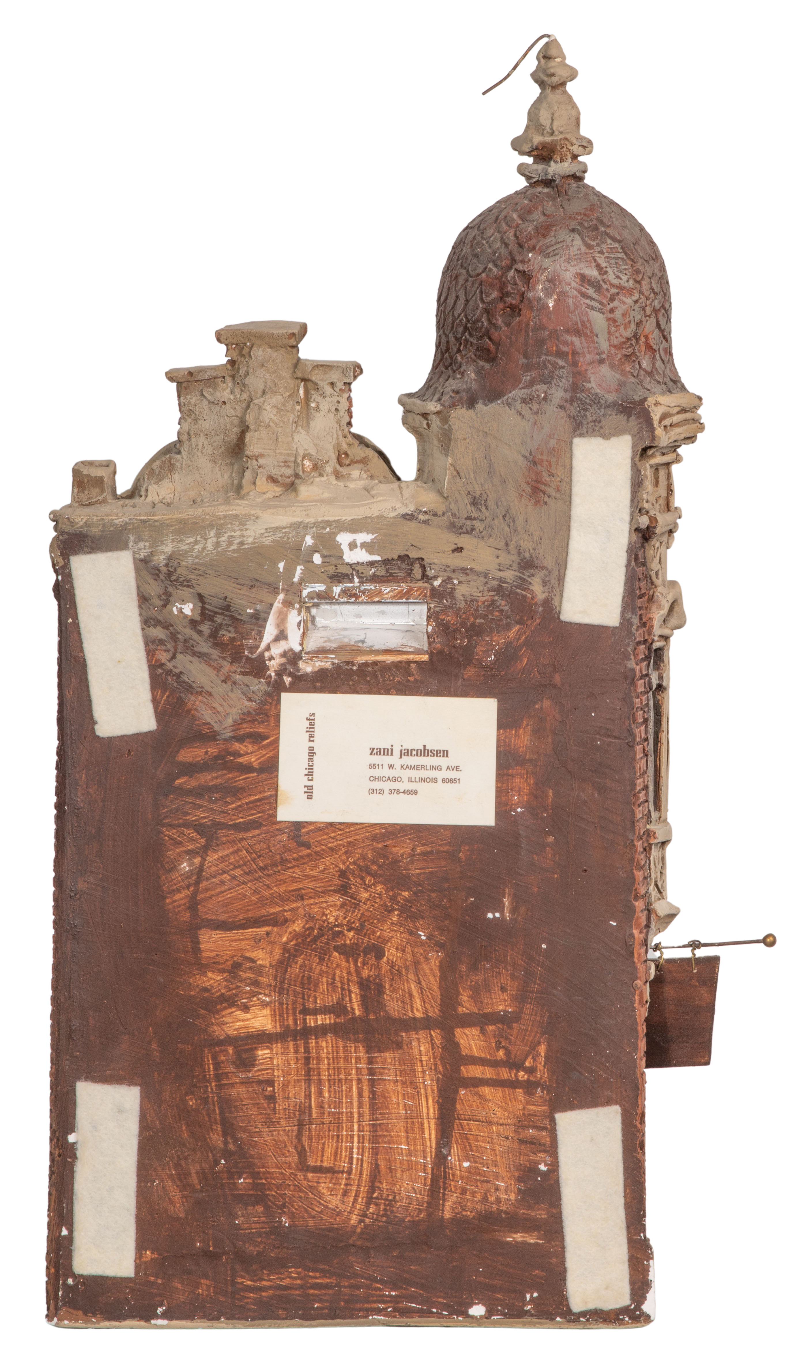 (3) items, hand cast and hand painted ceramic, including a Schlitz Tavern, 1989, cast signature on top, windows reading ‘Grace & Mike’s Tap’, the address over door reading ‘1800’, a brownstone having cast signature on top, address reading ’88’ and an Italianate limestone, cast signature on side of stairs, the address reading ‘2103’ but labeled ‘647 Armitage’ underside, all having artist label on backs