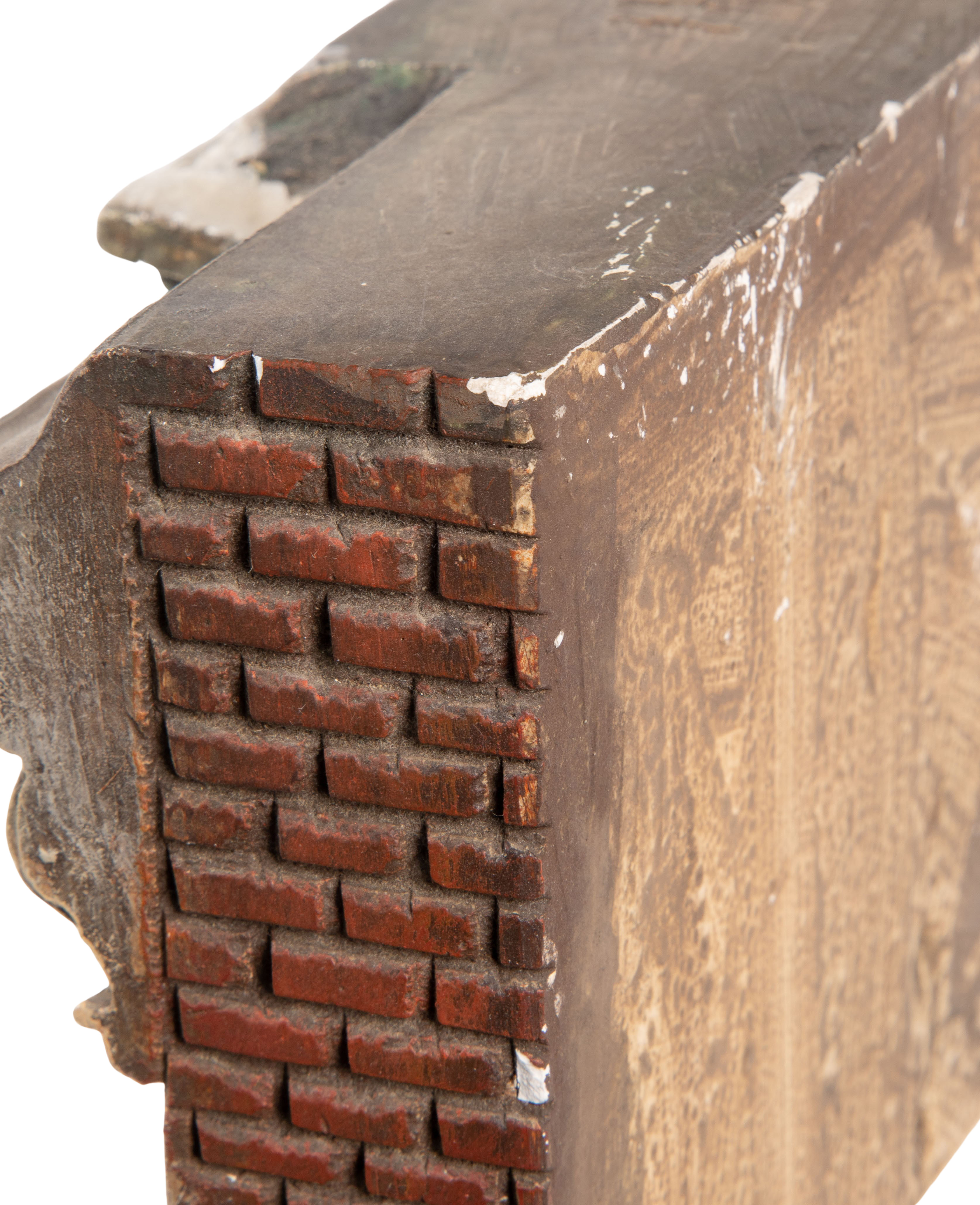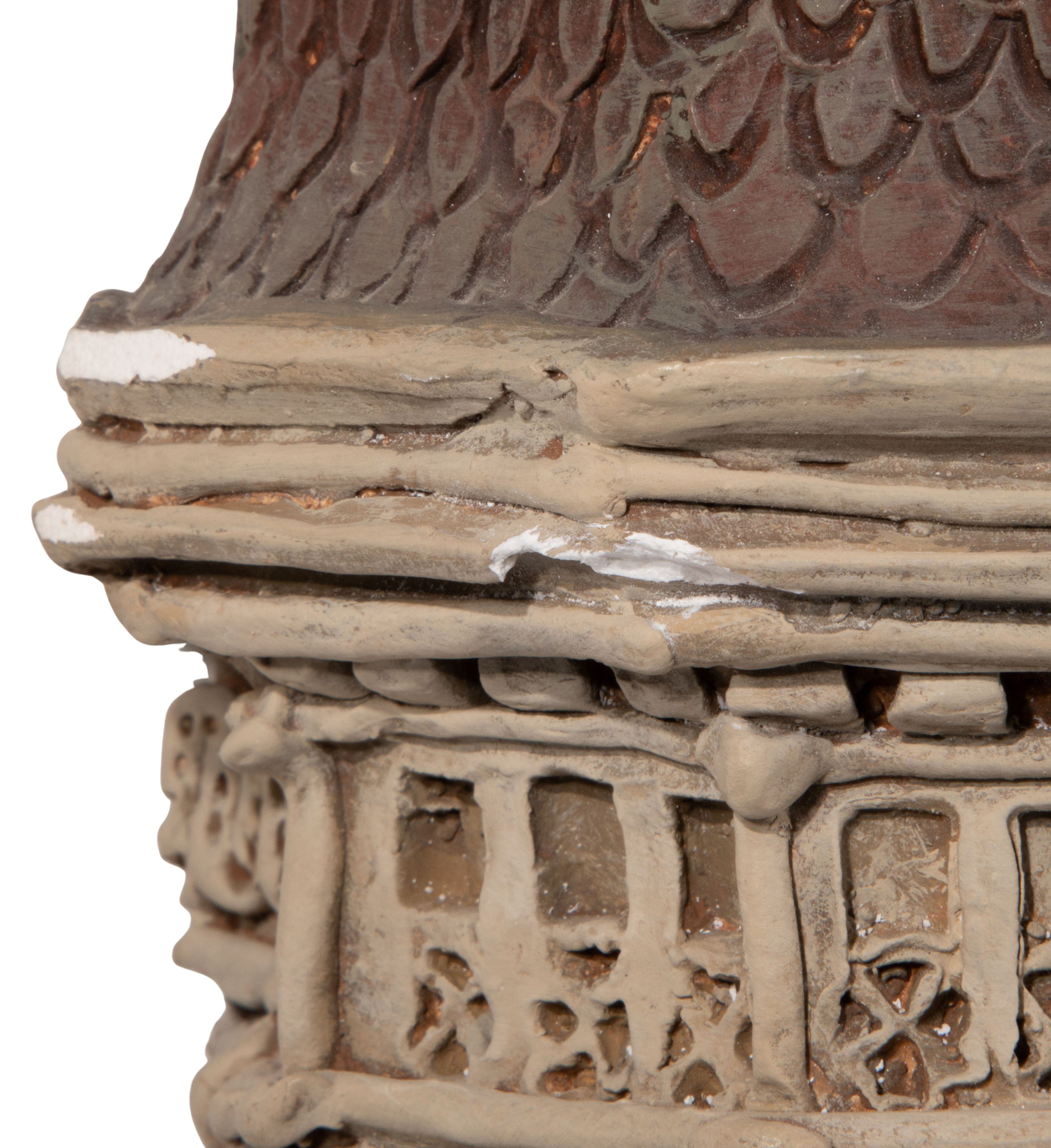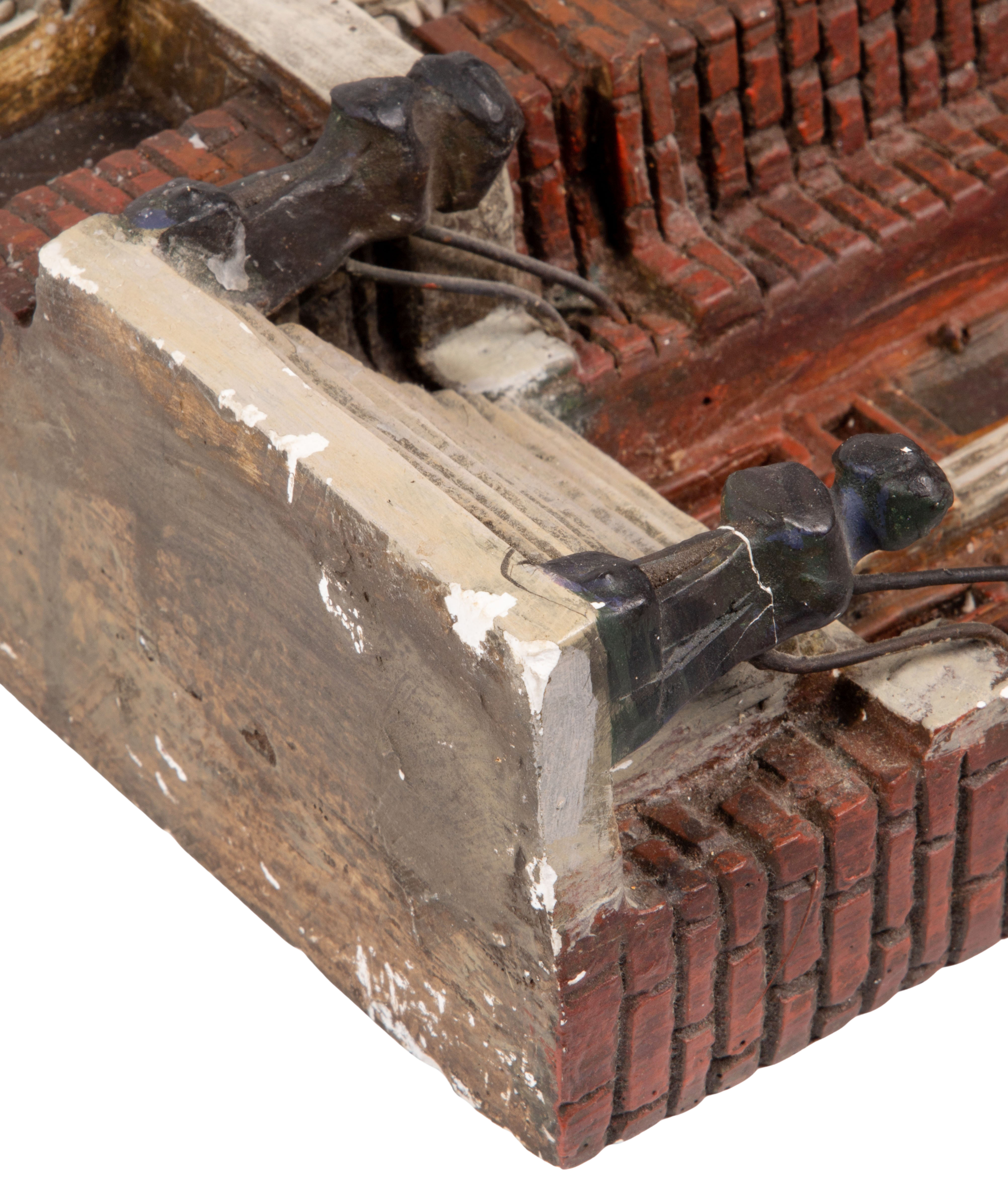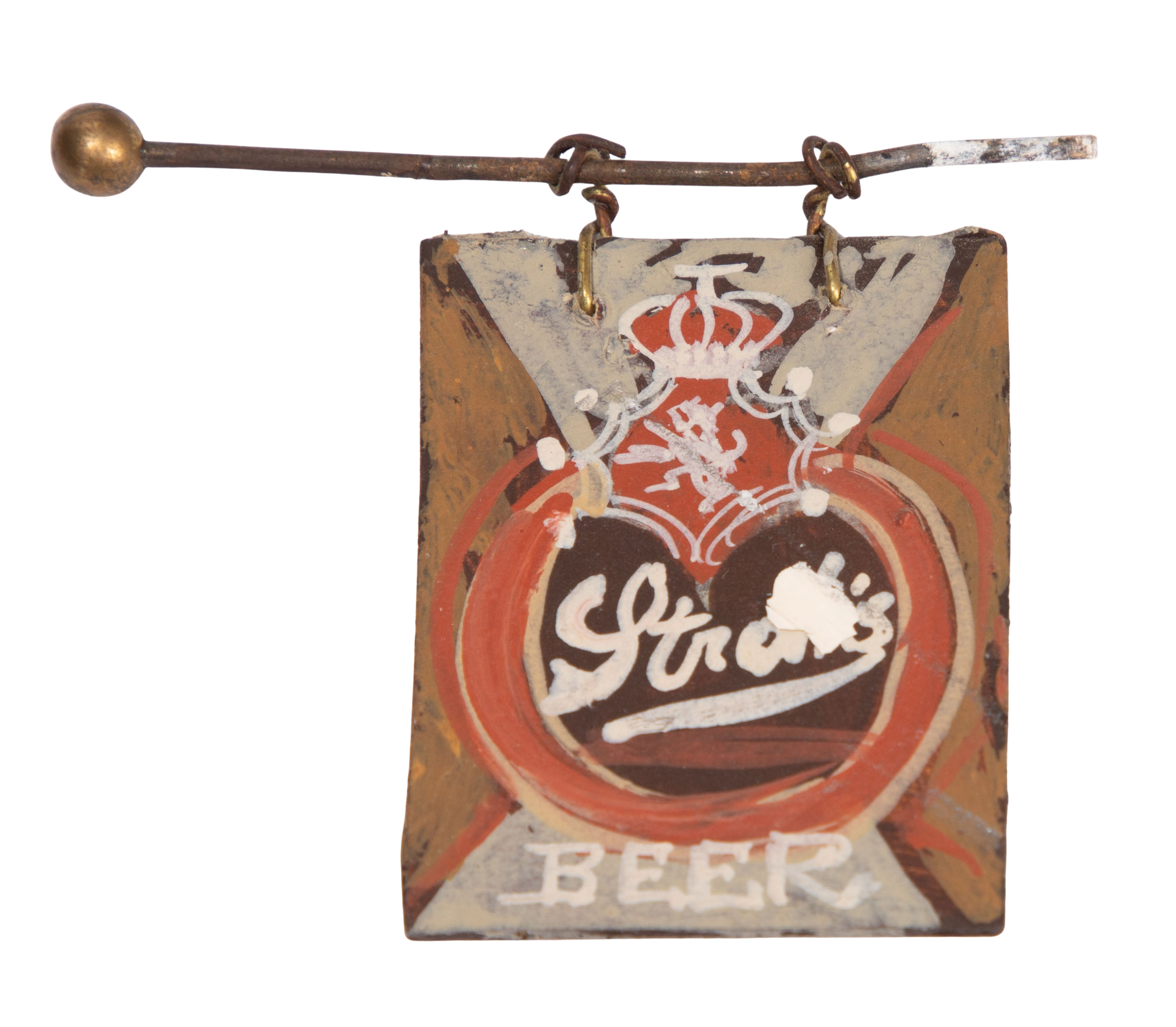 (3) items, hand cast and hand painted ceramic, including a Schlitz Tavern, 1989, cast signature on top, windows reading ‘Grace & Mike’s Tap’, the address over door reading ‘1800’, a brownstone having cast signature on top, address reading ’88’ and an Italianate limestone, cast signature on side of stairs, the address reading ‘2103’ but labeled ‘647 Armitage’ underside, all having artist label on backs