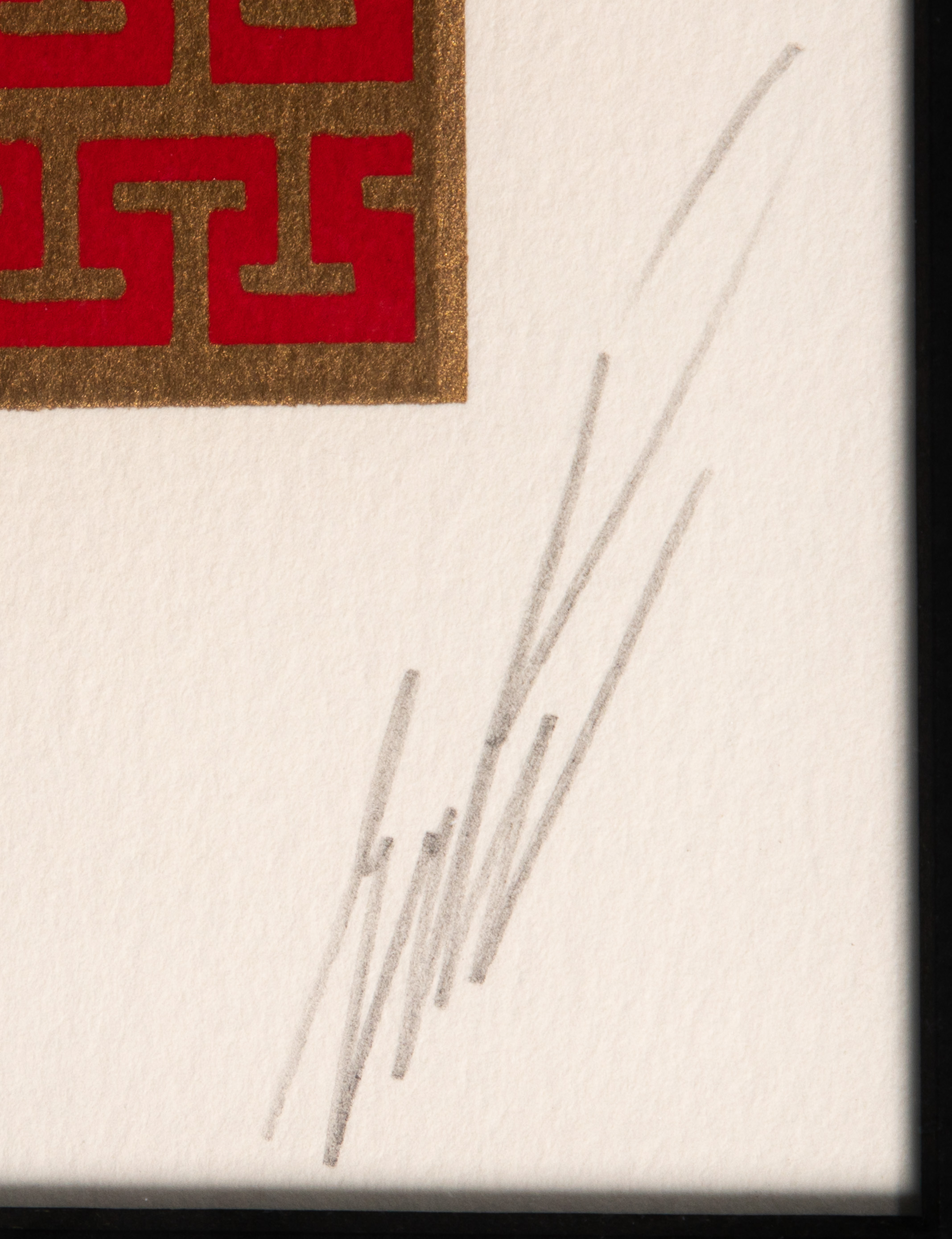 Undated, pencil signed lower right, pencil #184/300 lower left, depicting two figures in dragon form costume, matted behind glass in a silver-tone wood frame, a Gallery One label verso