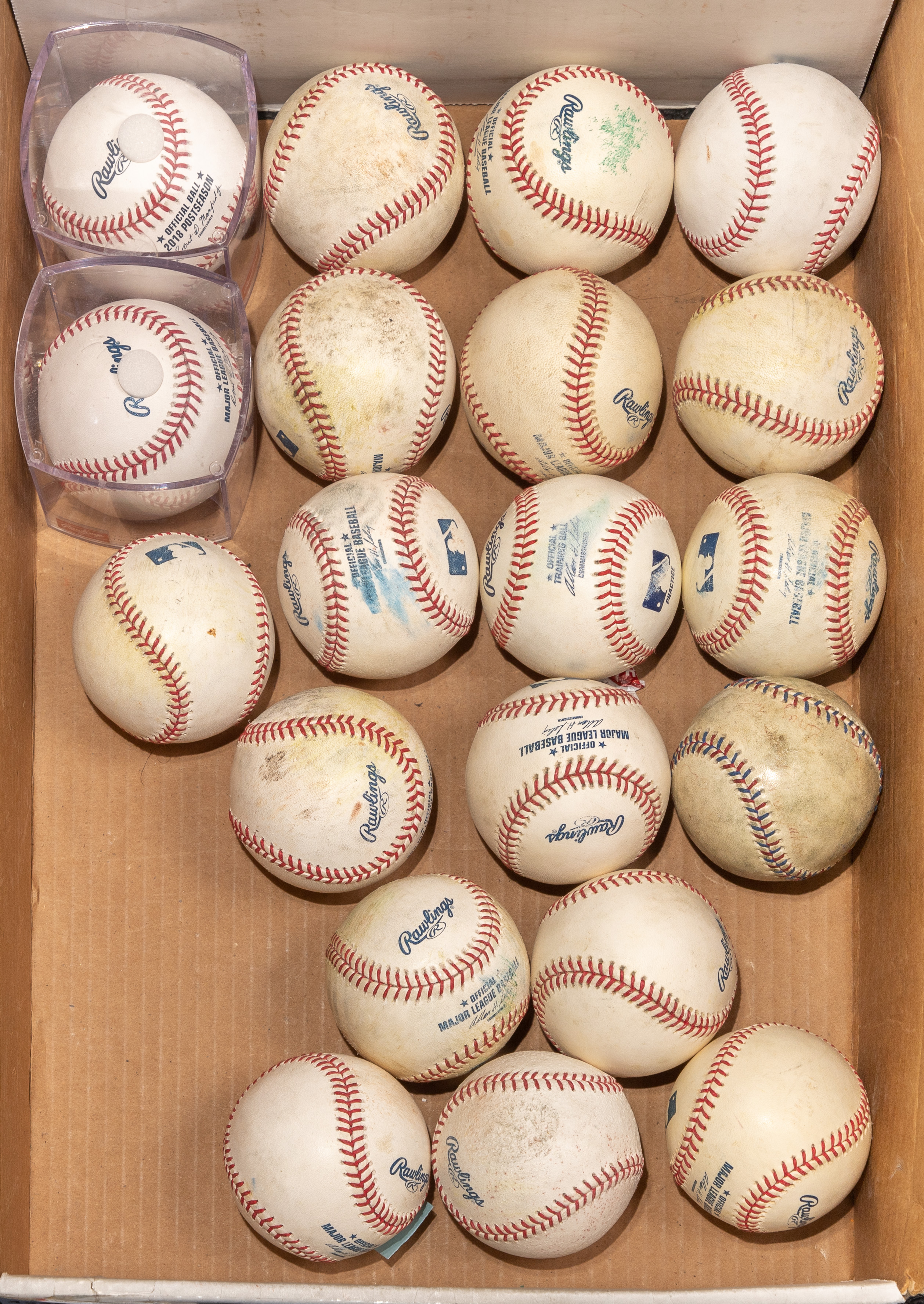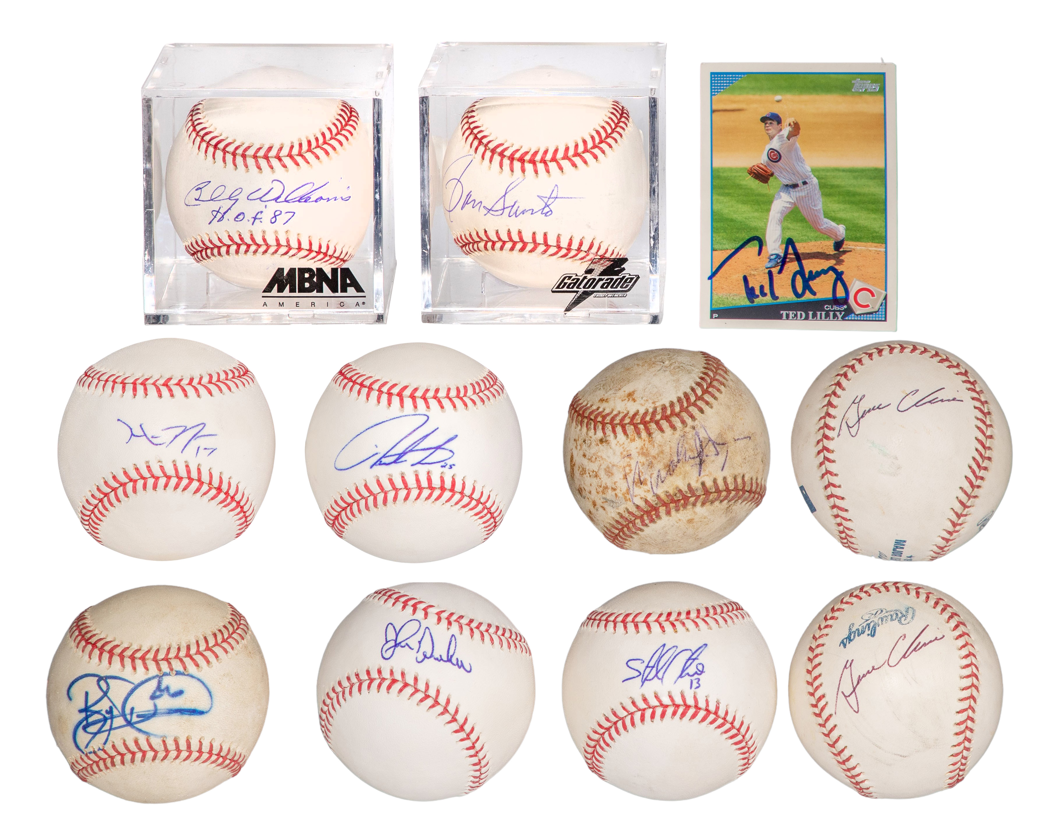 (31) total items including (10) illegibly signed balls with two in cases, (2) balls in acrylic cases unsigned and (18) loose baseballs; together with a Ted Lilly signed (Topps) baseball card
