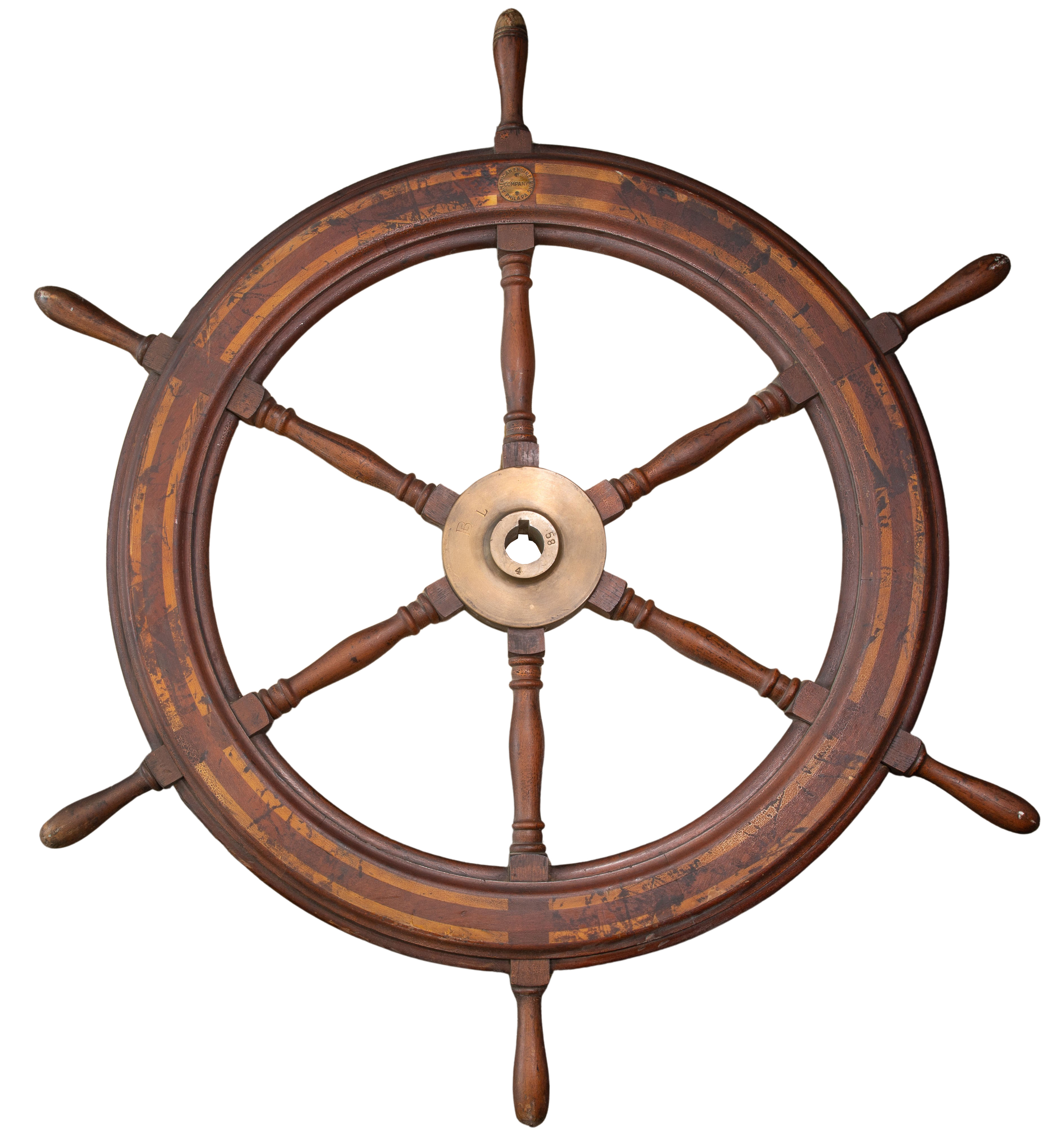 American Engineering Company Wood and Brass Ship’s Wheel