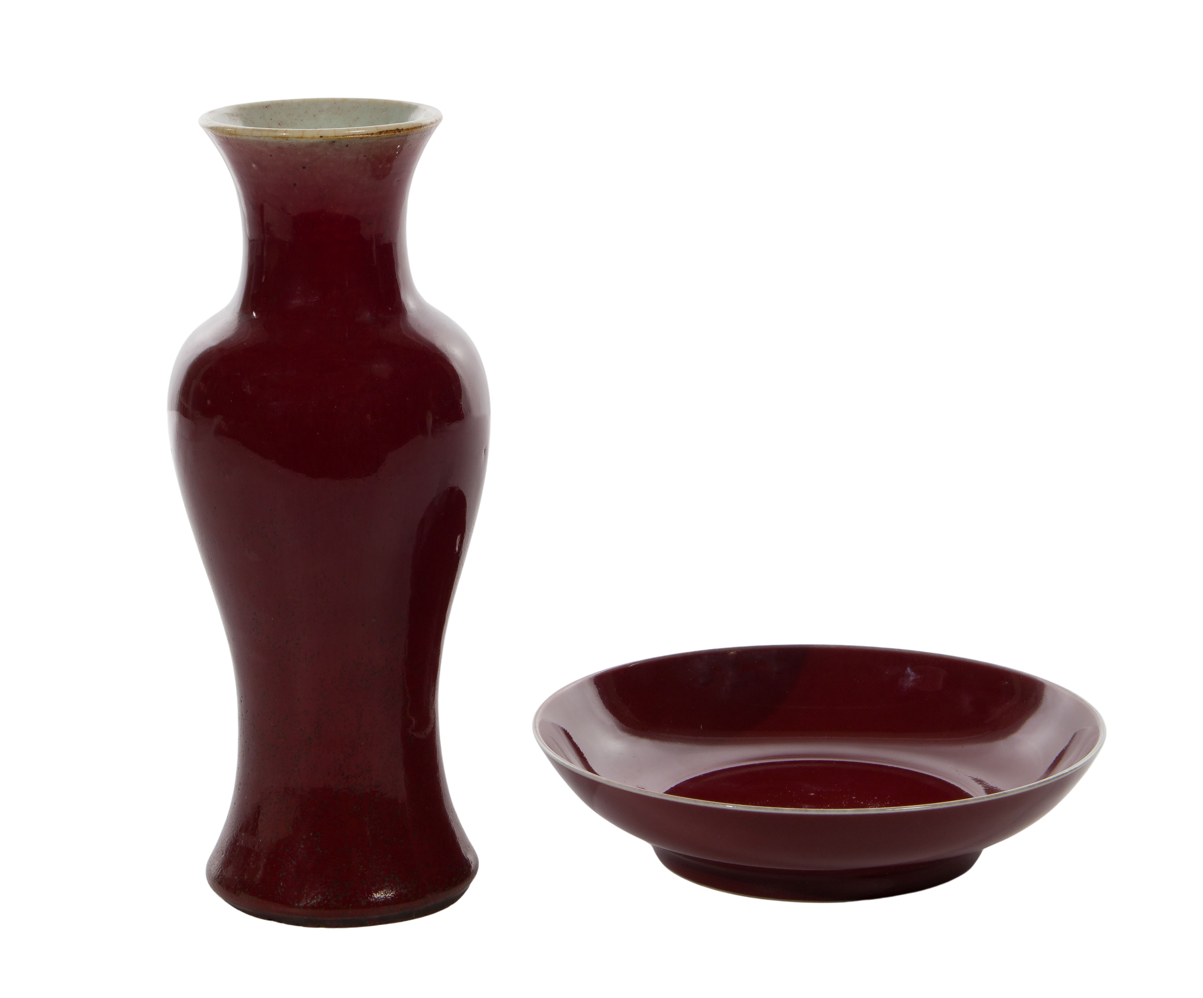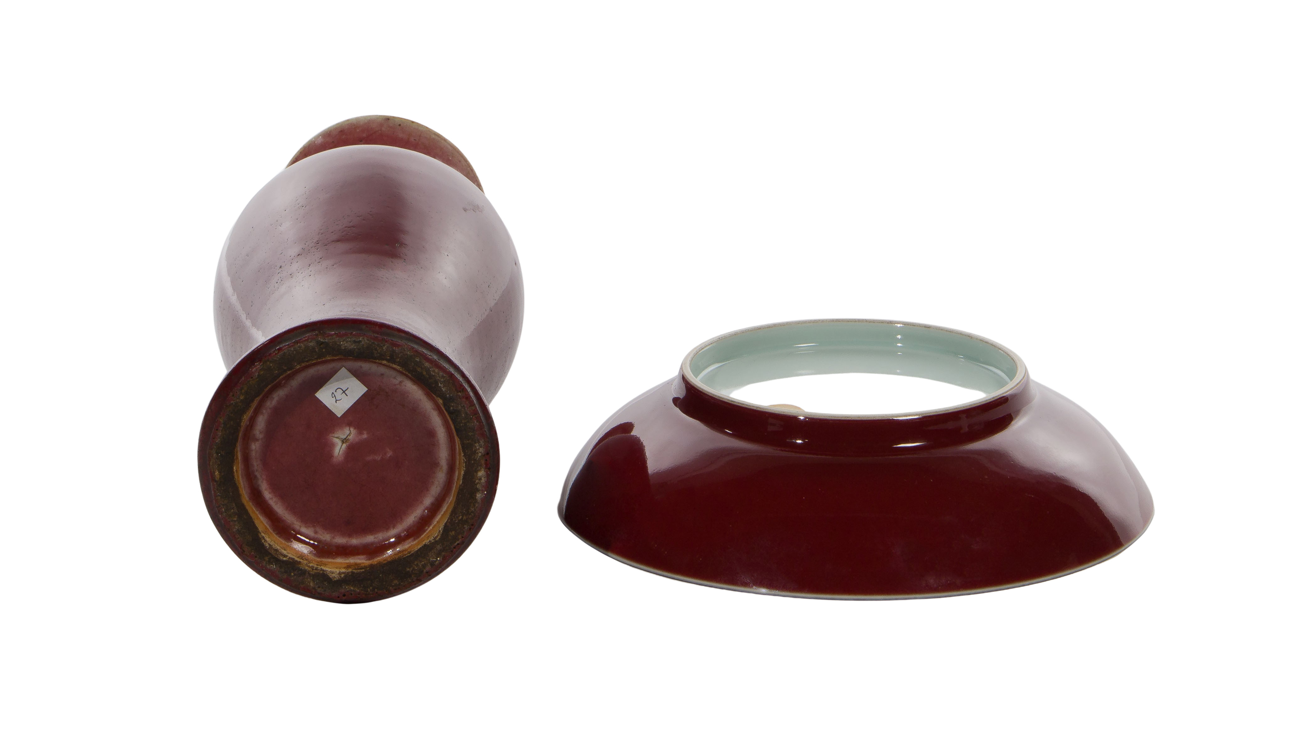 Chinese Sang de Boeuf Porcelain Vase and Bowl