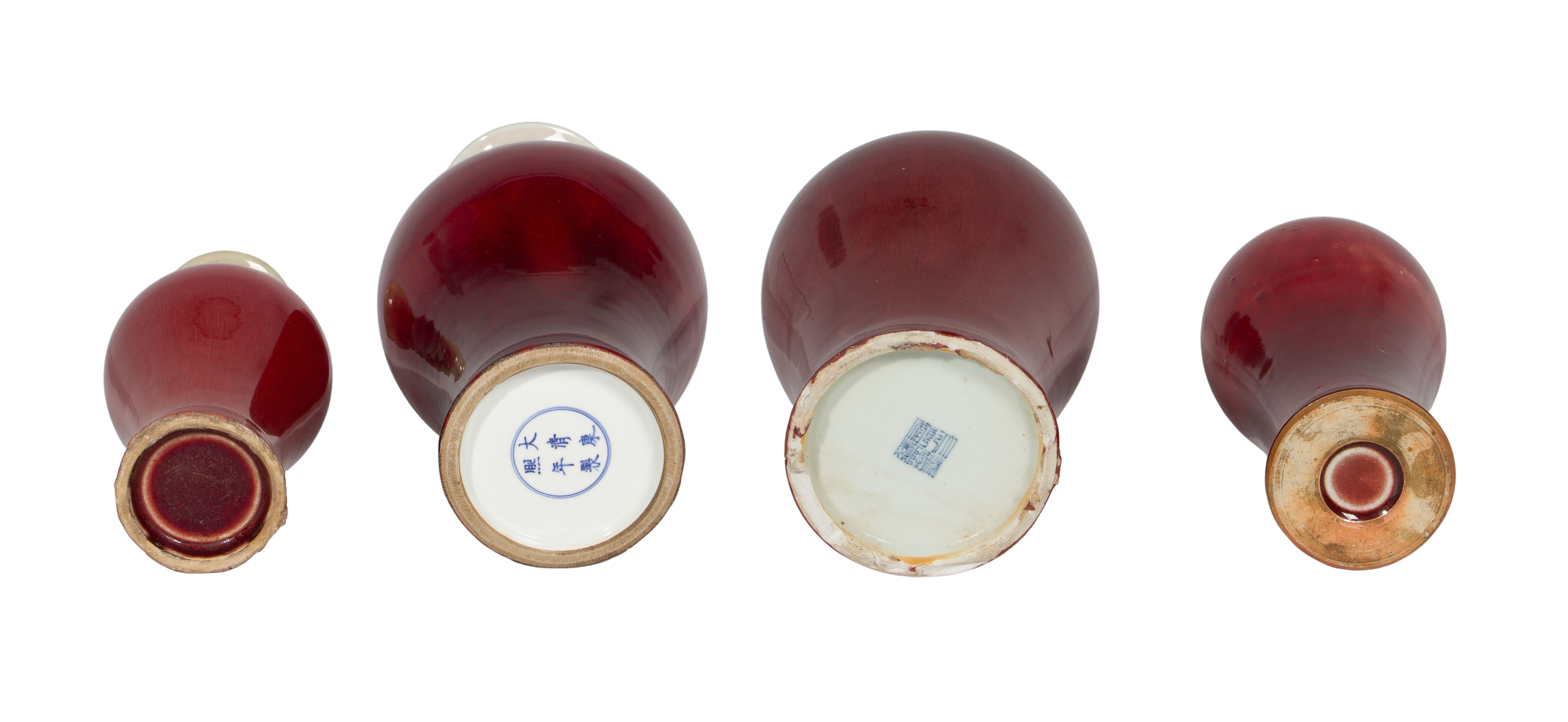 (4) vases of various sizes, including a baluster having an underglaze blue Kangxi mark, a meiping having an underglaze blue Qianlong mark and two unmarked