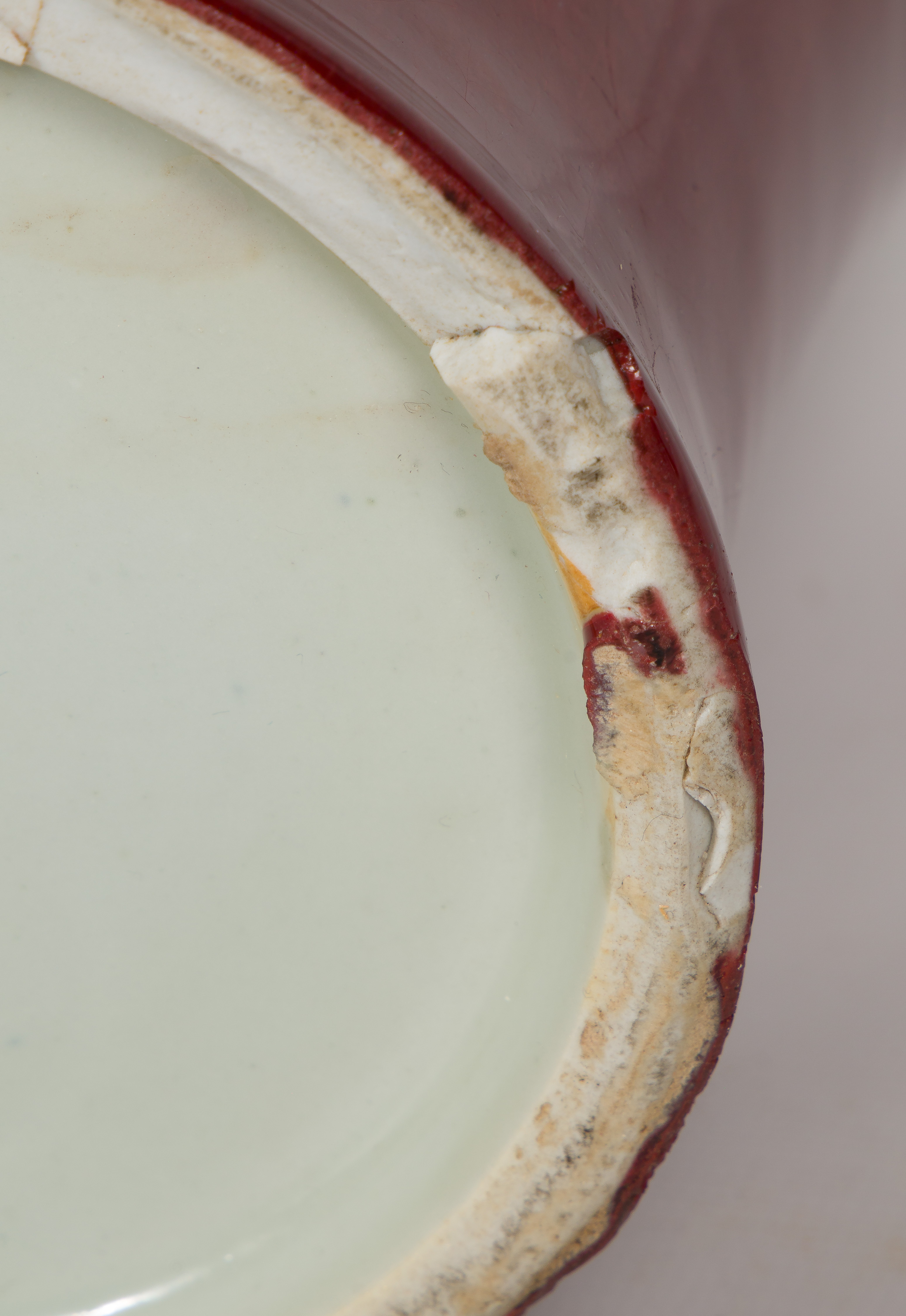 overall light wear consistent with normal use, nicks, chips especially around foot rims, scuffs and scratches, largest vase having crazing overall