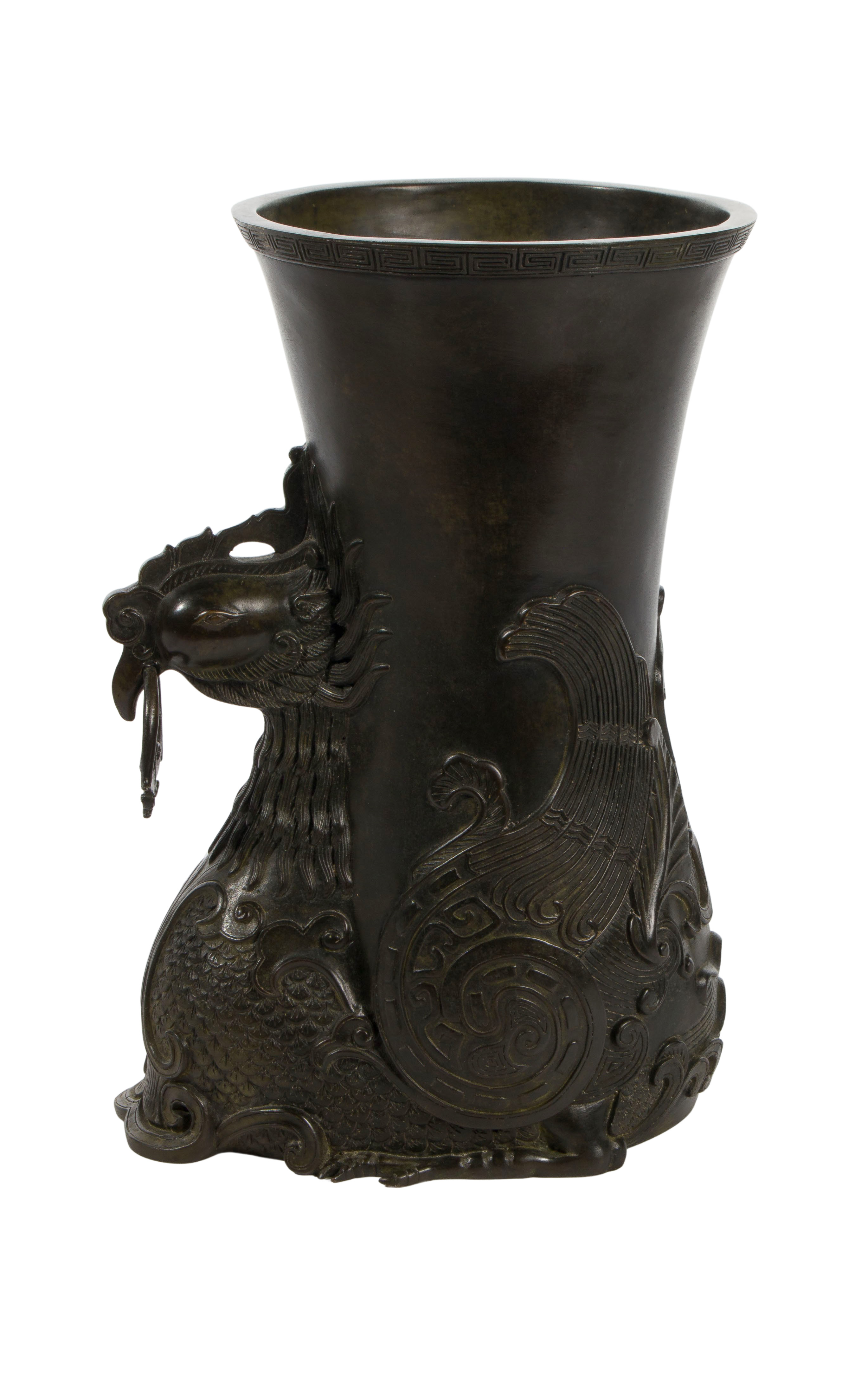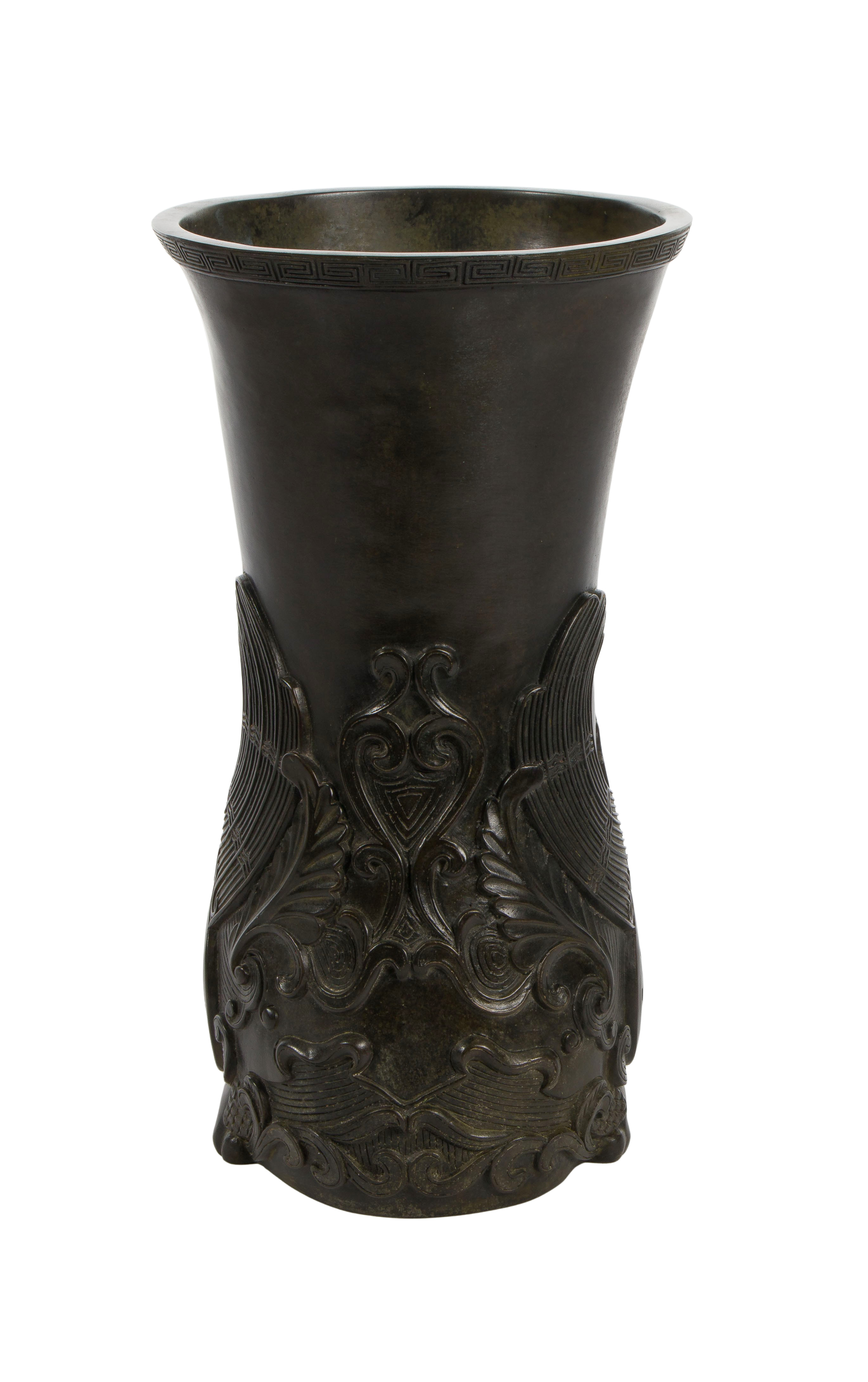 Chinese Bronze Phoenix Zun Bottle Vase