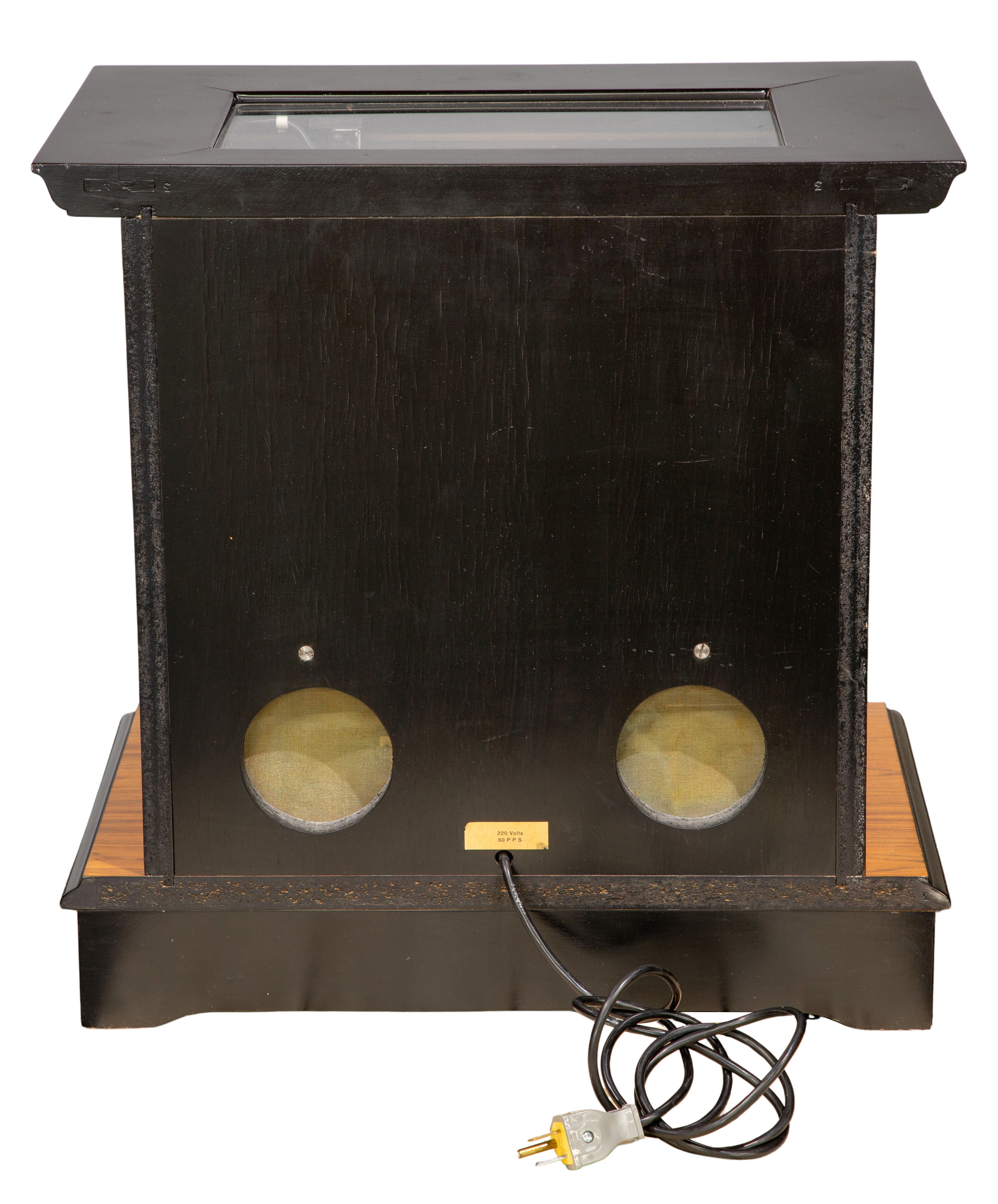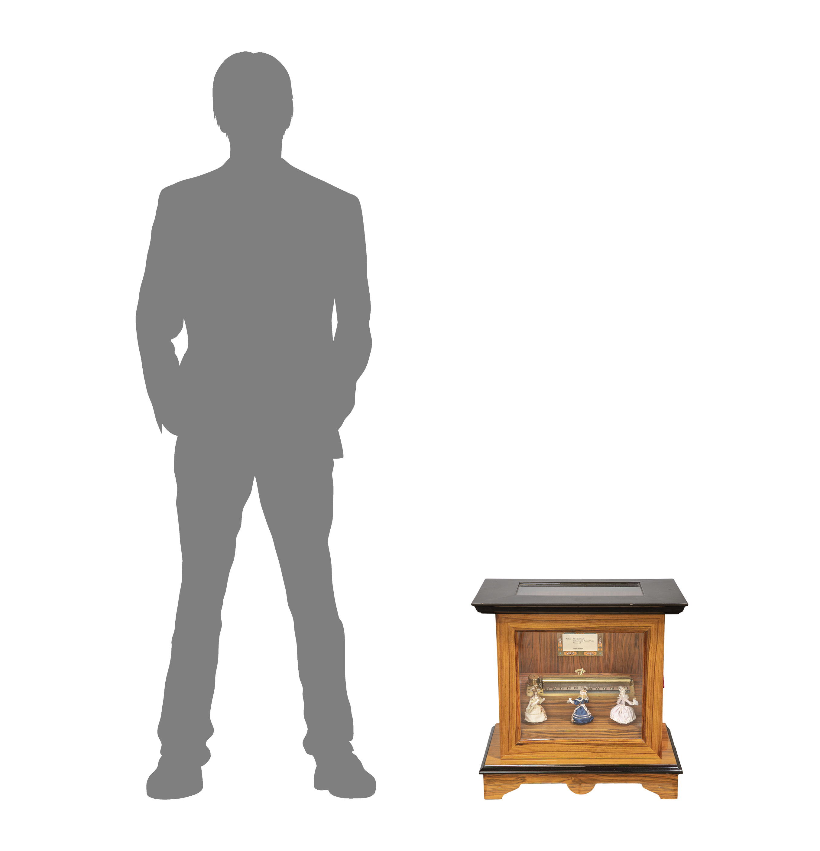Serial #1681, having three dancing figures, in black and brown wood display case, music box having been electrified, including adapters and key