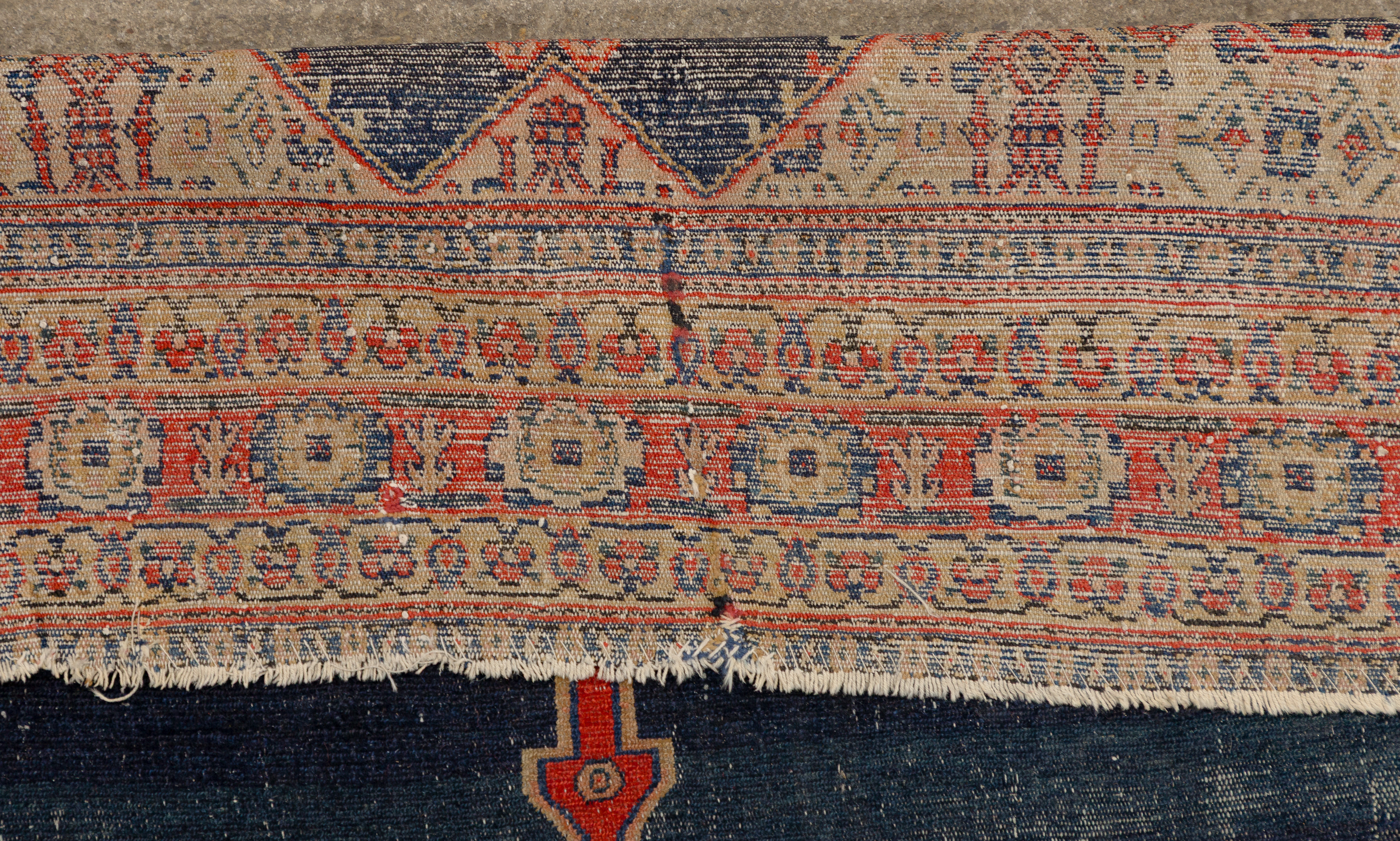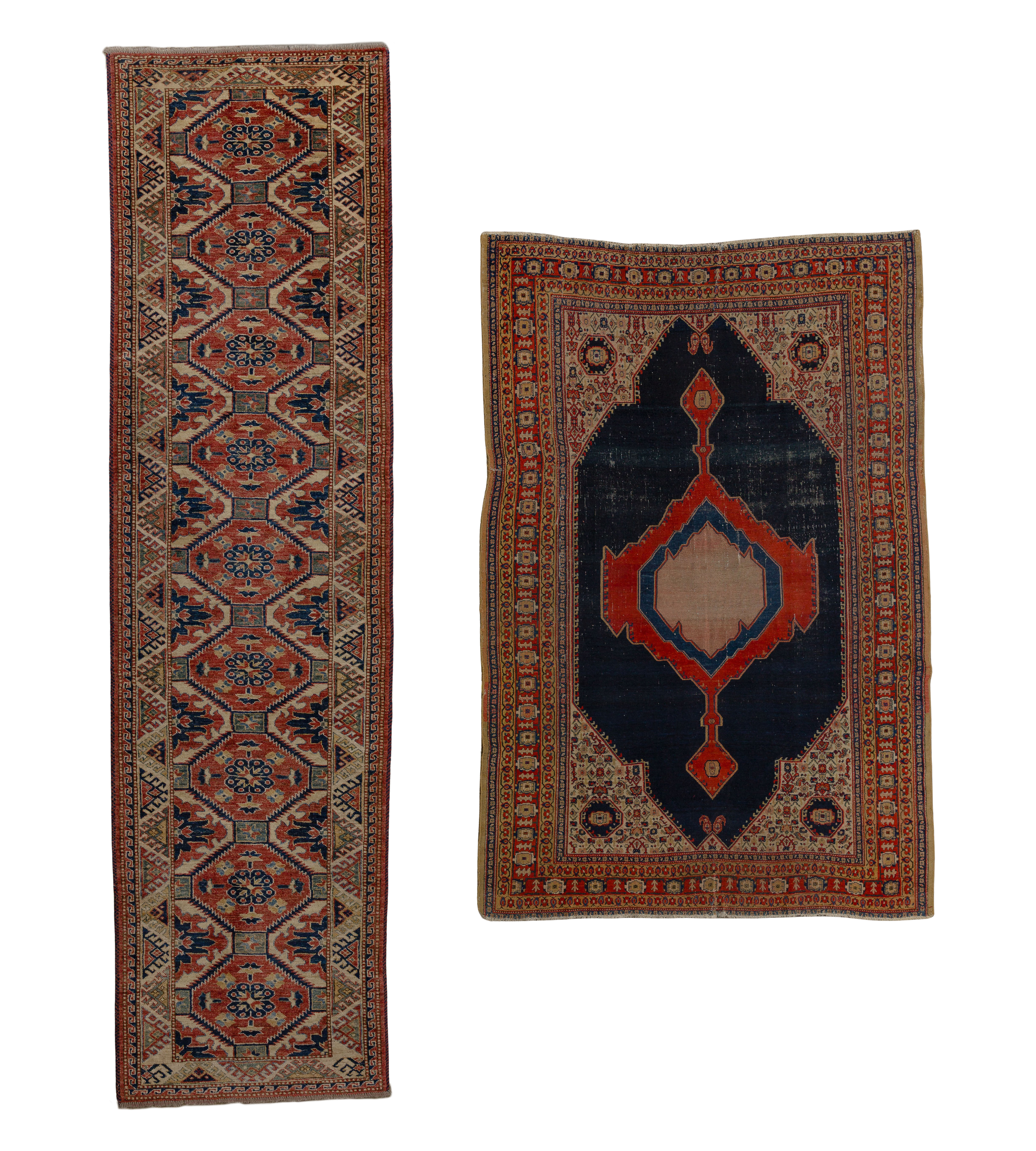 (2) items including a Malayer style runner having an abstract geometric design in hues of tan, rust and blue on a multi-color field and a Bijar style having a center medallion and abstract geometric design in hues of tan and red on a blue field (6 ft. 4 in. x 4 ft. 2 in.)