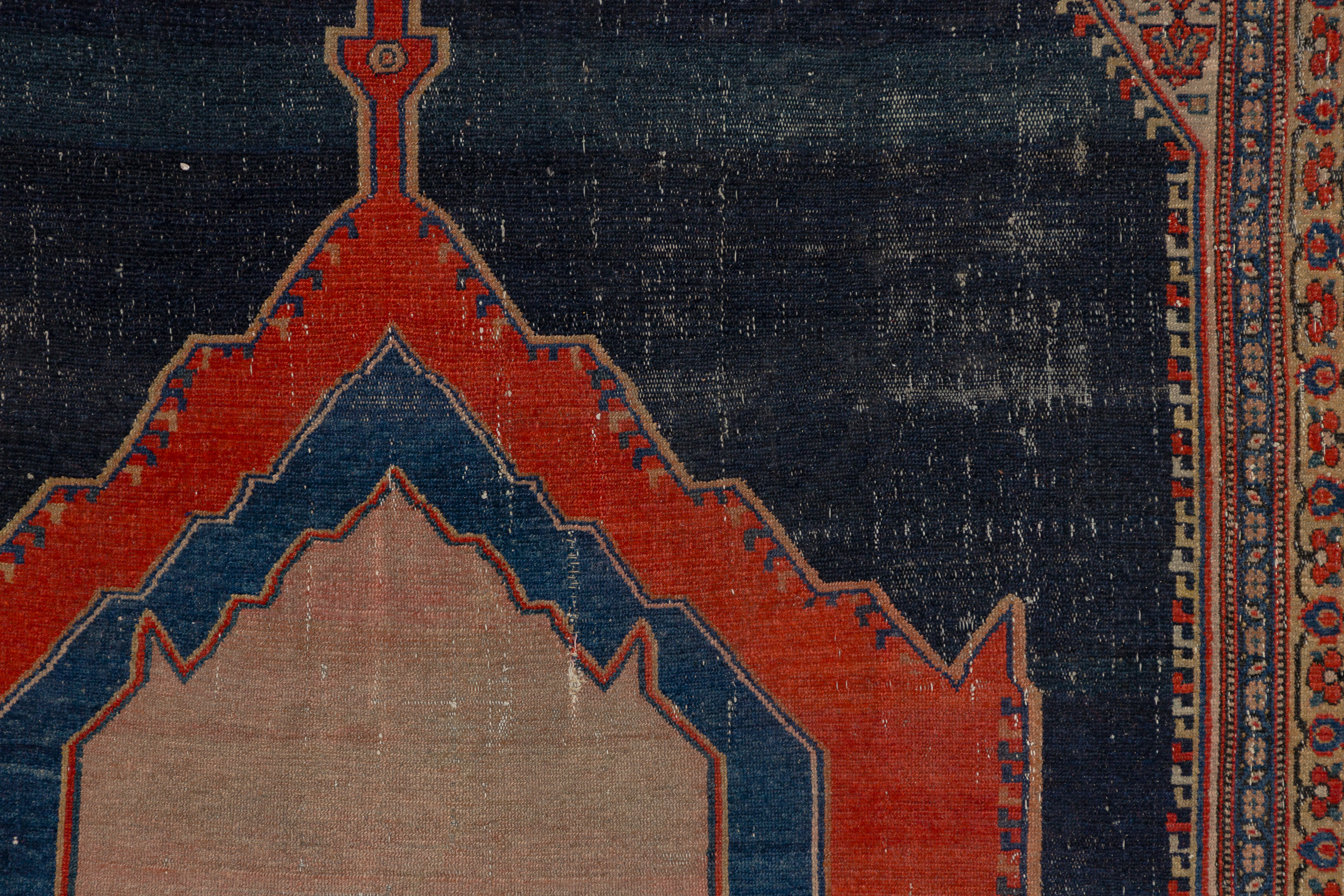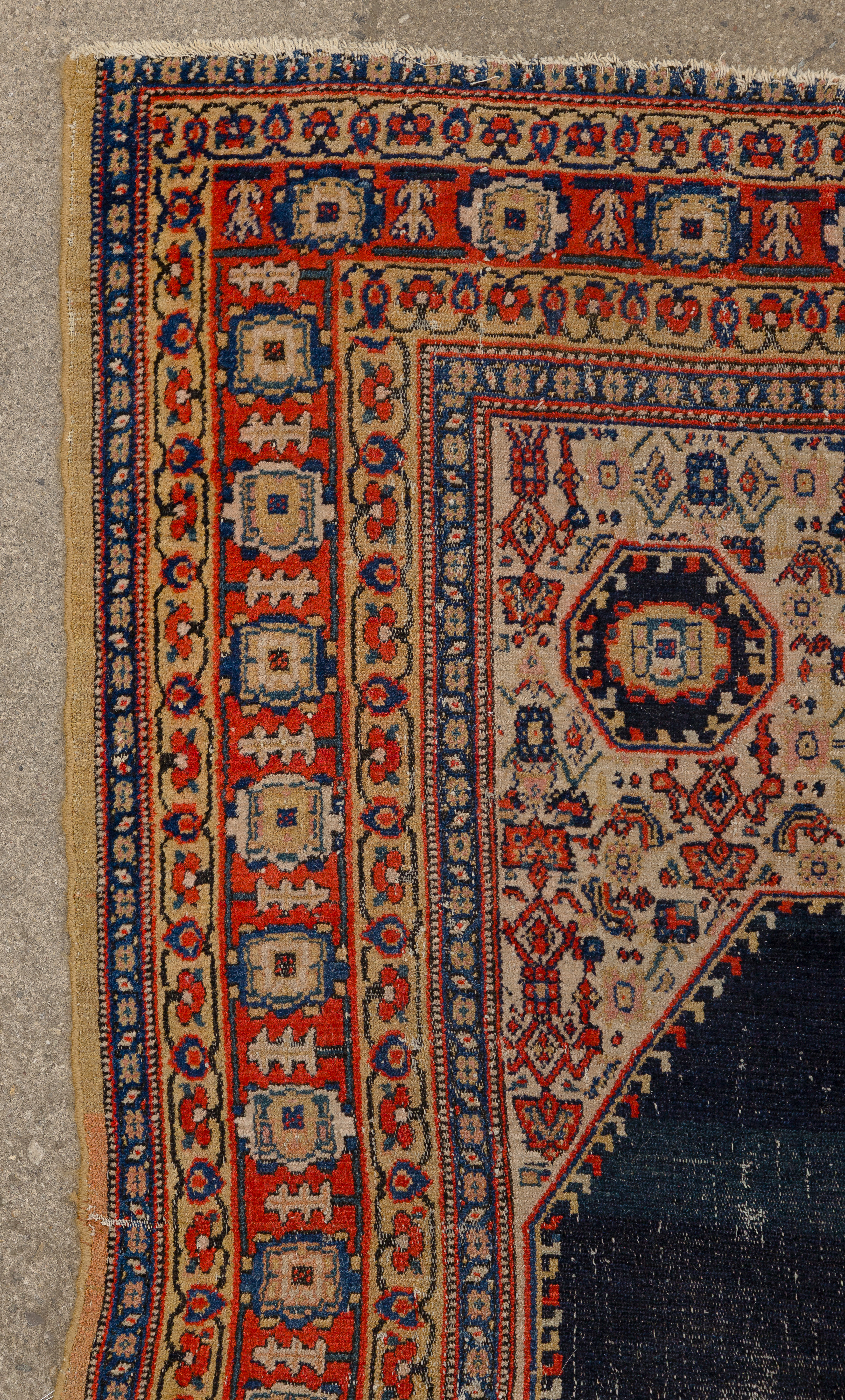 Condition: overall light to moderate wear consistent with normal use, both having fringe damage and dirt accumulation, Bijar having backing showing, stains, fading, fraying, Malayer having stains and wear pattern