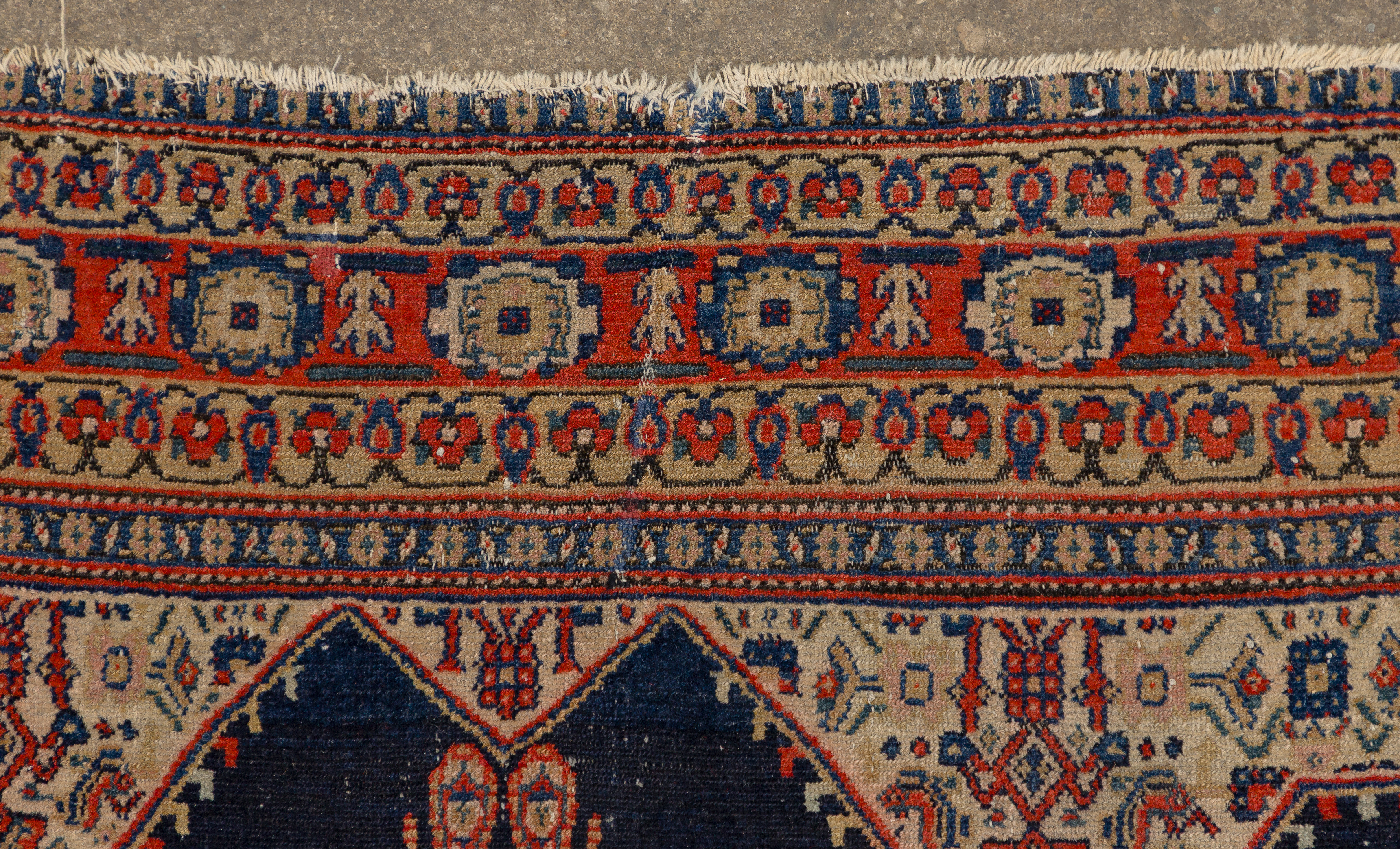 overall light to moderate wear consistent with normal use, both having fringe damage and dirt accumulation, Bijar having backing showing, stains, fading, fraying, Malayer having stains and wear pattern