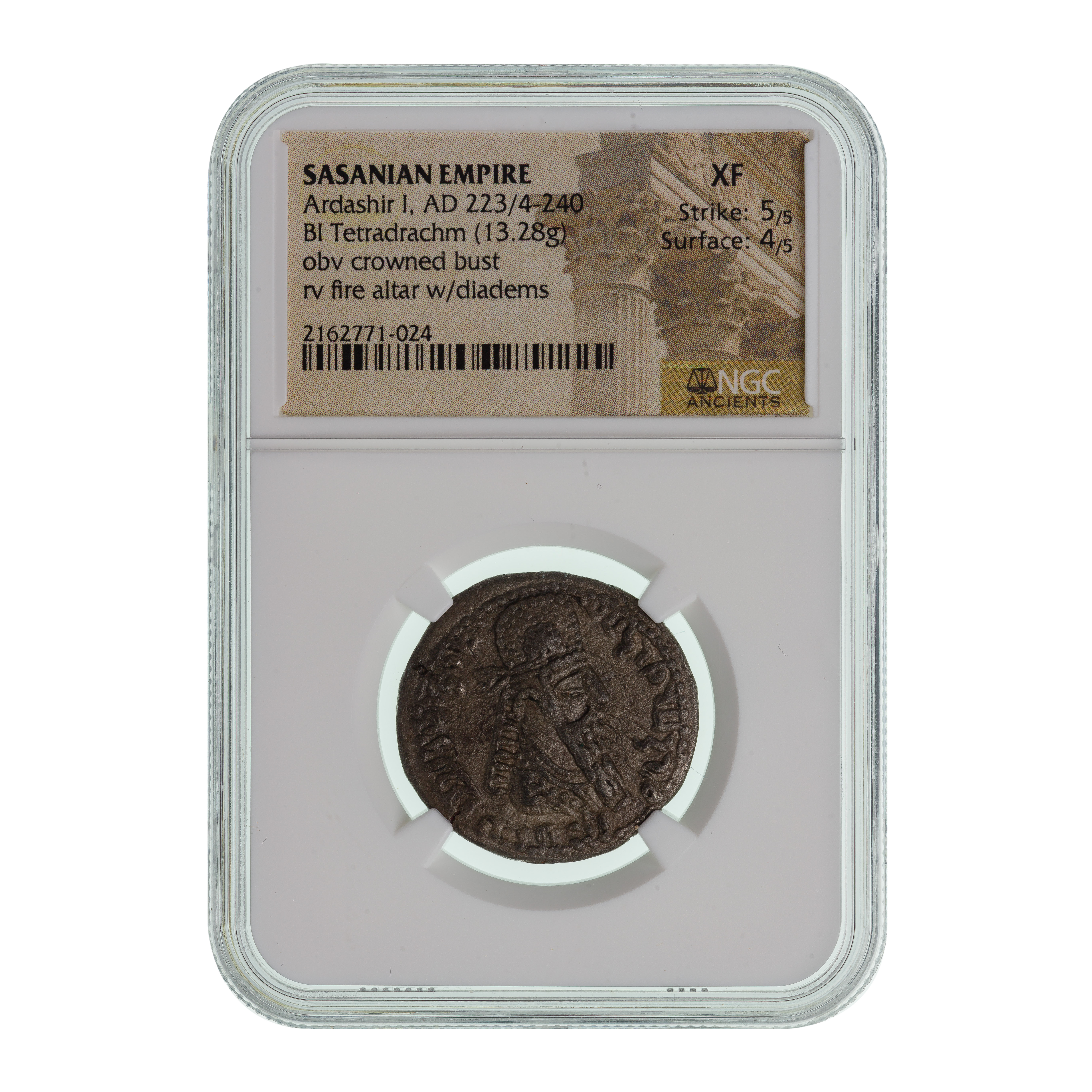 SASANIAN EMPIRE, Ardashir I, AD 223/4-240, BI Tetradrachm XF NGC