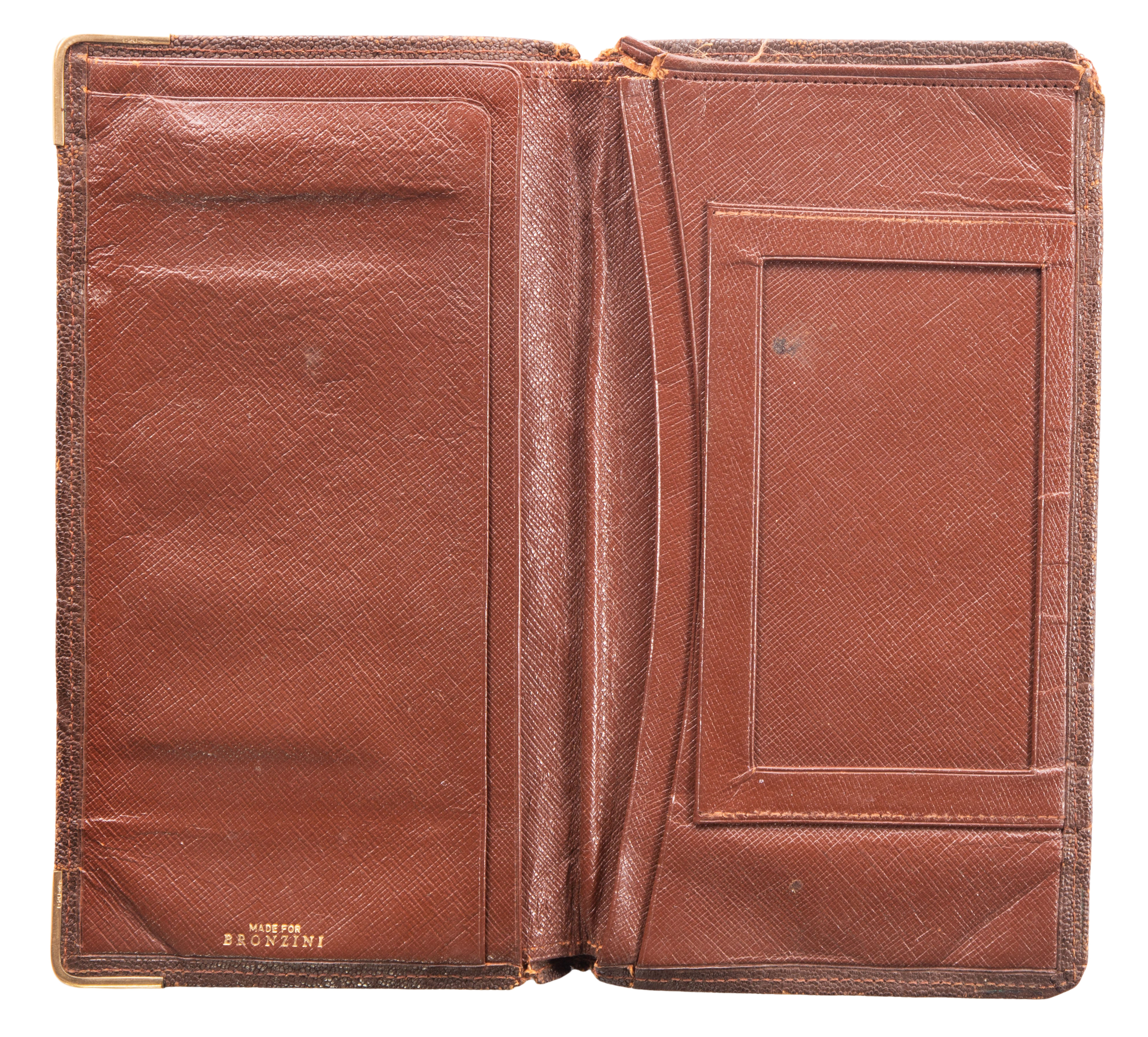 (5) items including an Hermes wallet, a Bronzini wallet, a blue leather 1960 calendar book having some phone numbers and annotations, a red leather bound notebook and a Sotheby’s 2004 auction catalog from the Katherine Hepburn Estate, items retaining the Sotheby’s auction labels and a receipt from auction