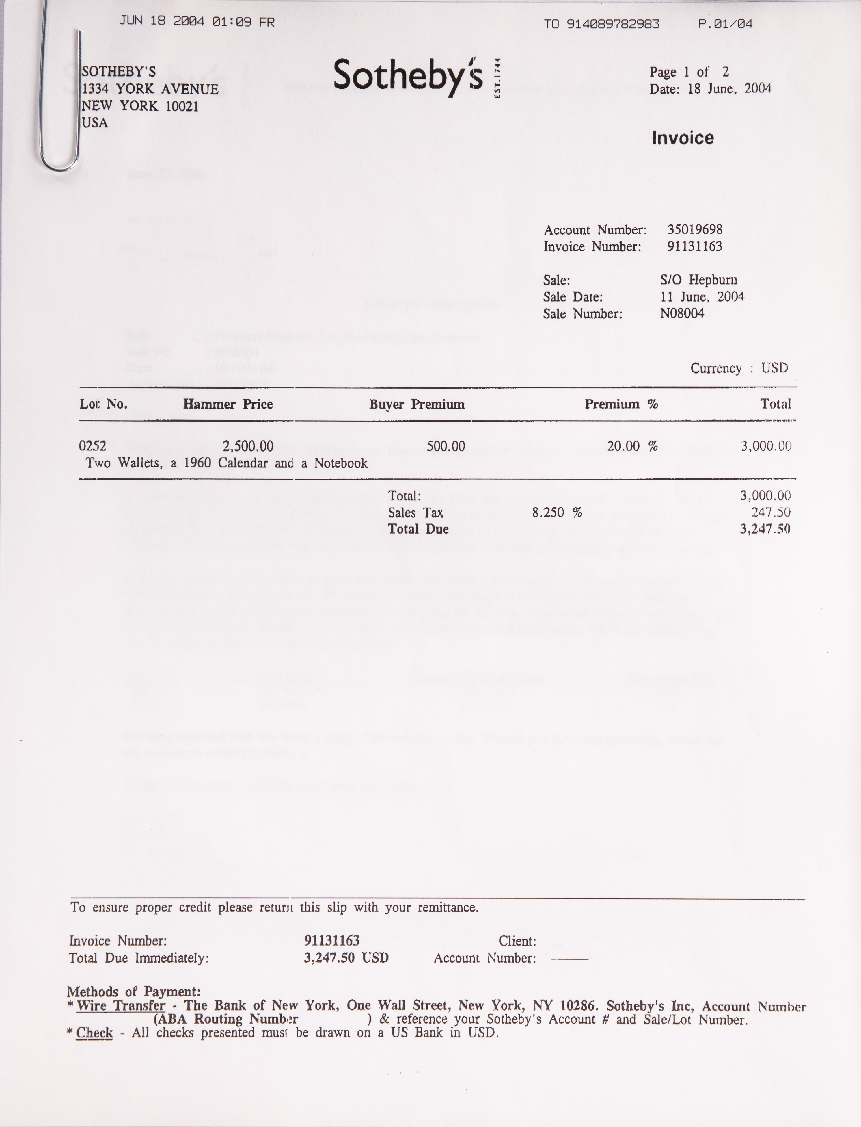 Exhibitions: Sotheby’s New York, June 10-11, 2004, Lot 252