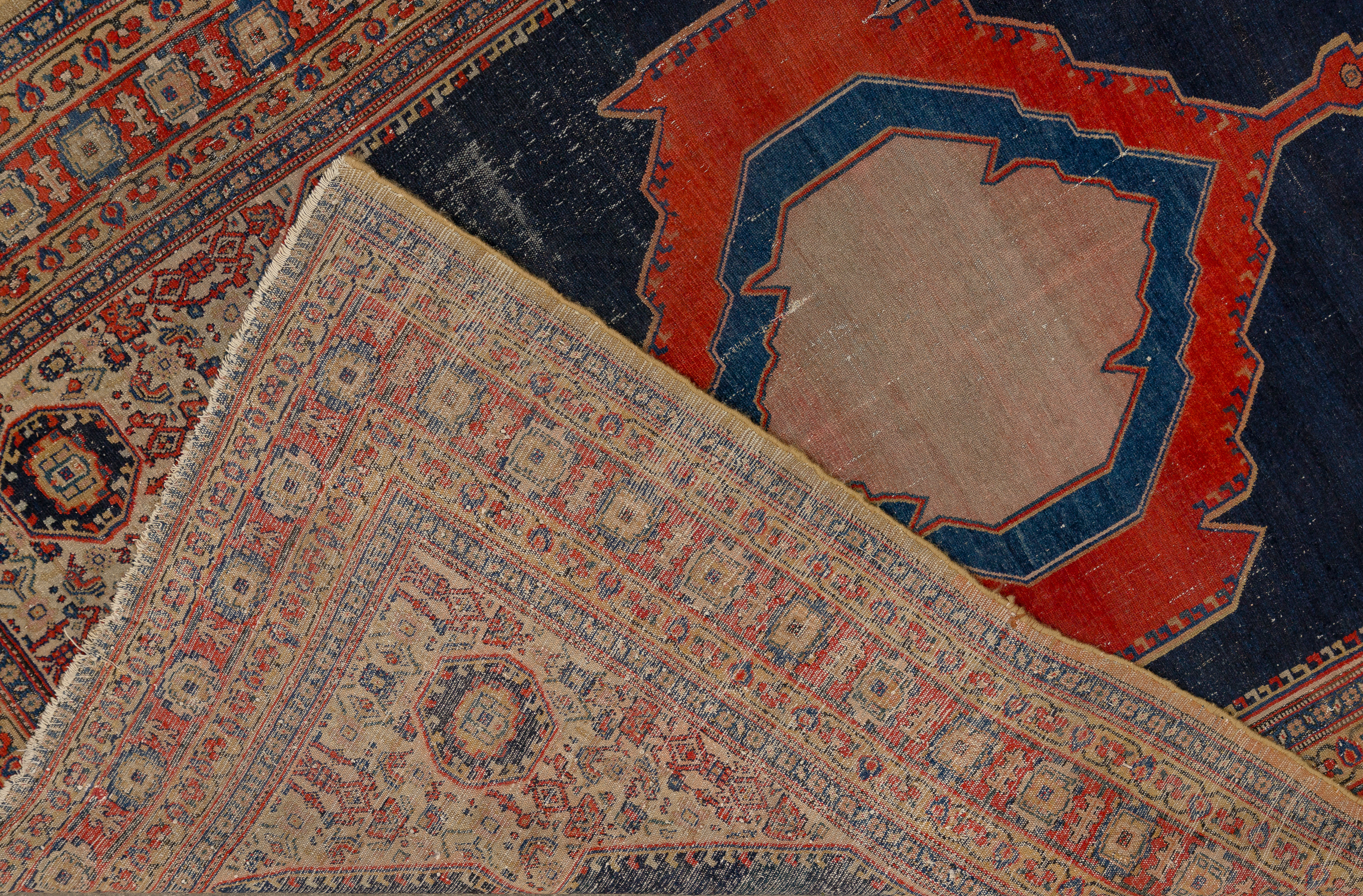 (2) items including a Malayer style runner having an abstract geometric design in hues of tan, rust and blue on a multi-color field and a Bijar style having a center medallion and abstract geometric design in hues of tan and red on a blue field (6 ft. 4 in. x 4 ft. 2 in.)