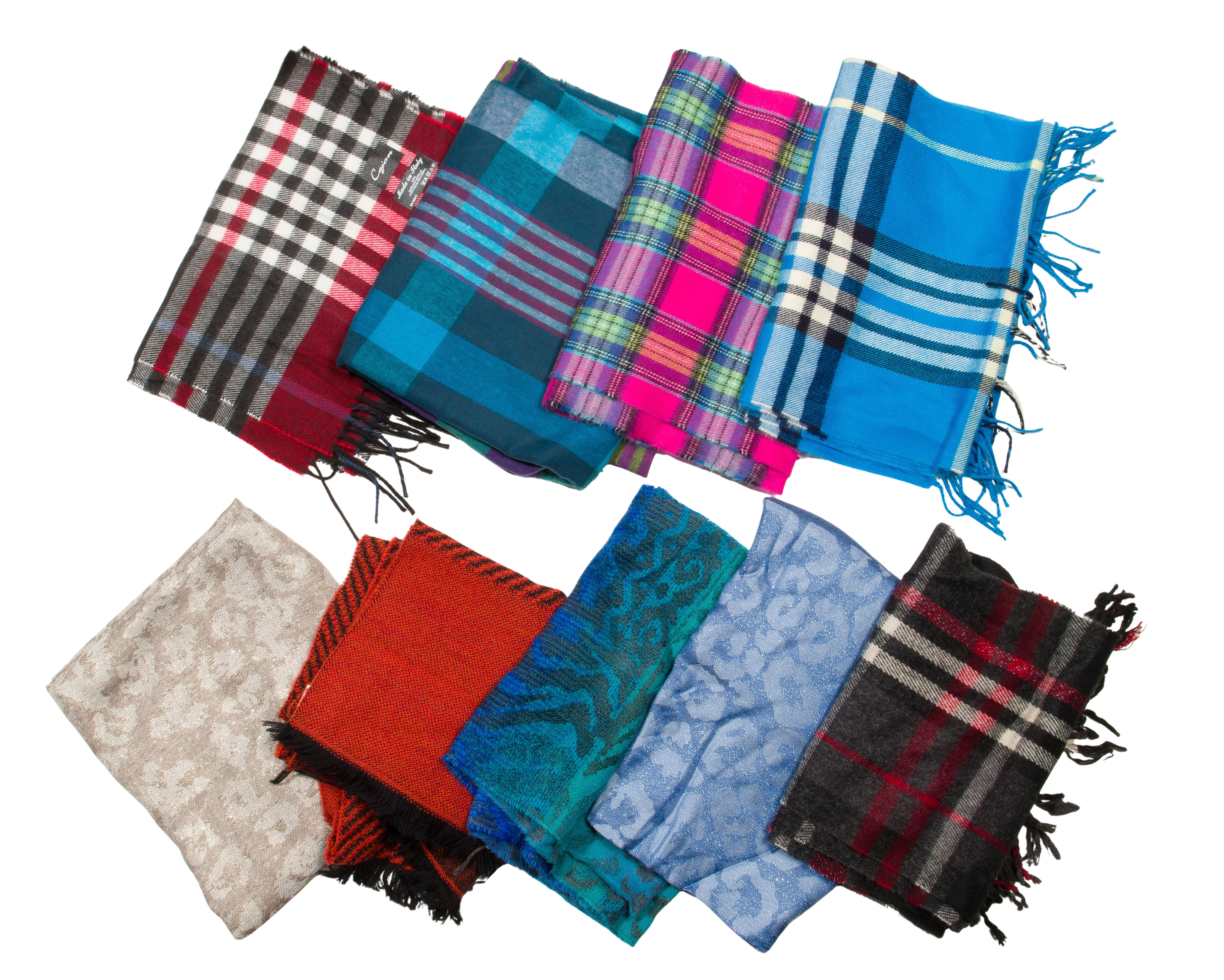 Approximately (75) items of various shapes, sizes, materials and colors including scarves, pashminas and shawls from various makers
