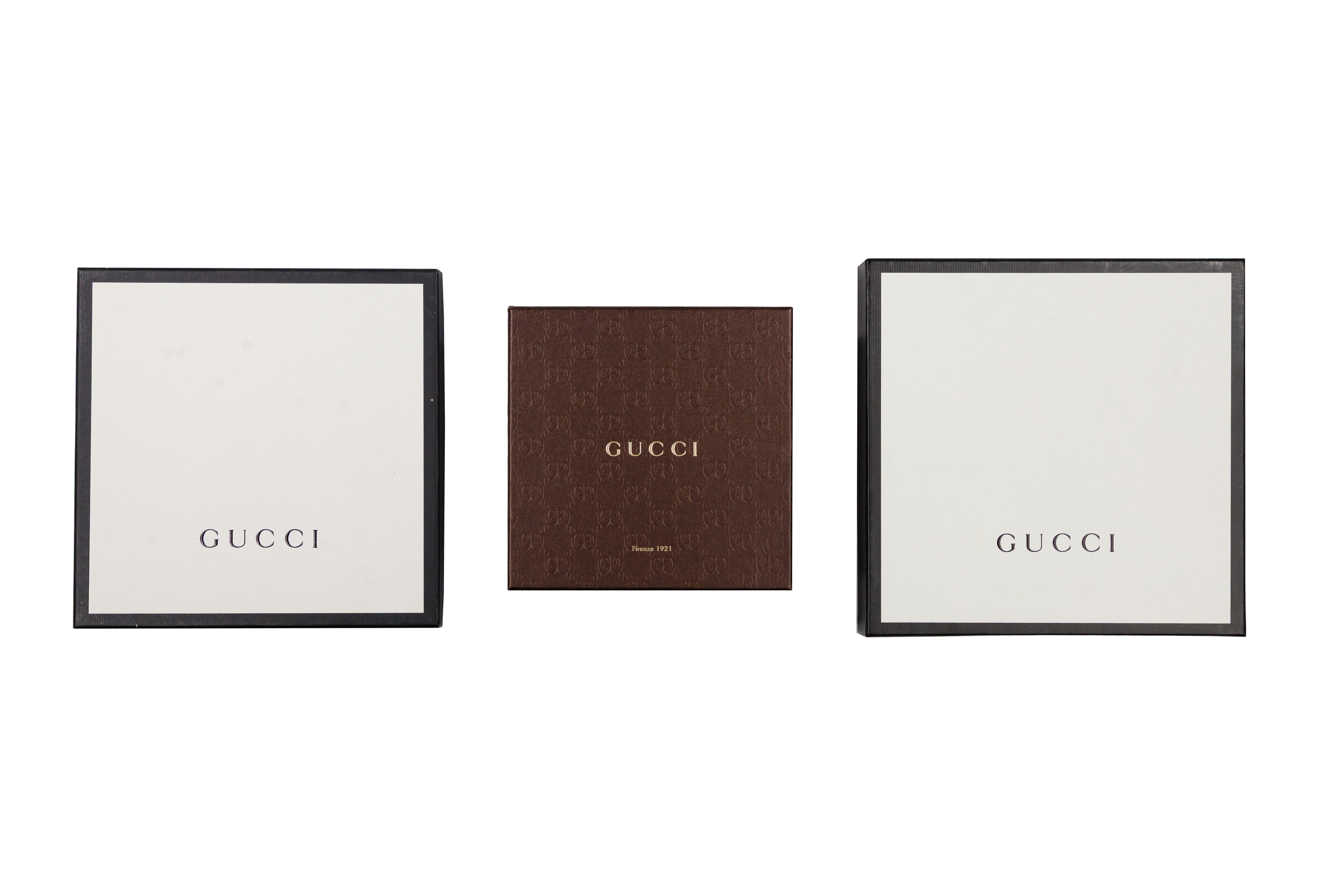 (5) items in various shapes, sizes, colors and fabric, all retaining the Gucci label, some having boxes