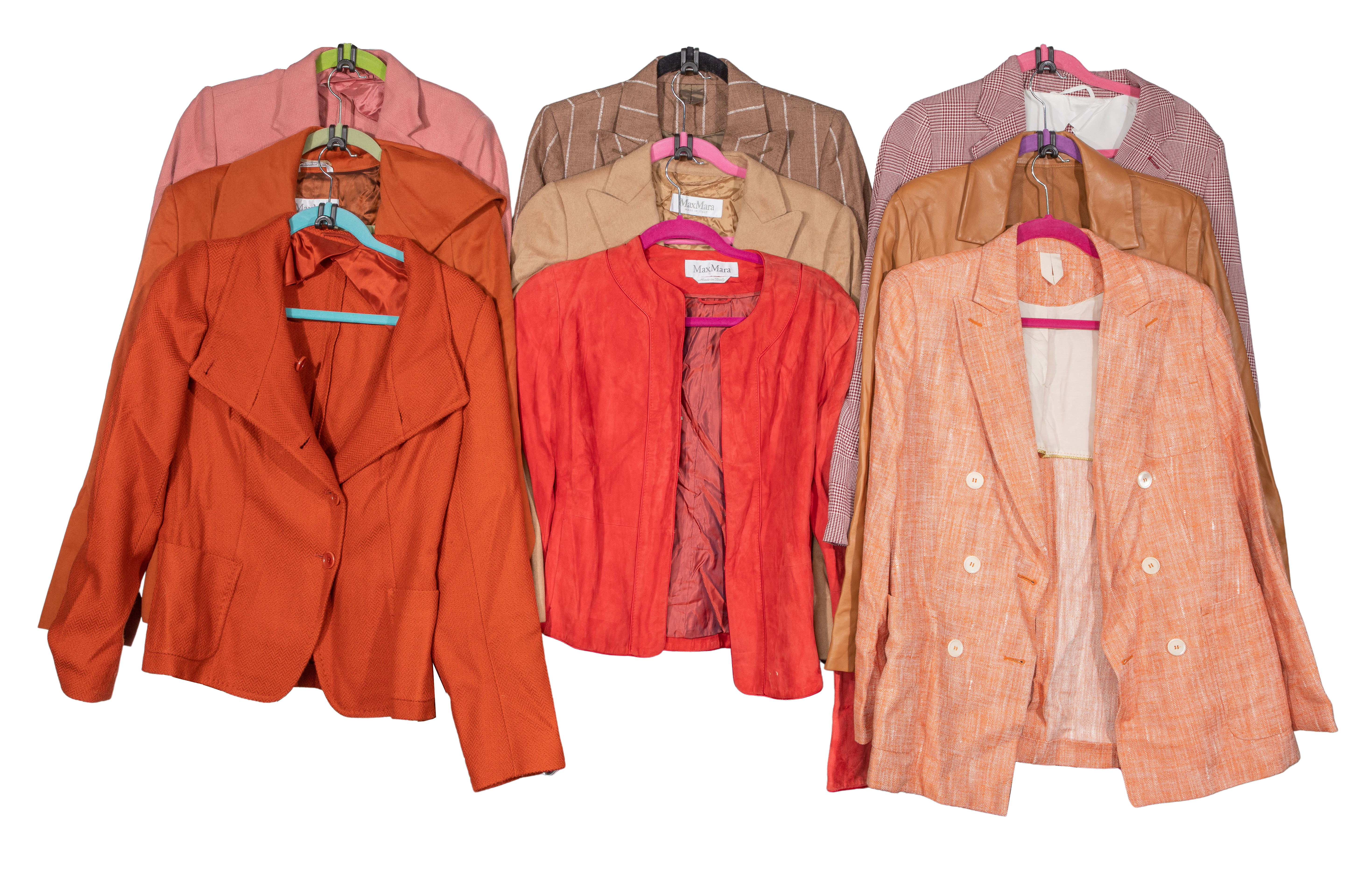 Approximately (30) items in various styles, cuts, fabric and colors including blazers, jackets, pants and sweaters, all having labels