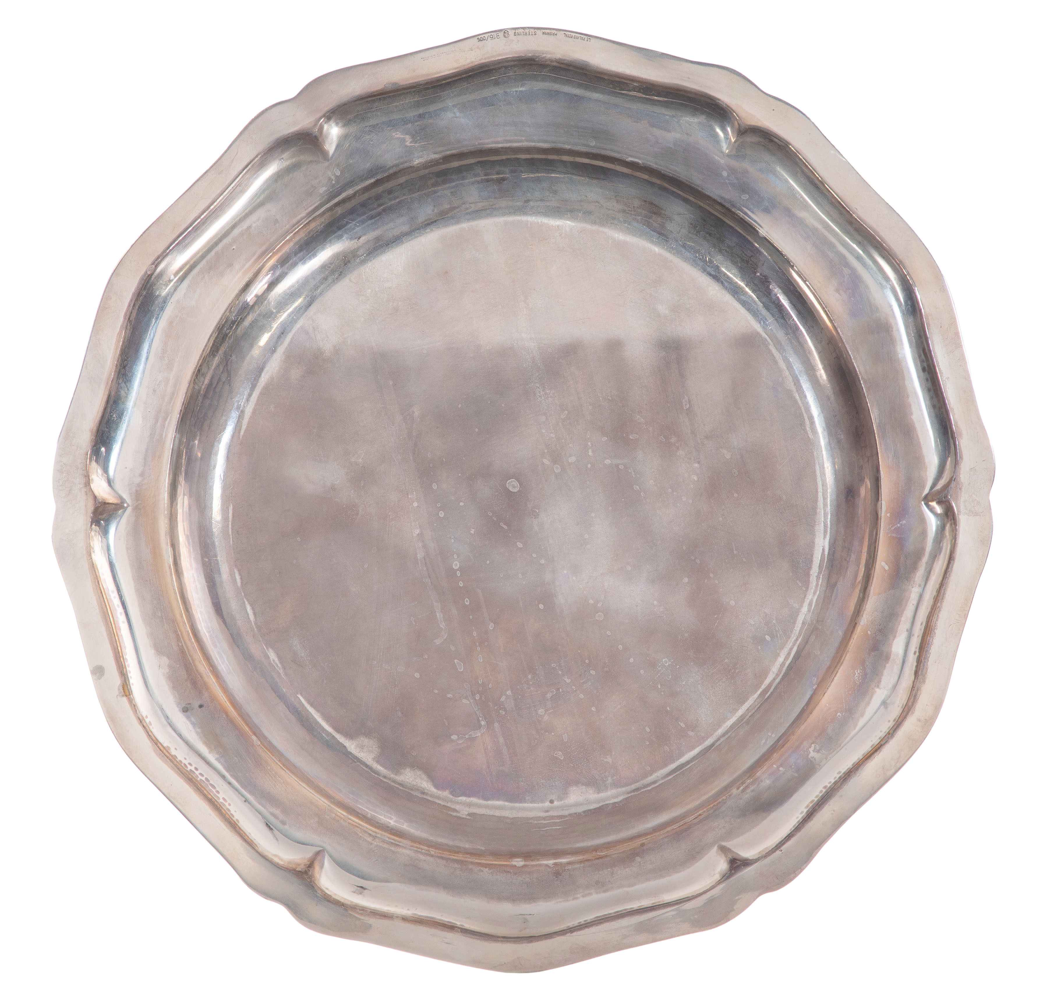 Having a scalloped and decorated edge, stamped ‘Le Palais Royal Habana’ (marked ‘sterling’)