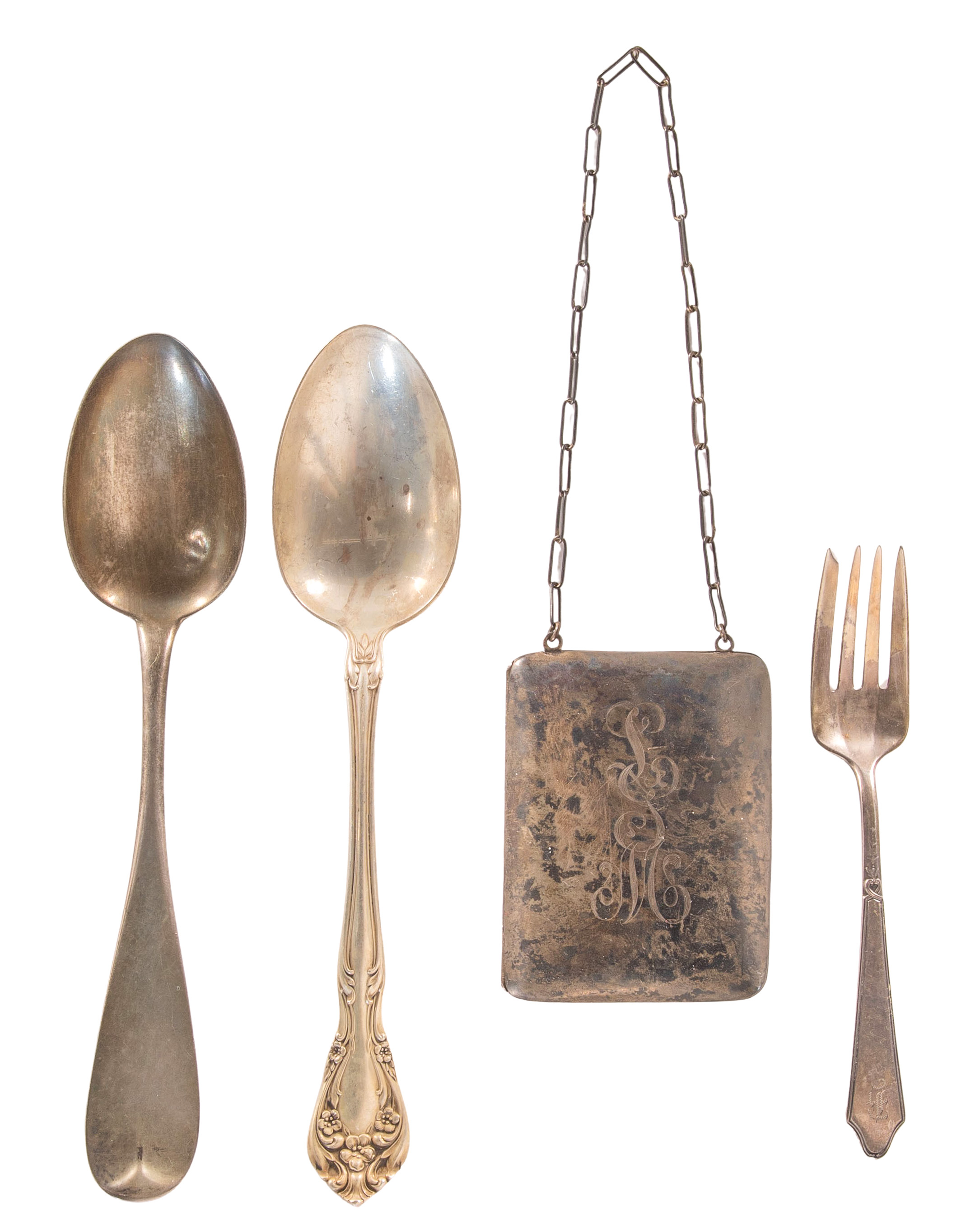 Weight: .925 silver: 73.01 ozt., .830 silver: 1.38 ozt. (total of non-weighted items)