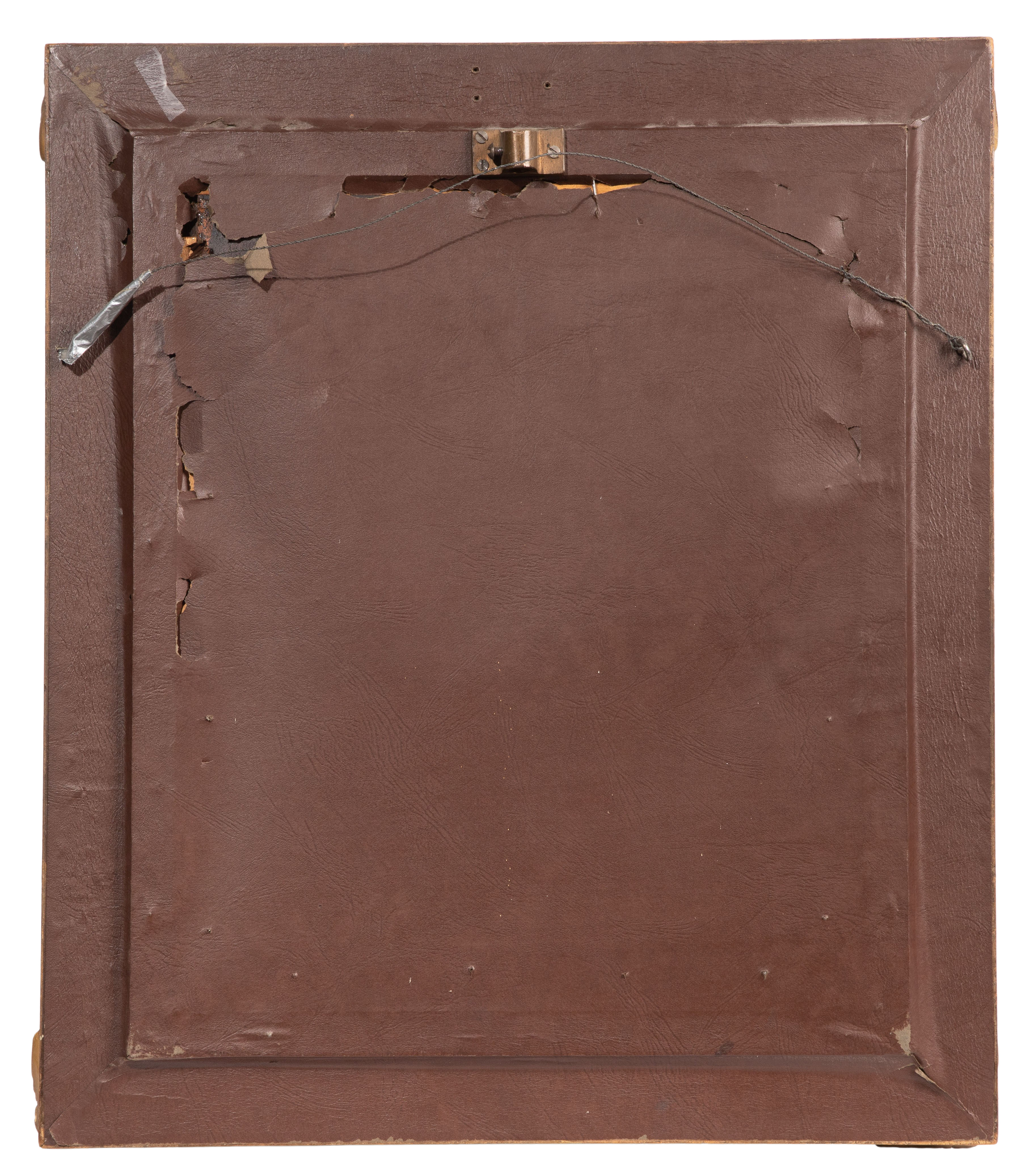 Condition: craquelure overall, light dirt accumulation, yellowing, frame having light wear