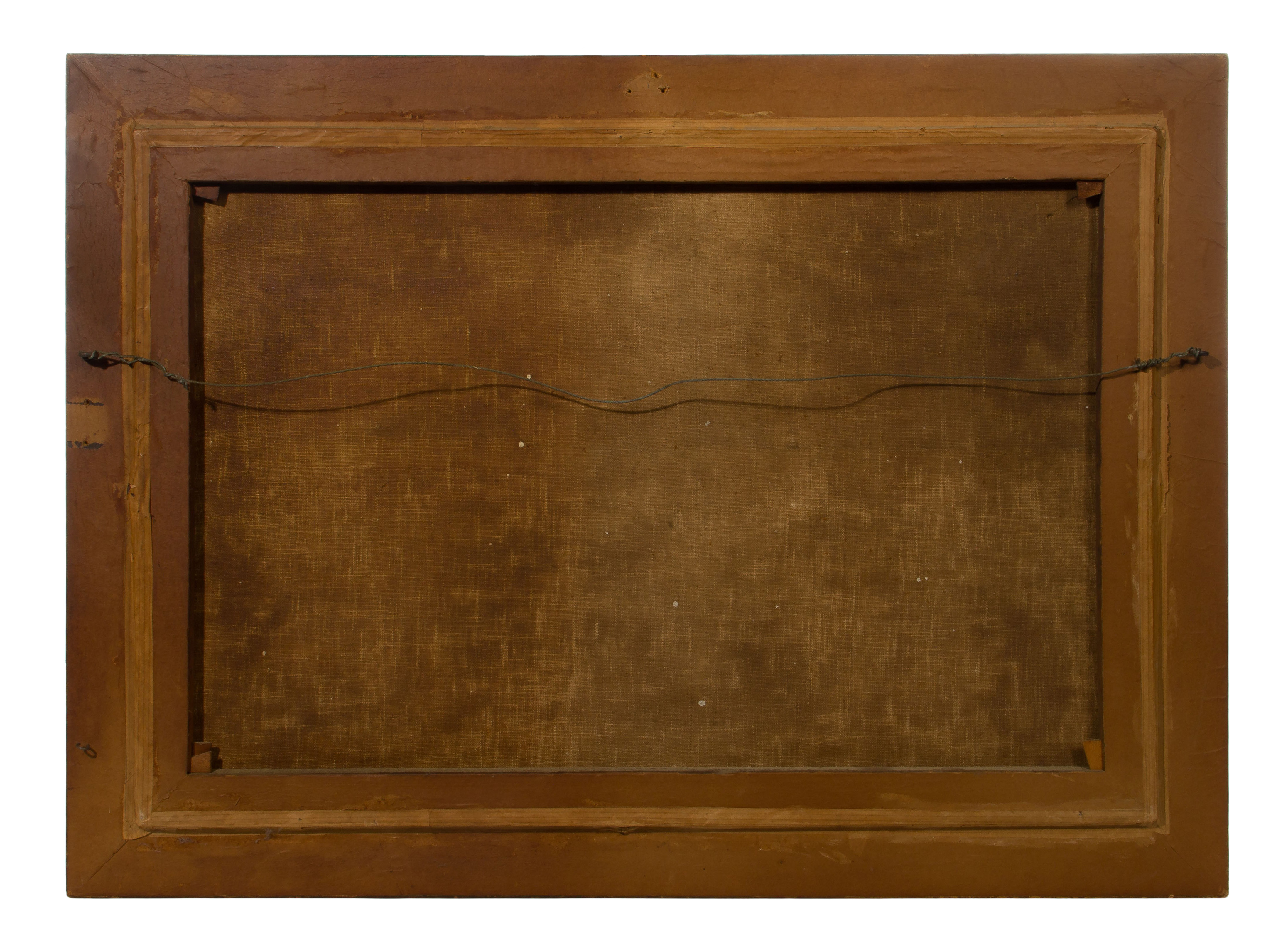 Condition: craquelure overall, light dirt accumulation, in-painting upper rim, frame having minor wear