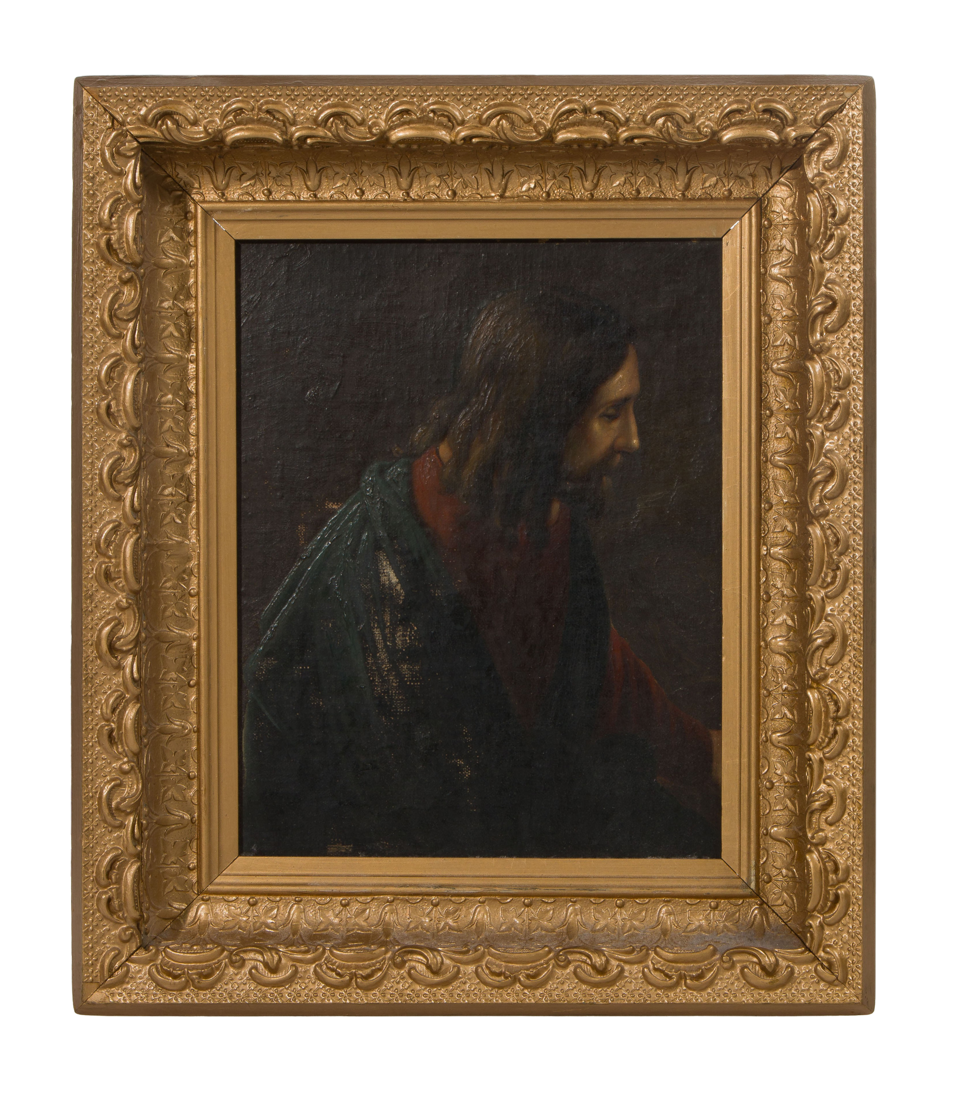 Undated, unsigned, a portrait of Christ, in a gold-tone painted frame