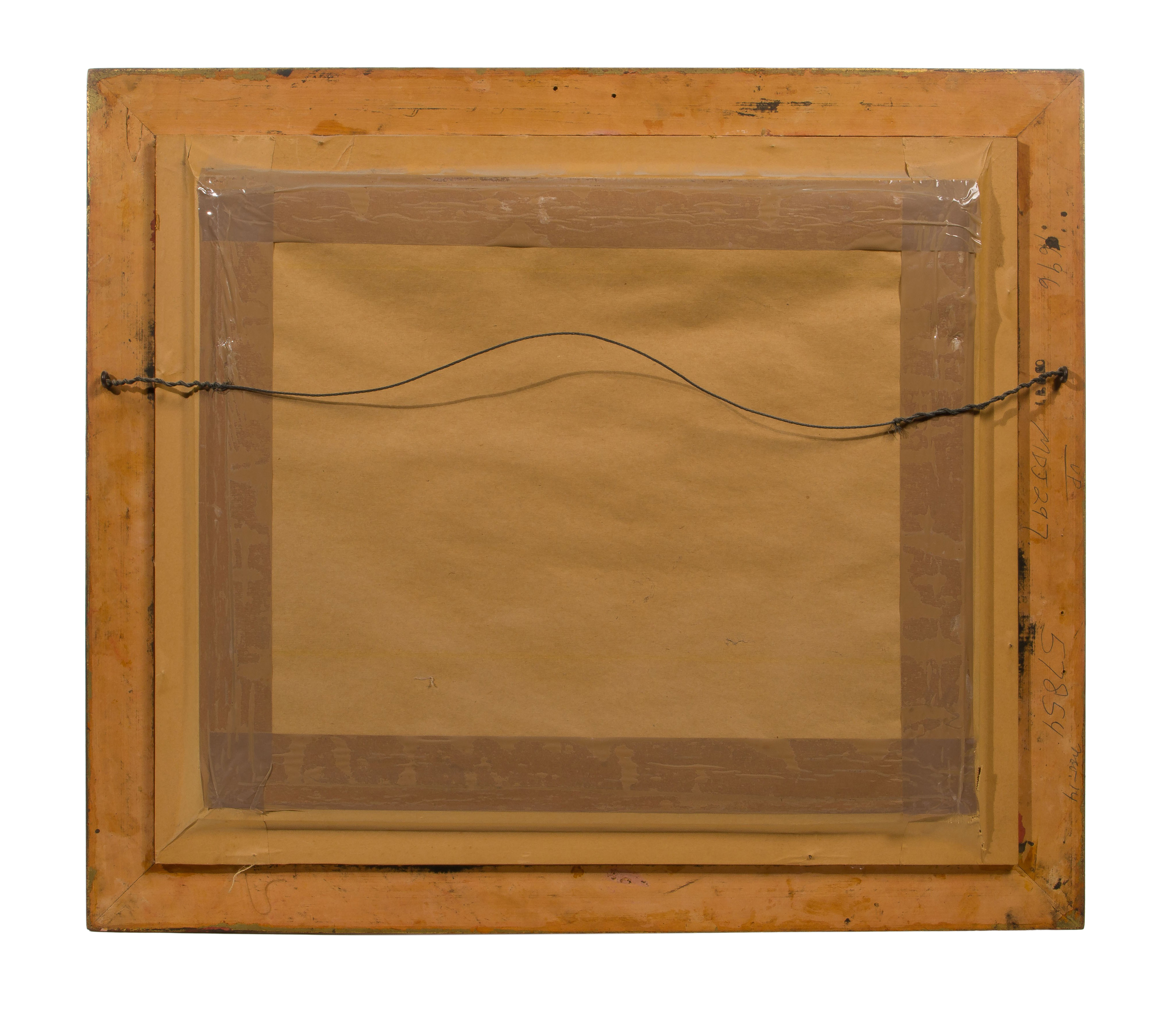 Condition: no damage to artwork noted, frame having damage and loss to lower right corner