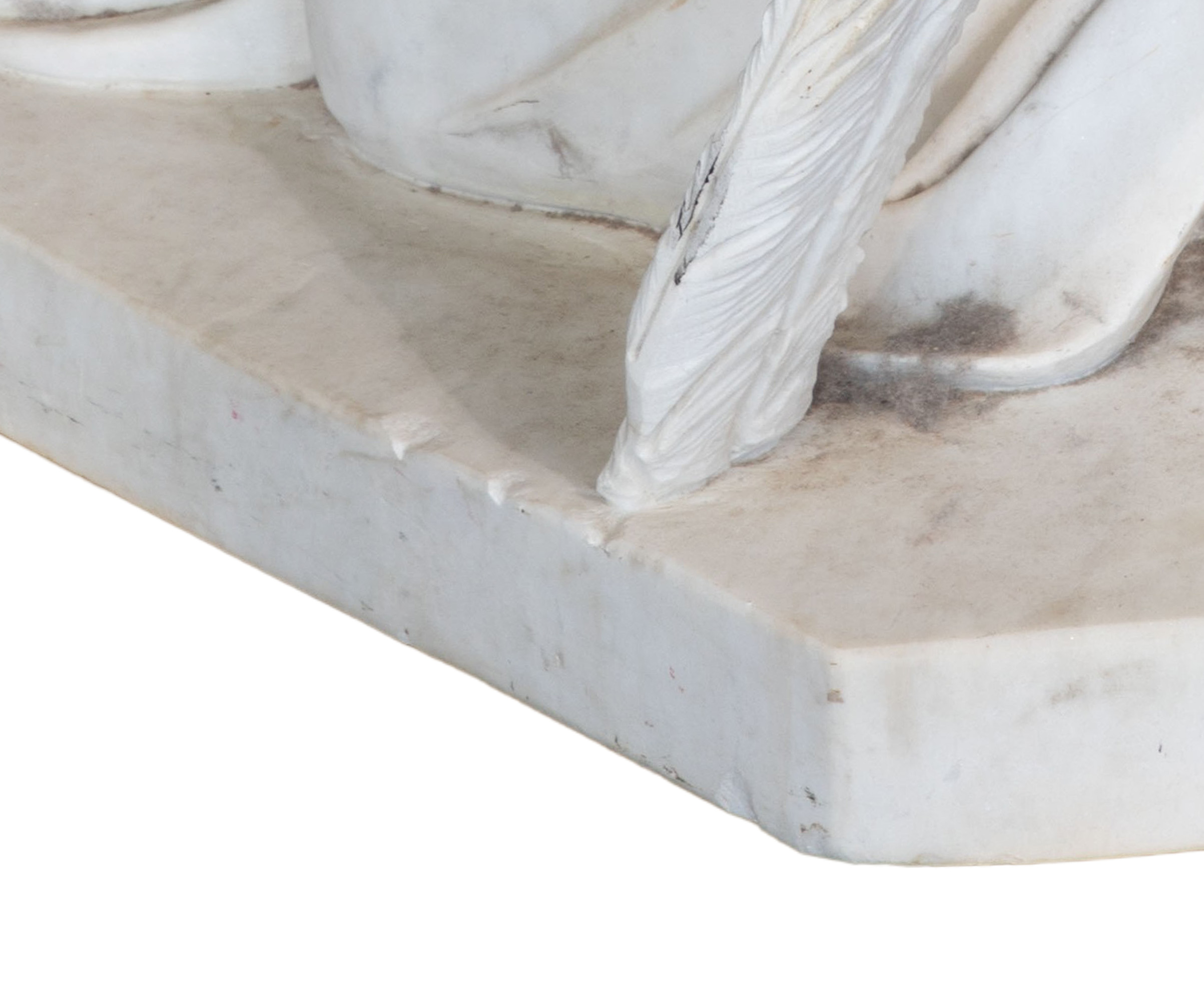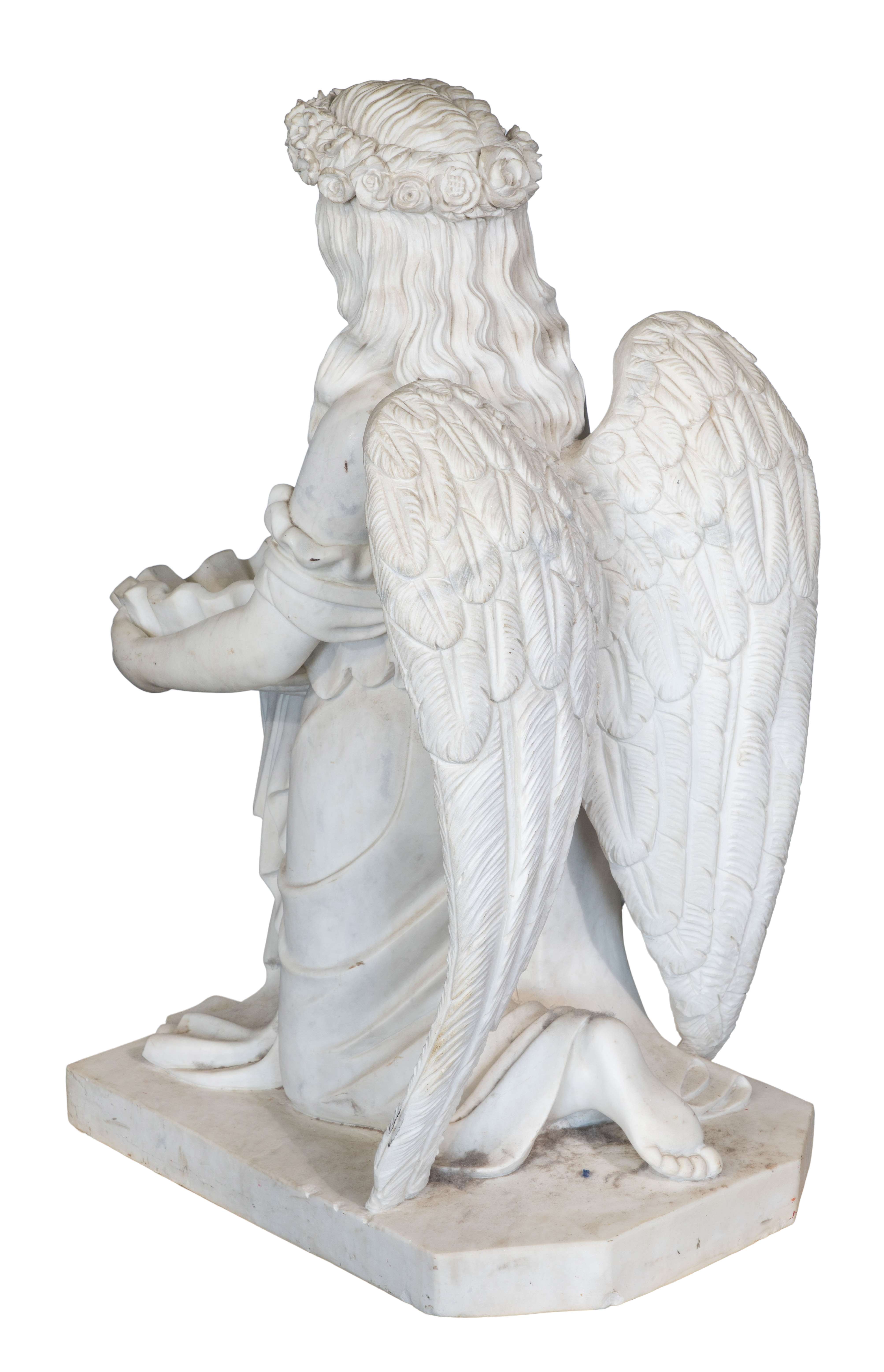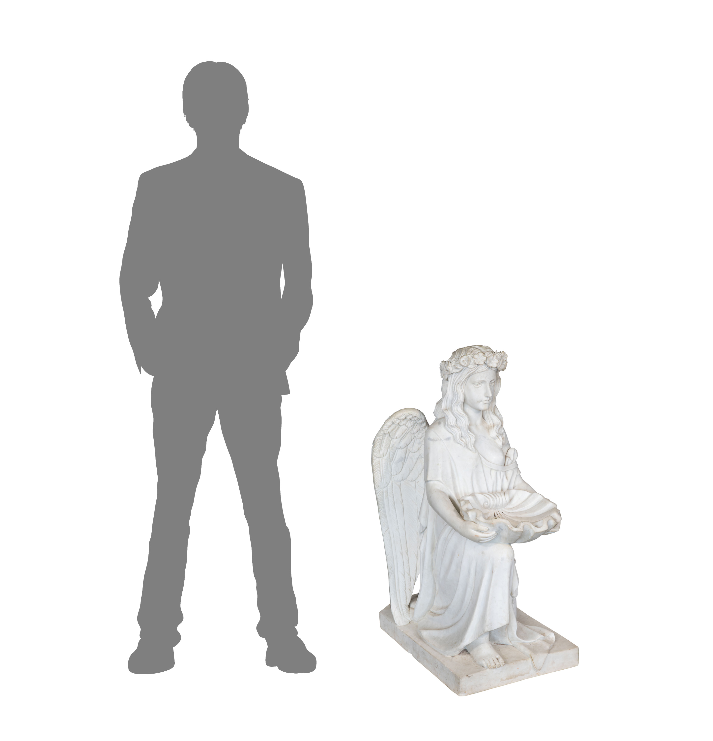 In the style of Bertel Thorvaldson, a kneeling angel having outstretched arms holding a shell which serves as a font for holy water