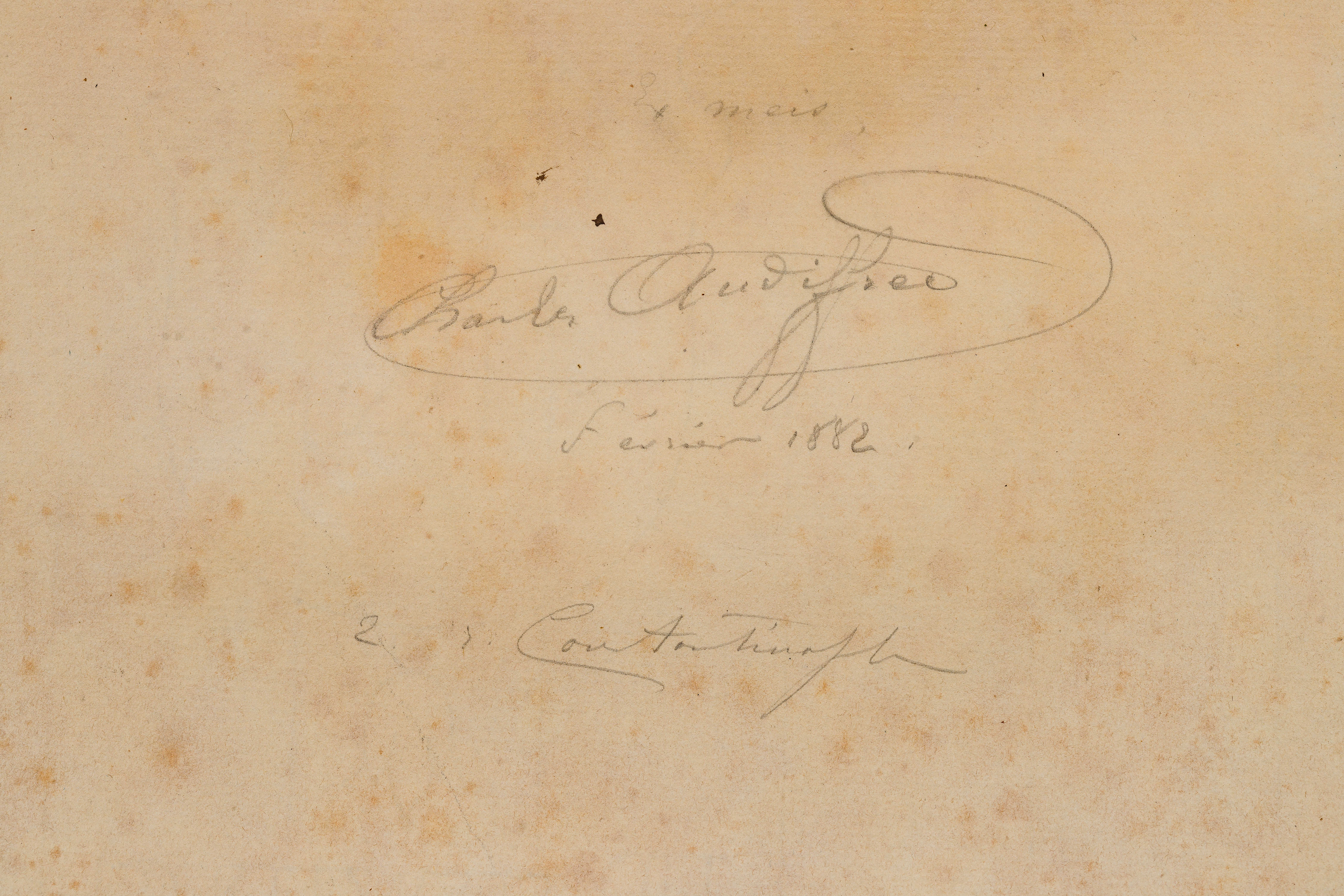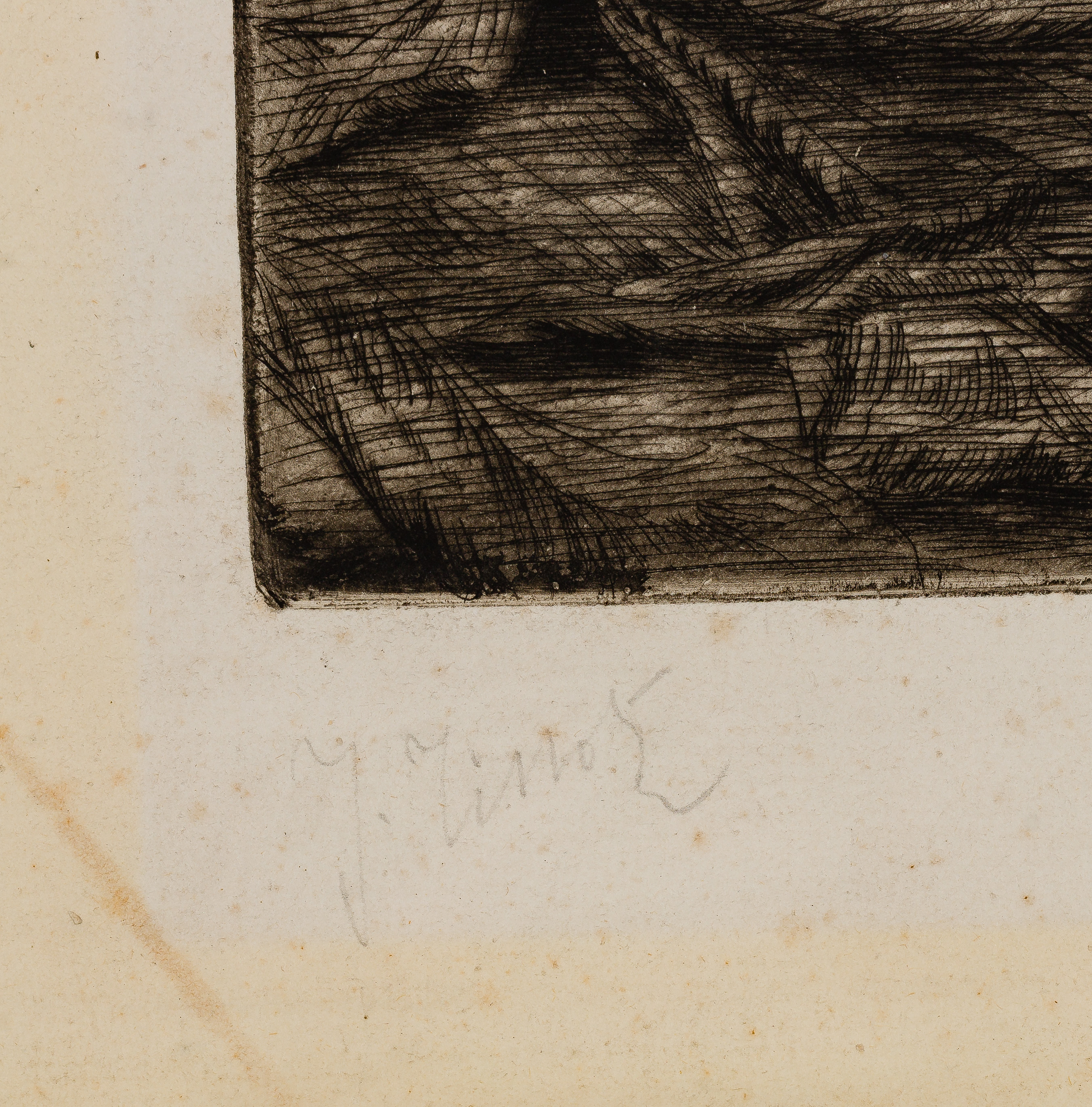 Condition: foxing overall apparent verso, mat burn overall, waviness in frame, mat having staining, frame having wear including chips, nicks and finish wear